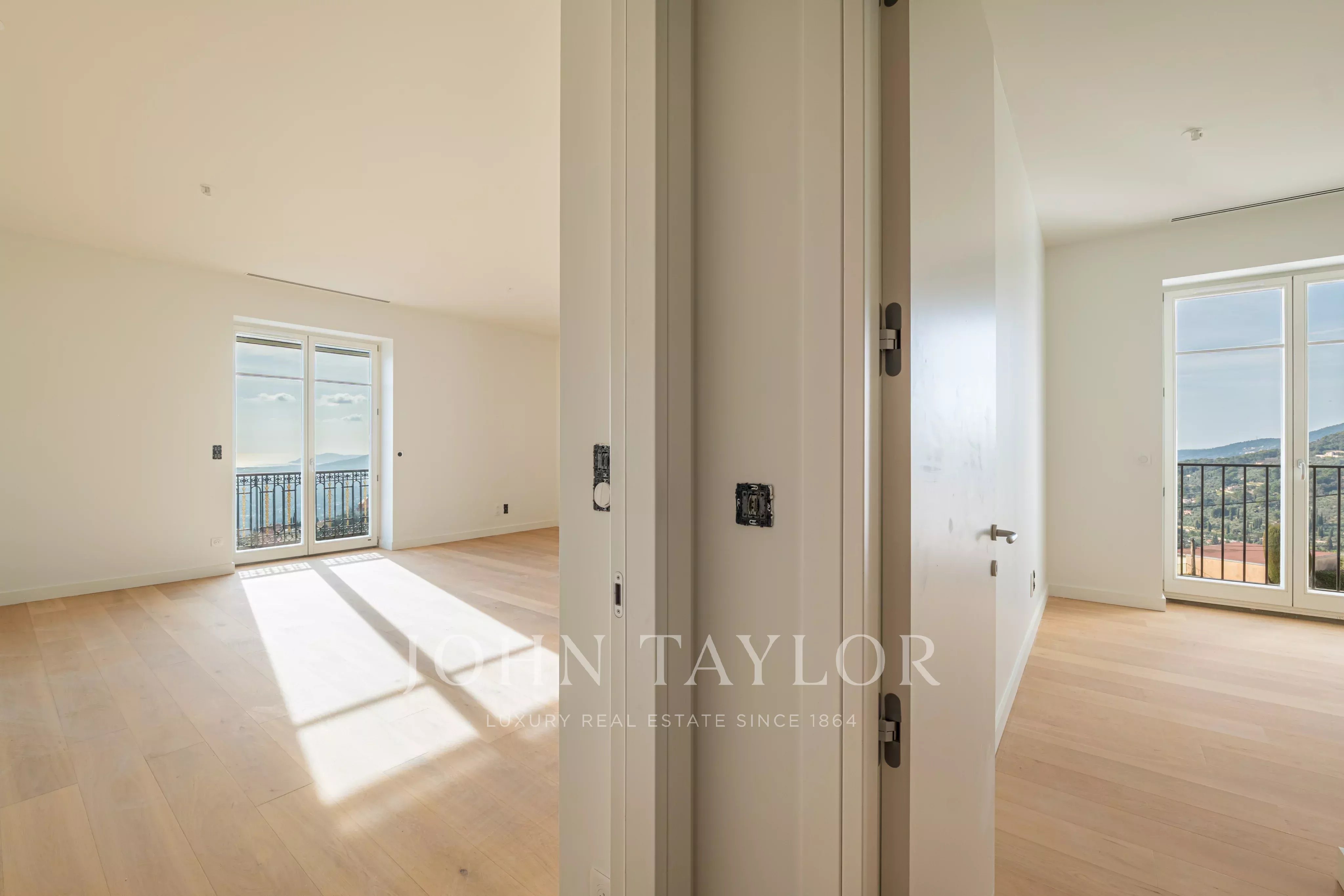 In an elegant residence of beautifully renovated apartments in a historic building in the hills of Grasse, offering unobstructed views of the town, hills and sea.