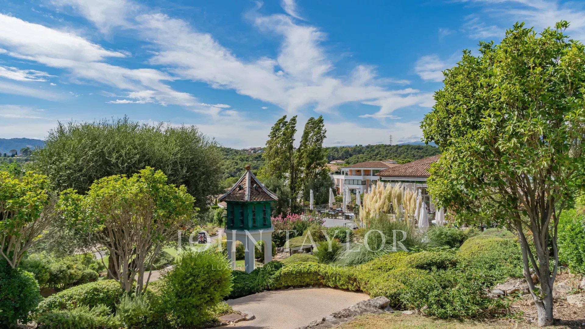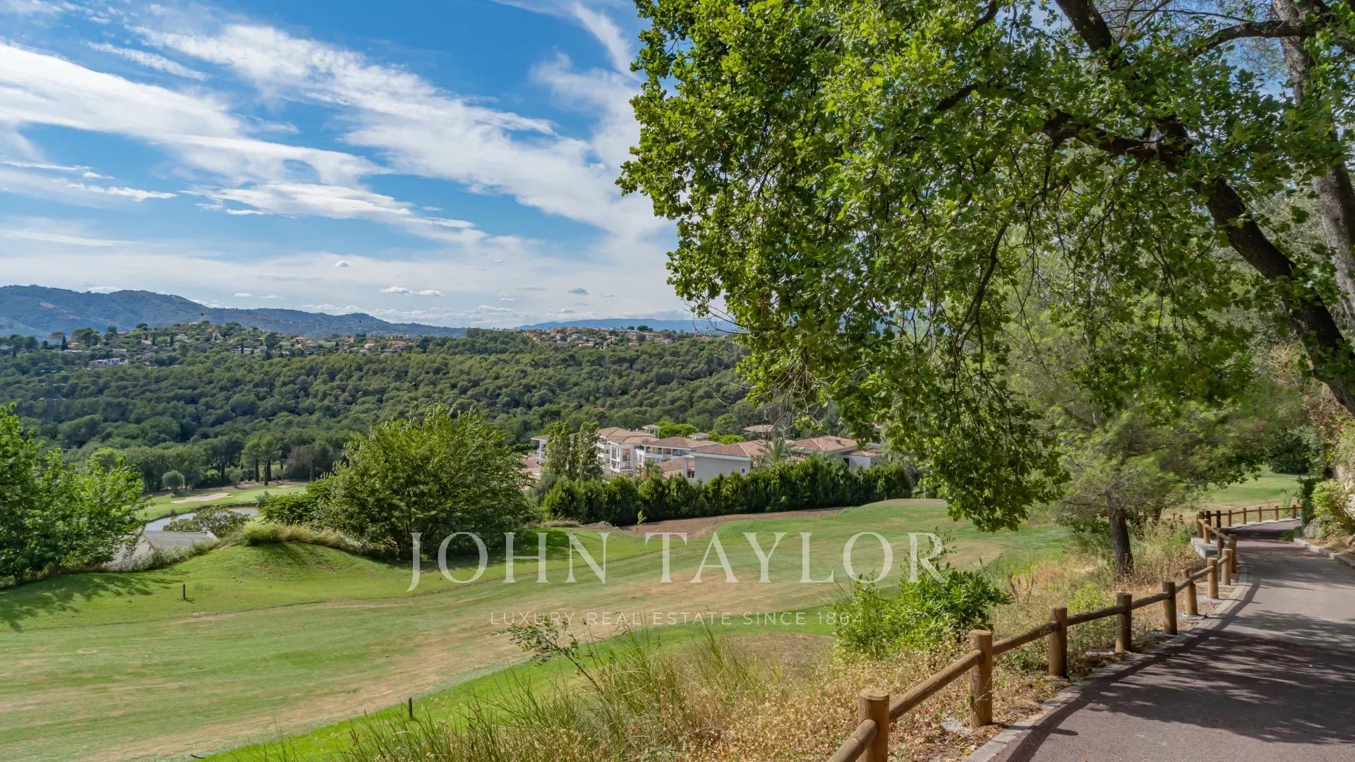 In the prestigious, secure estate of Royal Mougins Golf, this superb renovated apartment offers elegant, serene living. Located on the second floor of a residence with swimming pool and steward, it benefits from a calm, verdant environment.