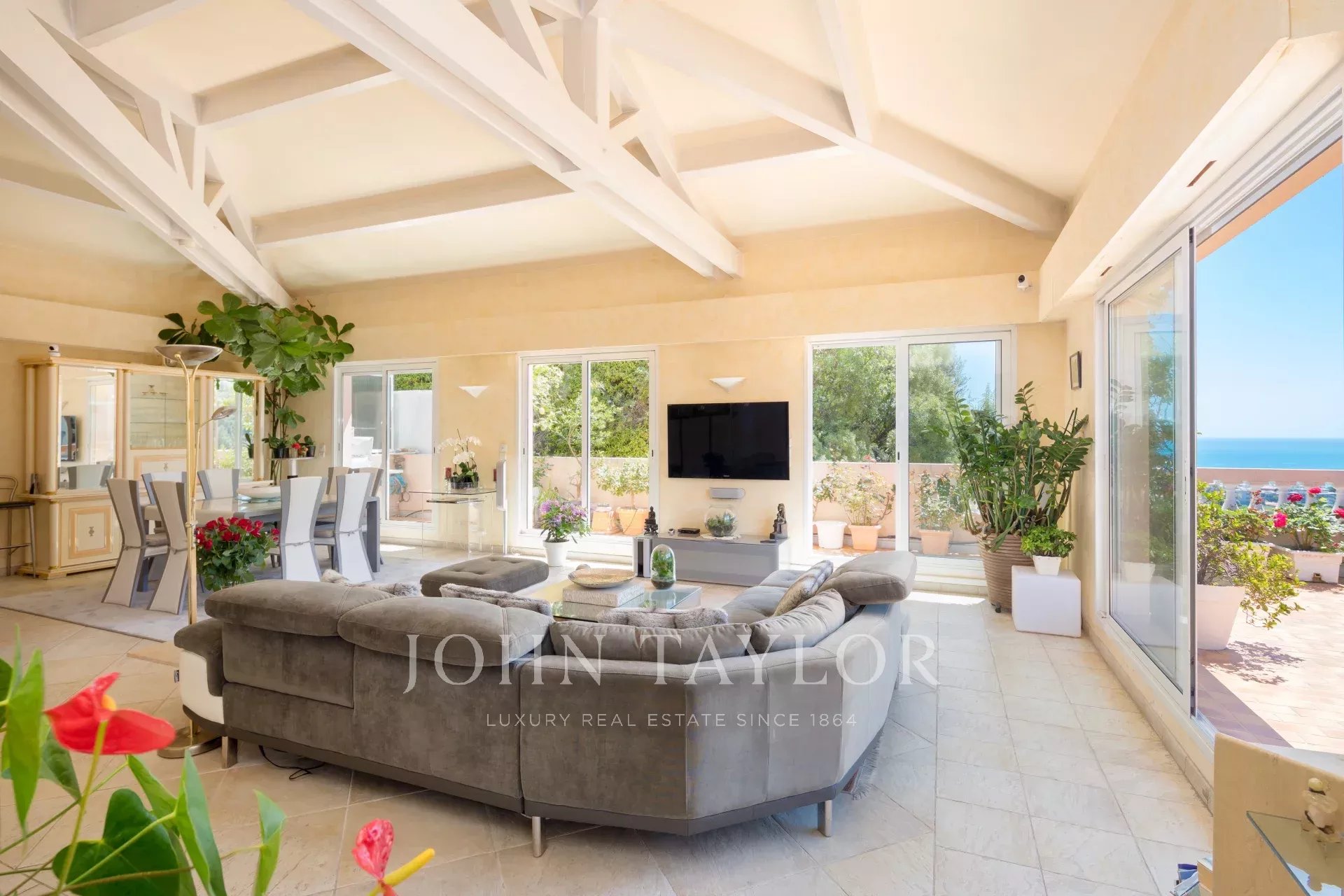 Located on the last floor of an excellently maintained human size residence, south/west facing and fully air-conditioned, superb roof top apartment/villa of 174,13 sq.m, served directly by a lift, offering a large circular terrace with a beautiful panoramic view of the sea, the city and the surrounding hills.