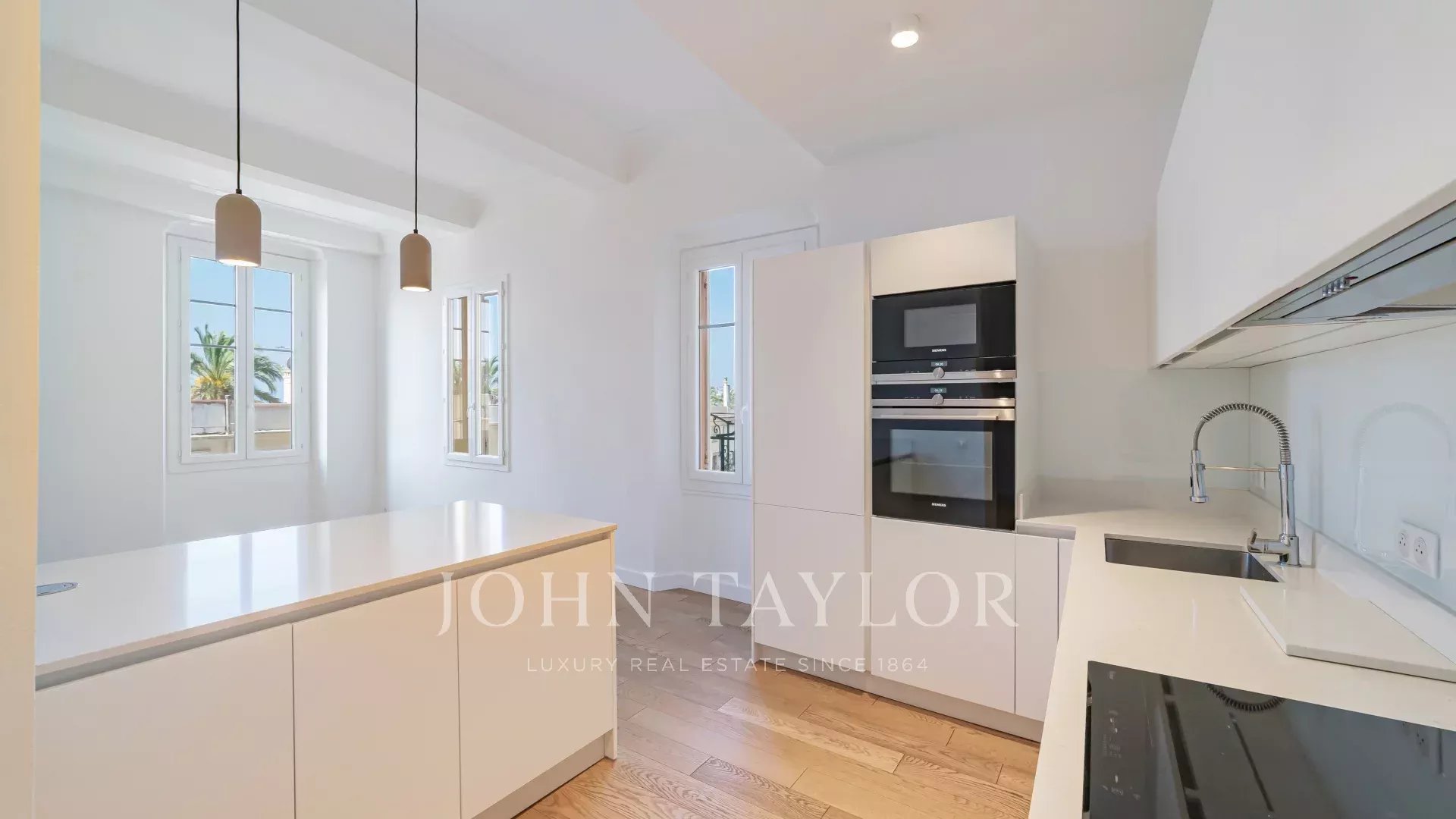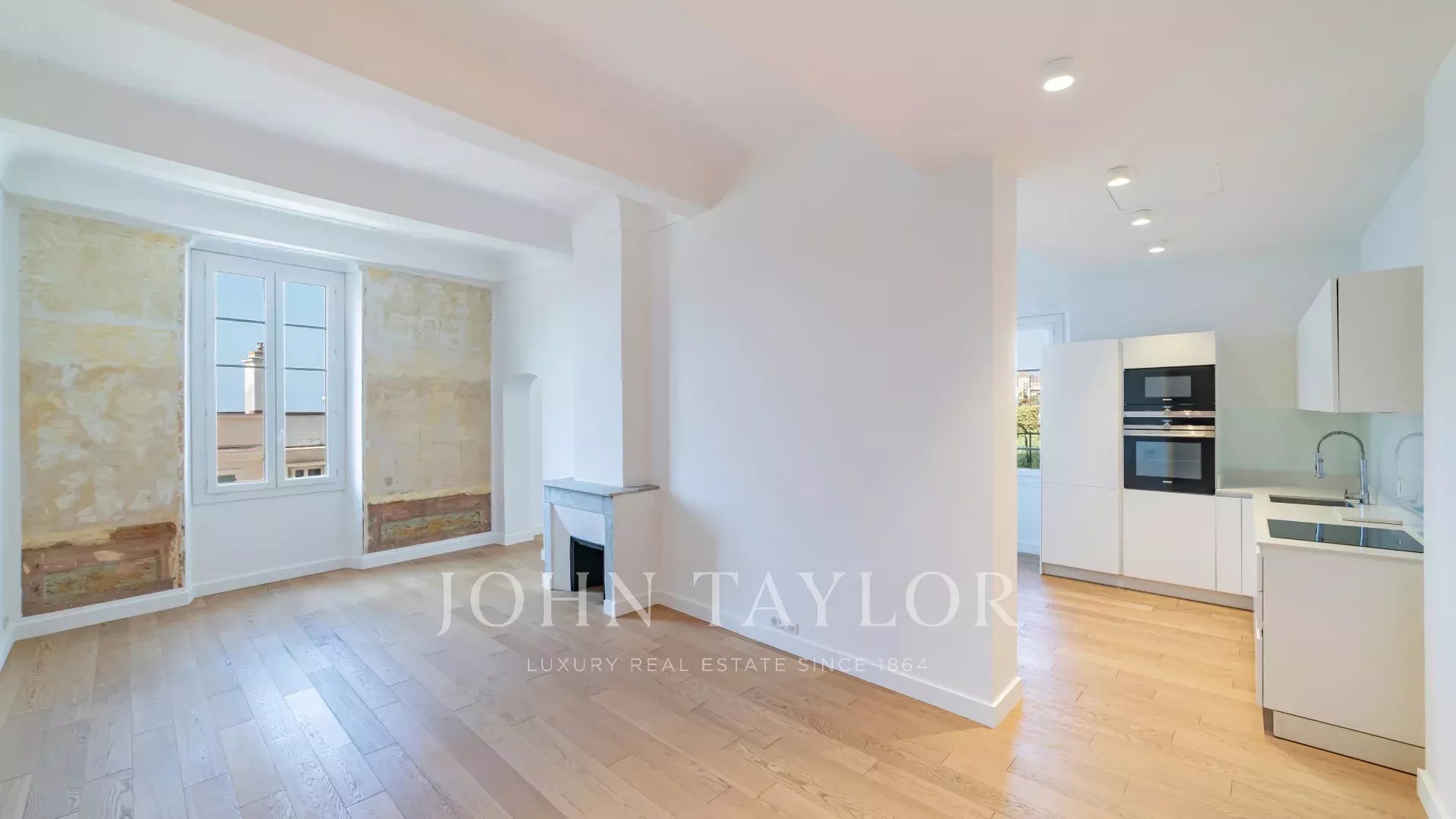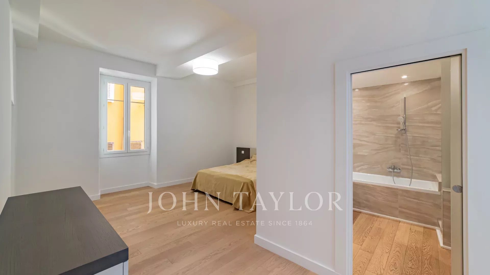 This apartment in perfect condition is located on the 1st floor of a very old residence dating from 1782, with elevator, in the heart of Nice's old town and facing the sea.