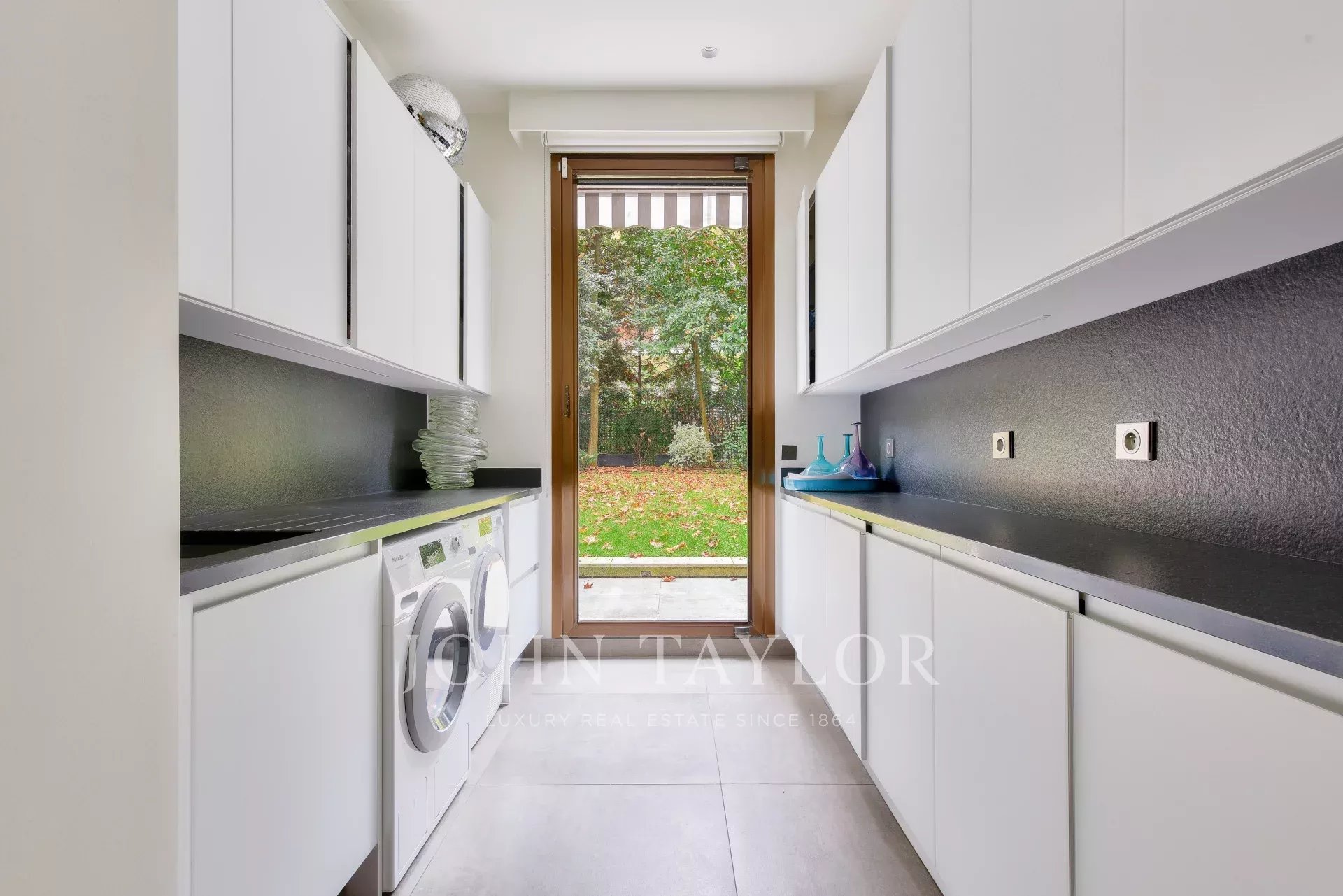 Ideally located facing the Bois de Boulogne, this triplex apartment in a sumptuous, guarded and secure building offers unobstructed views of the wood and surrounding gardens.