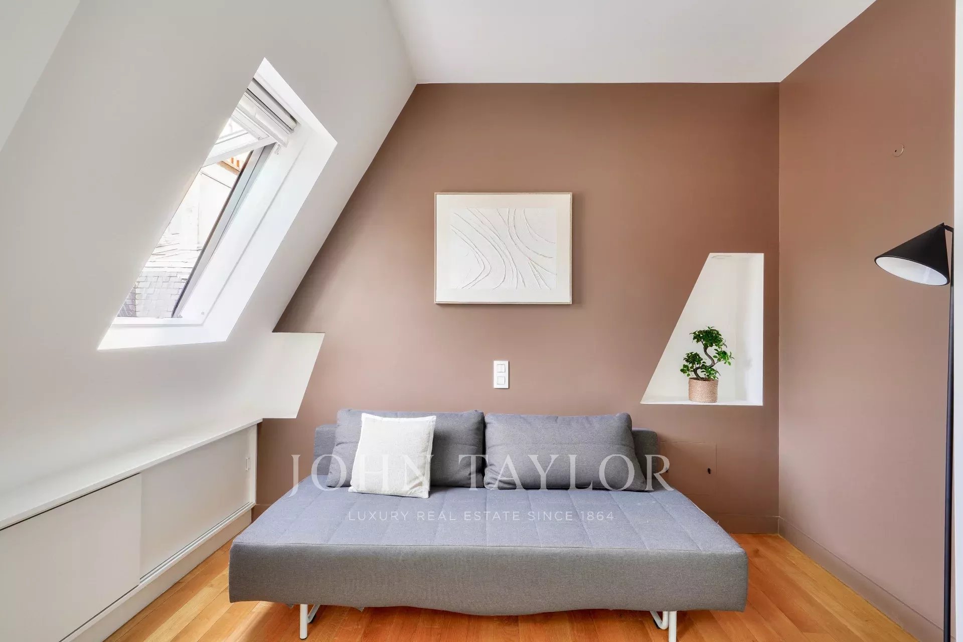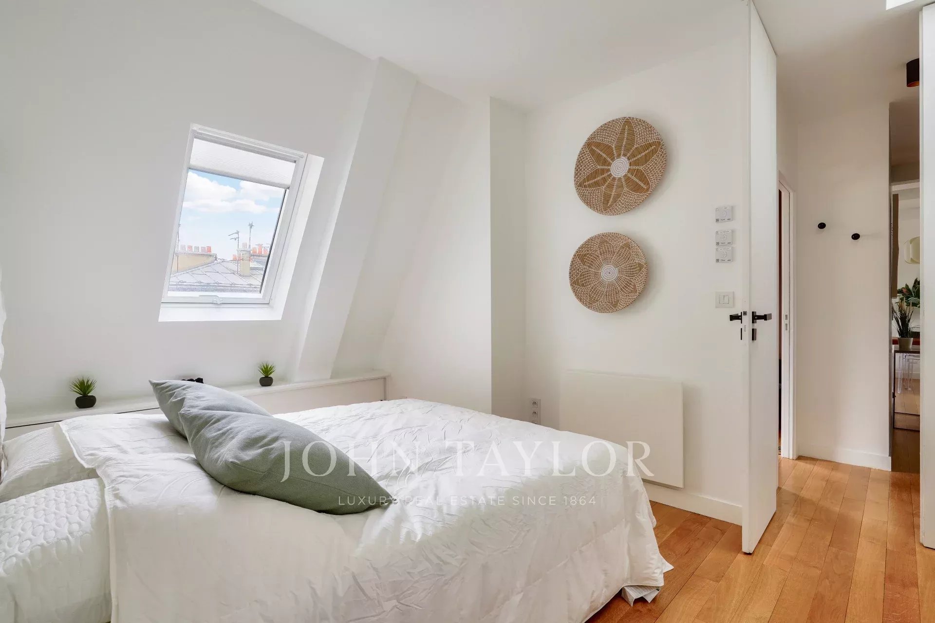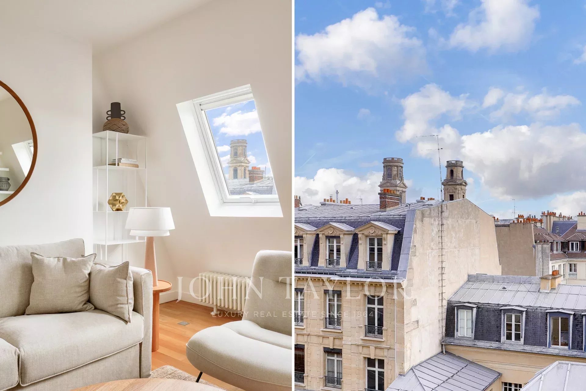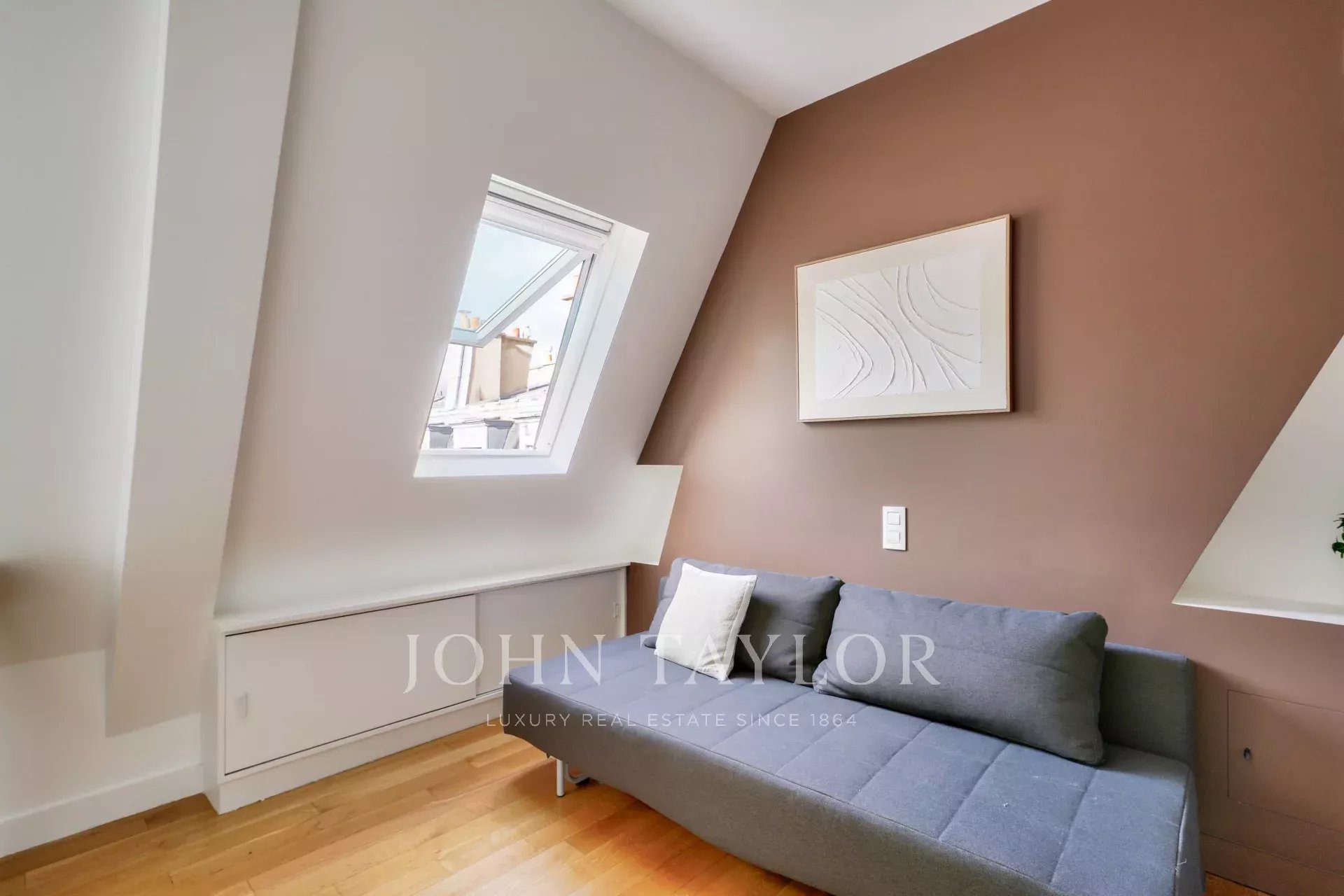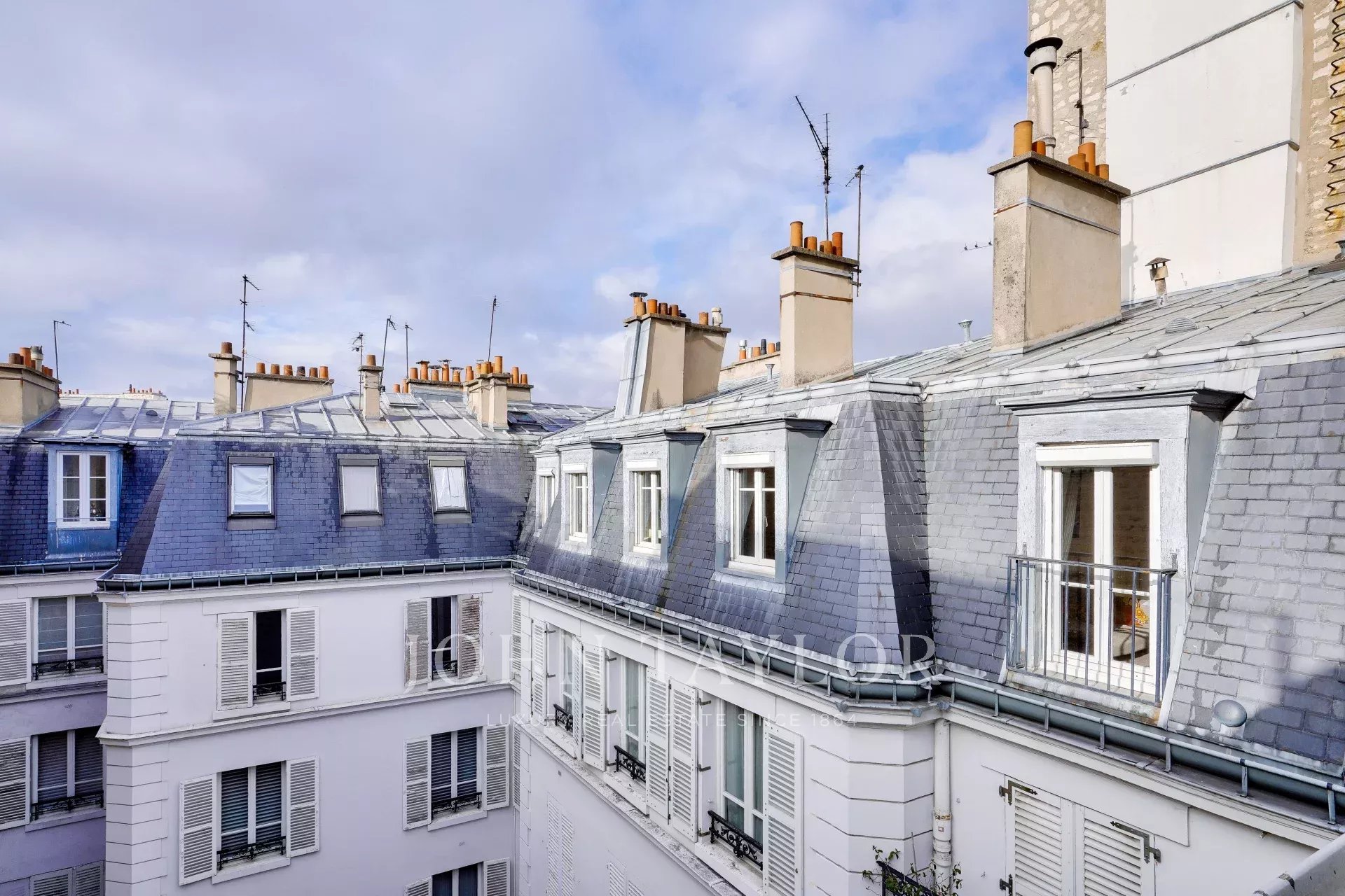 Sole agent. Delightful, light-filled 53.02 m² loi Carrez apartment (69.42 m² on the ground), located on the top floor by elevator of an old building of good standing, with an unobstructed view of the Paris skyline, a stone's throw from Place Saint-Sulpice and Jardin du Luxembourg.