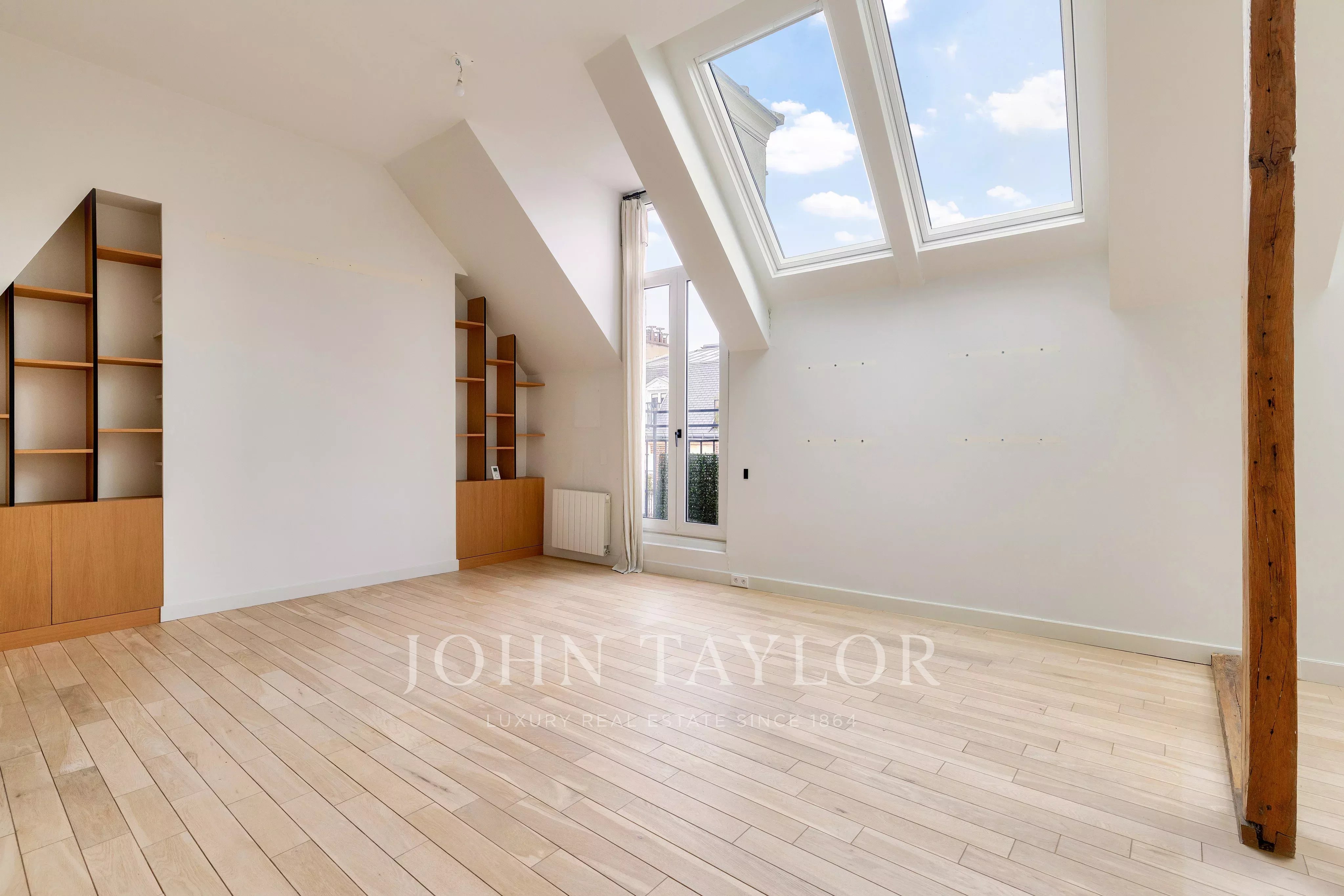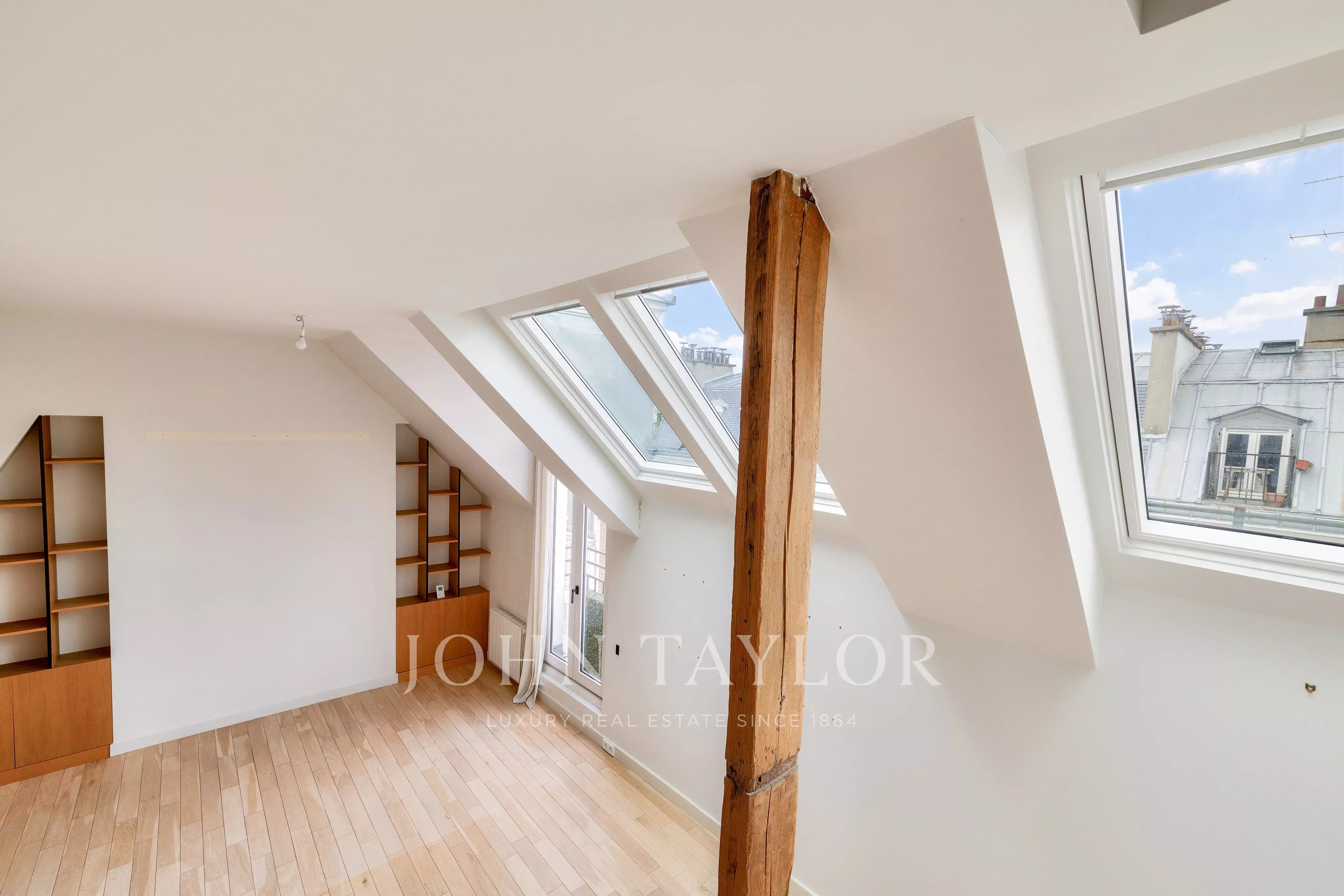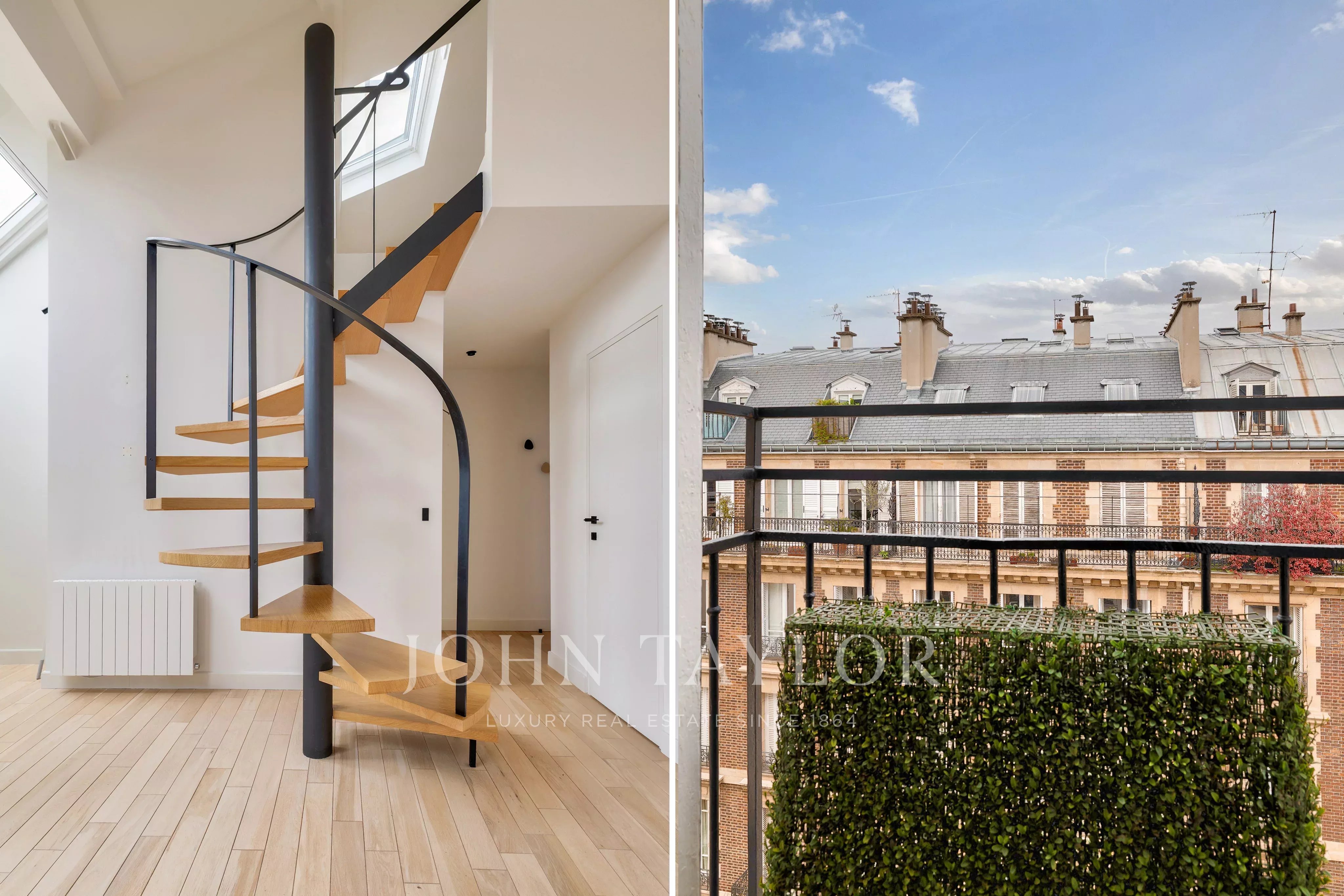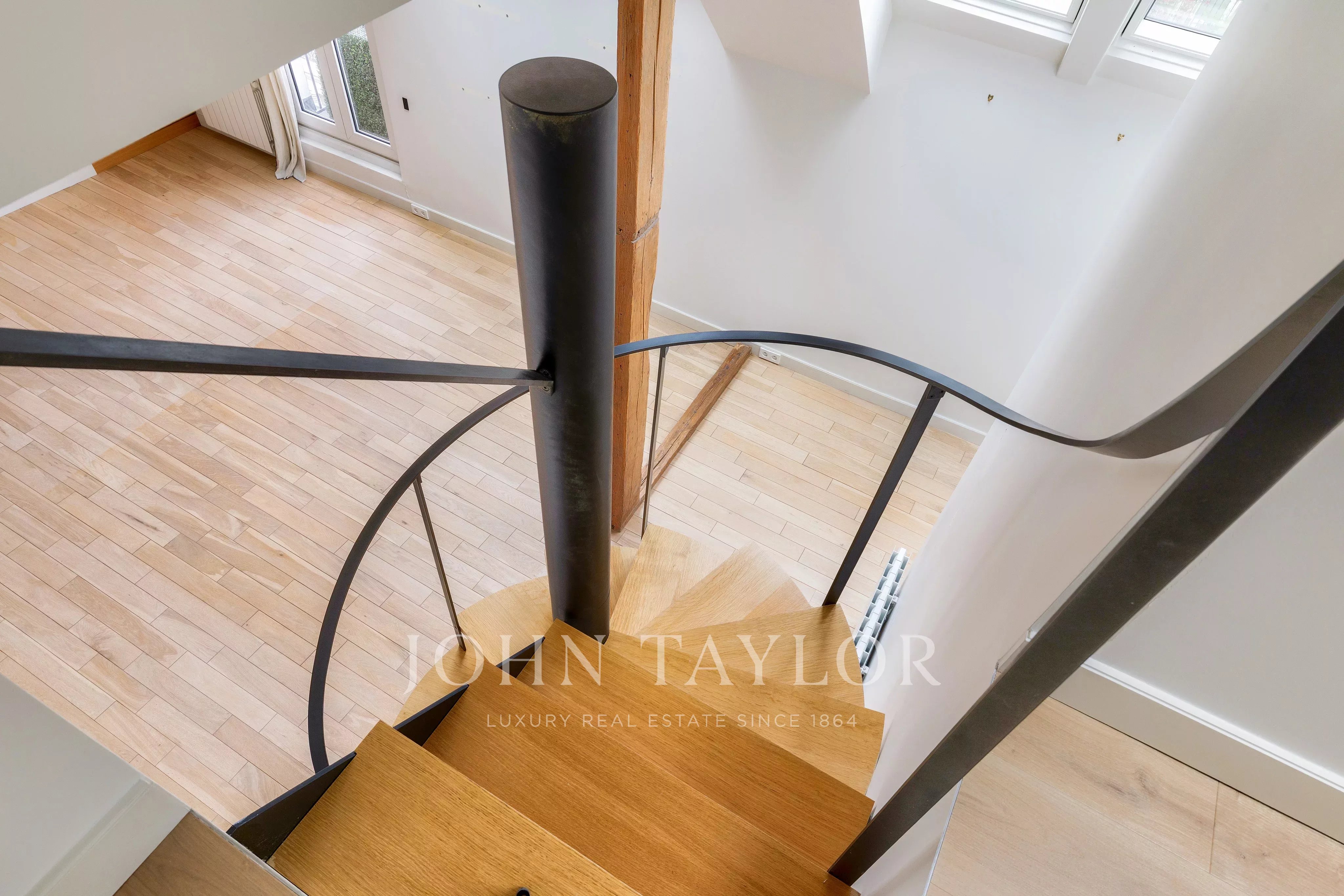 In a fully renovated historic building, charming duplex loft apartment on the top floor with elevator access.