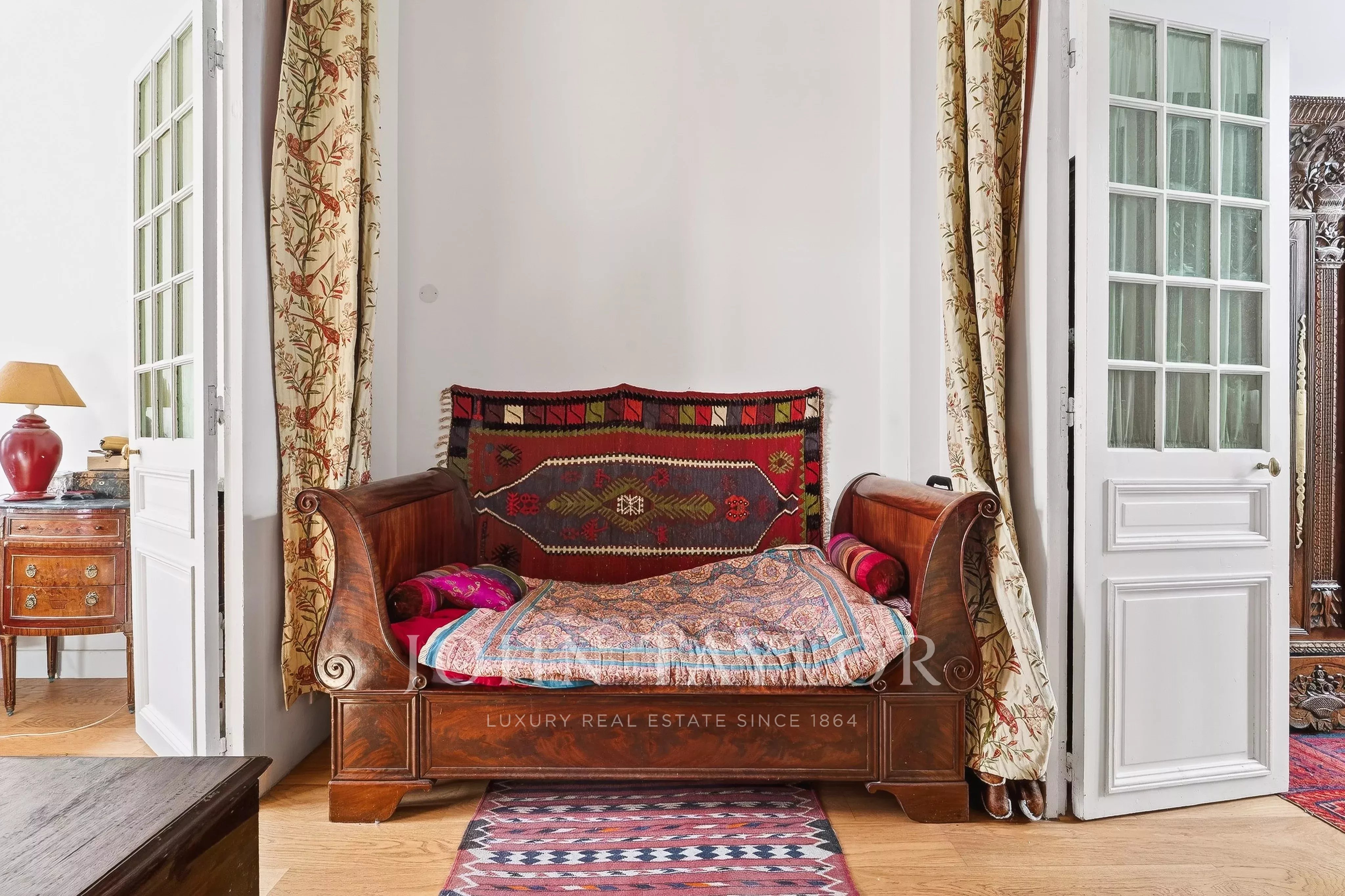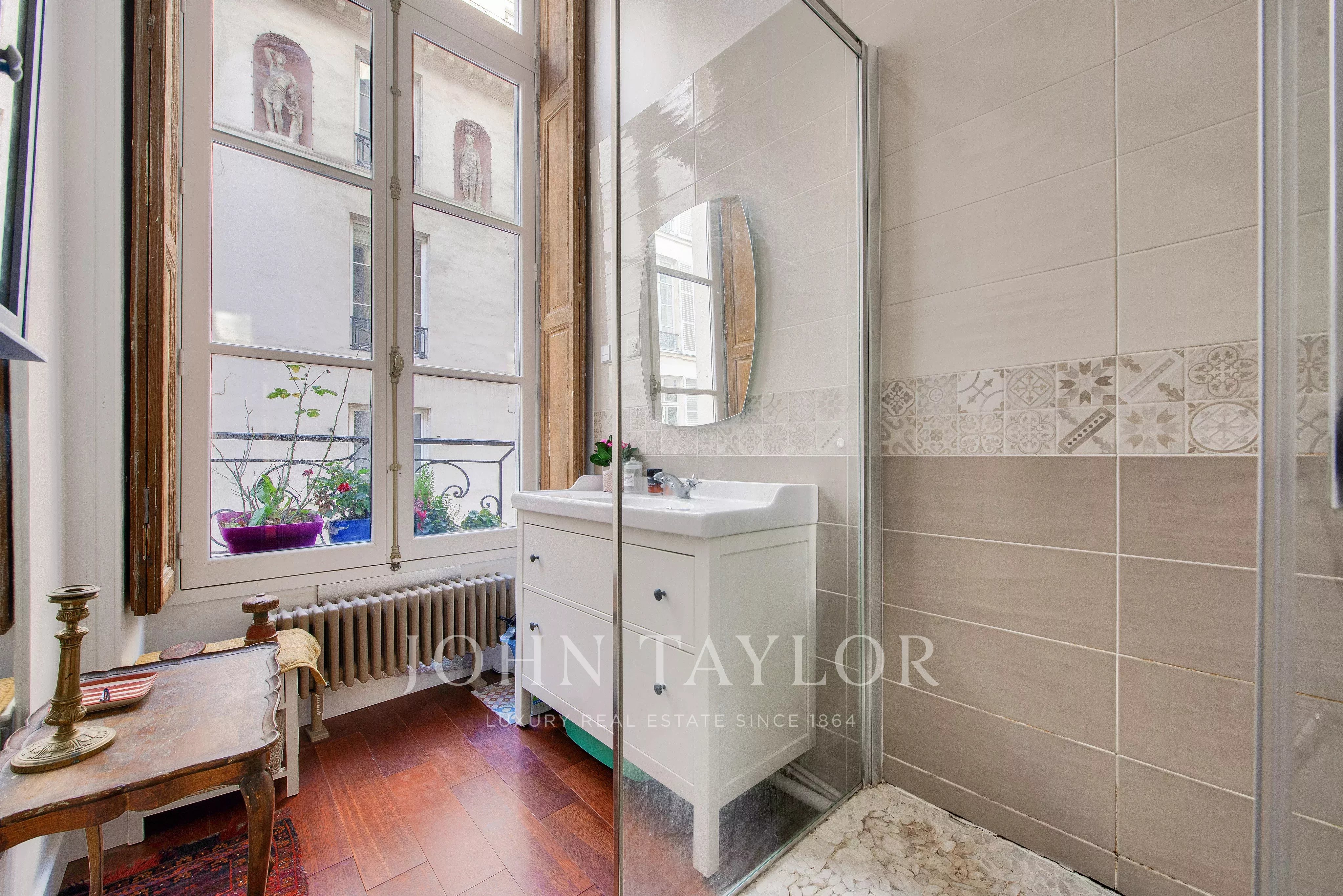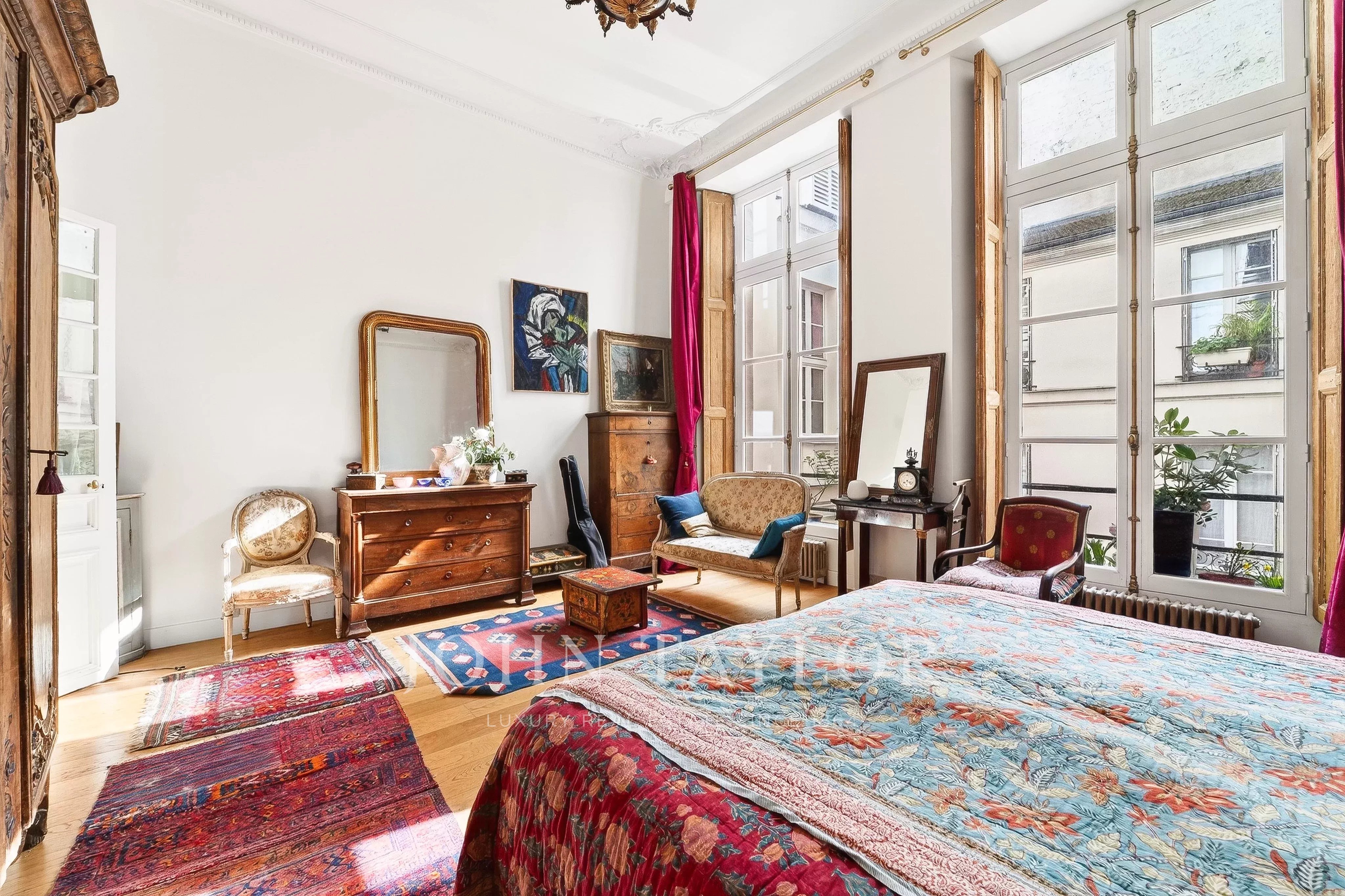 Located in the heart of the highly sought-after Odéon district, on a quiet street, this charming apartment of 100.65 sq. m (Carrez law) is situated on the first floor of a beautiful 18th-century building, accessible via a grand staircase (located above the mezzanine floor).