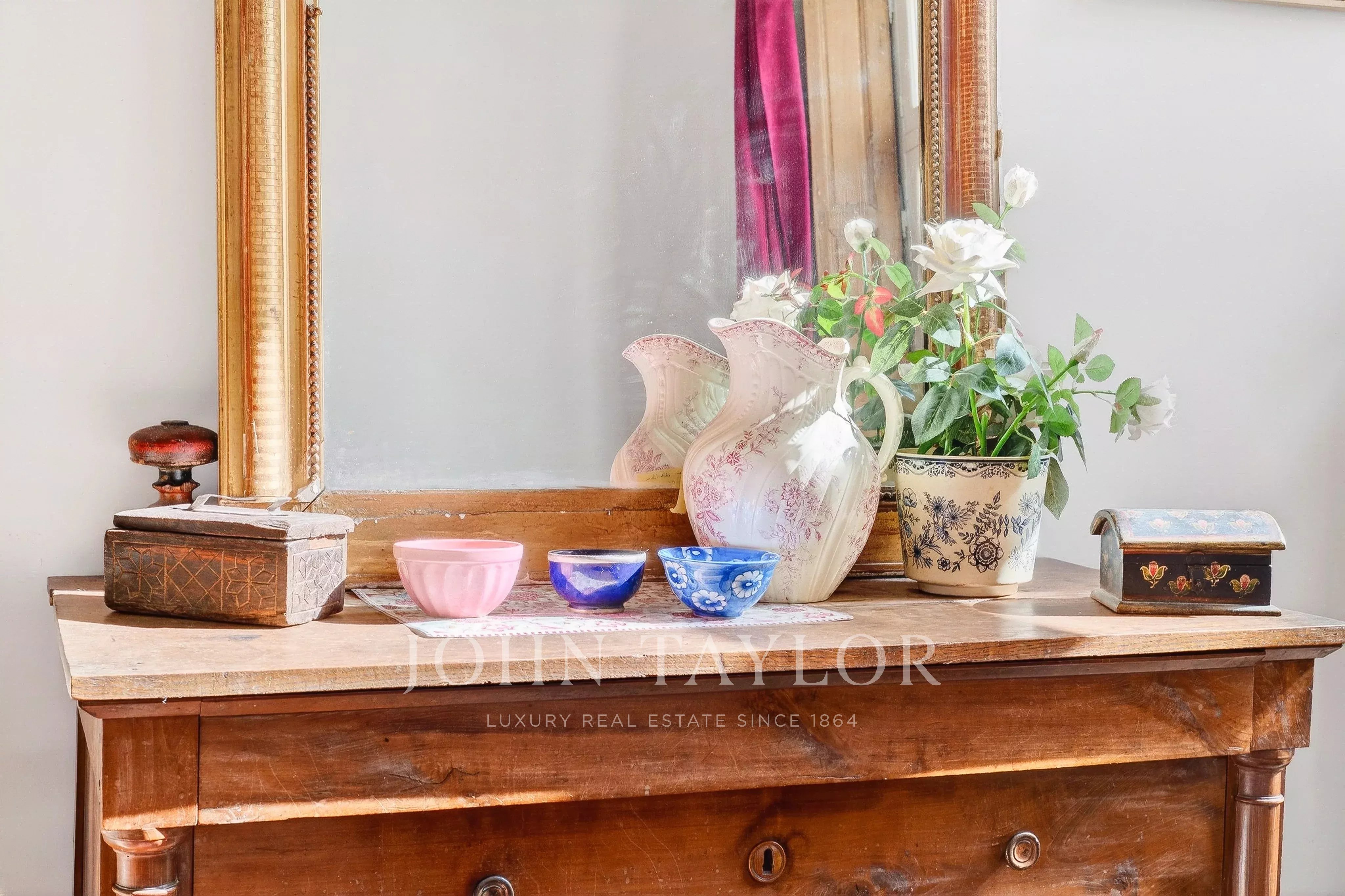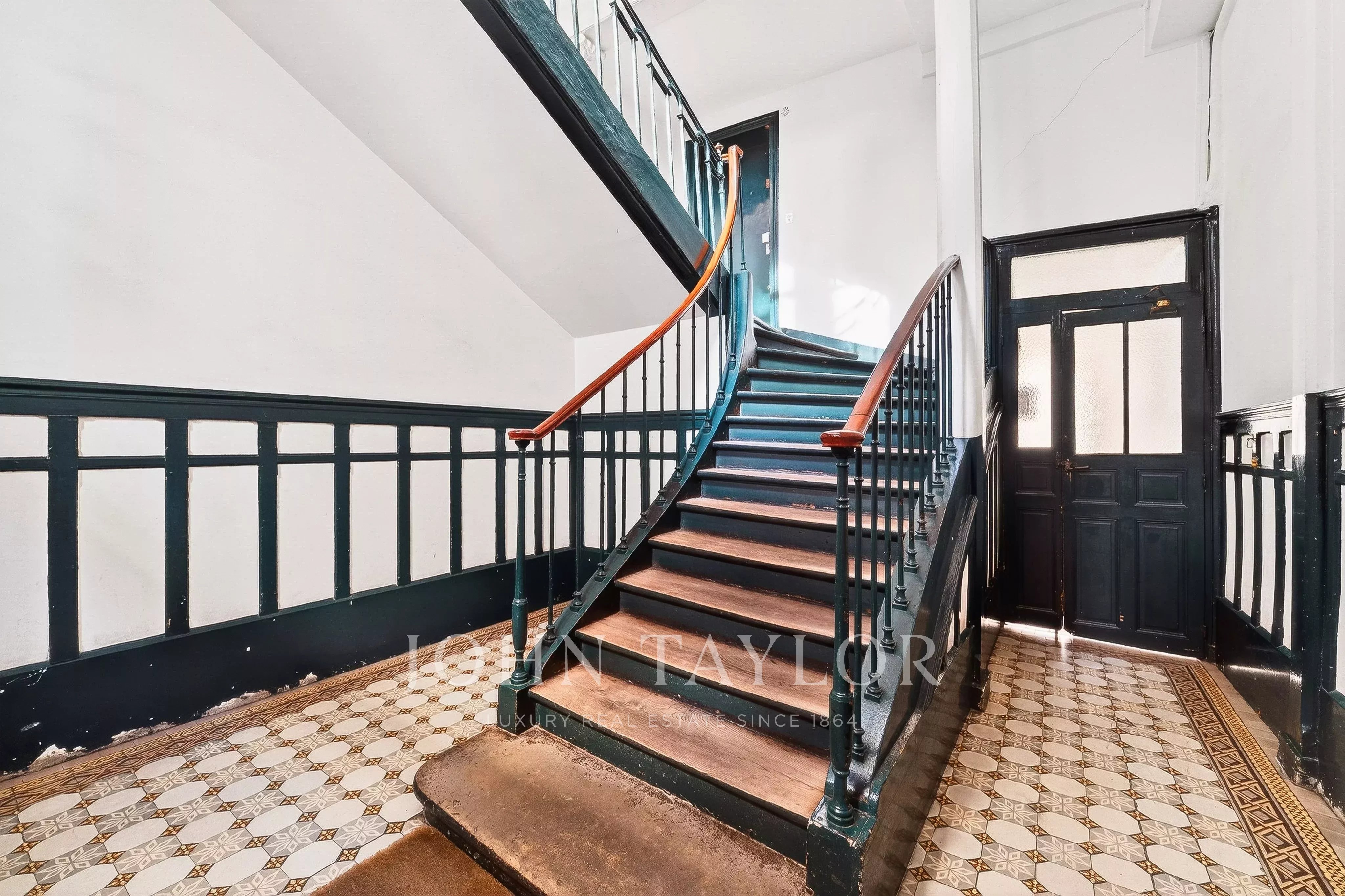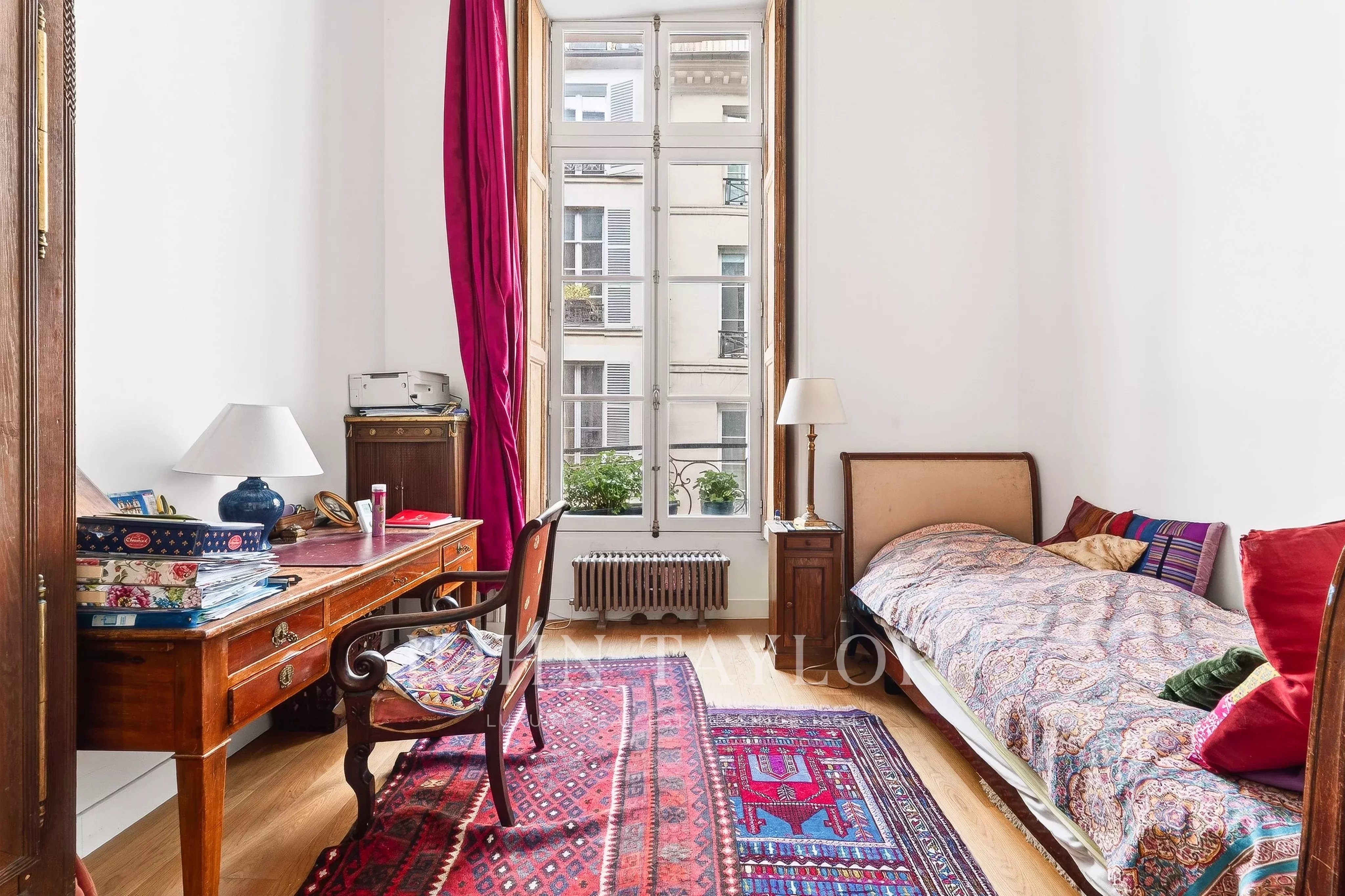 In excellent condition and renovated in 2022, this dual-aspect apartment offers rare volumes with 4.20m high ceilings and beautiful period features, including oeil-de-boeuf windows and original moldings. It is composed as follows: