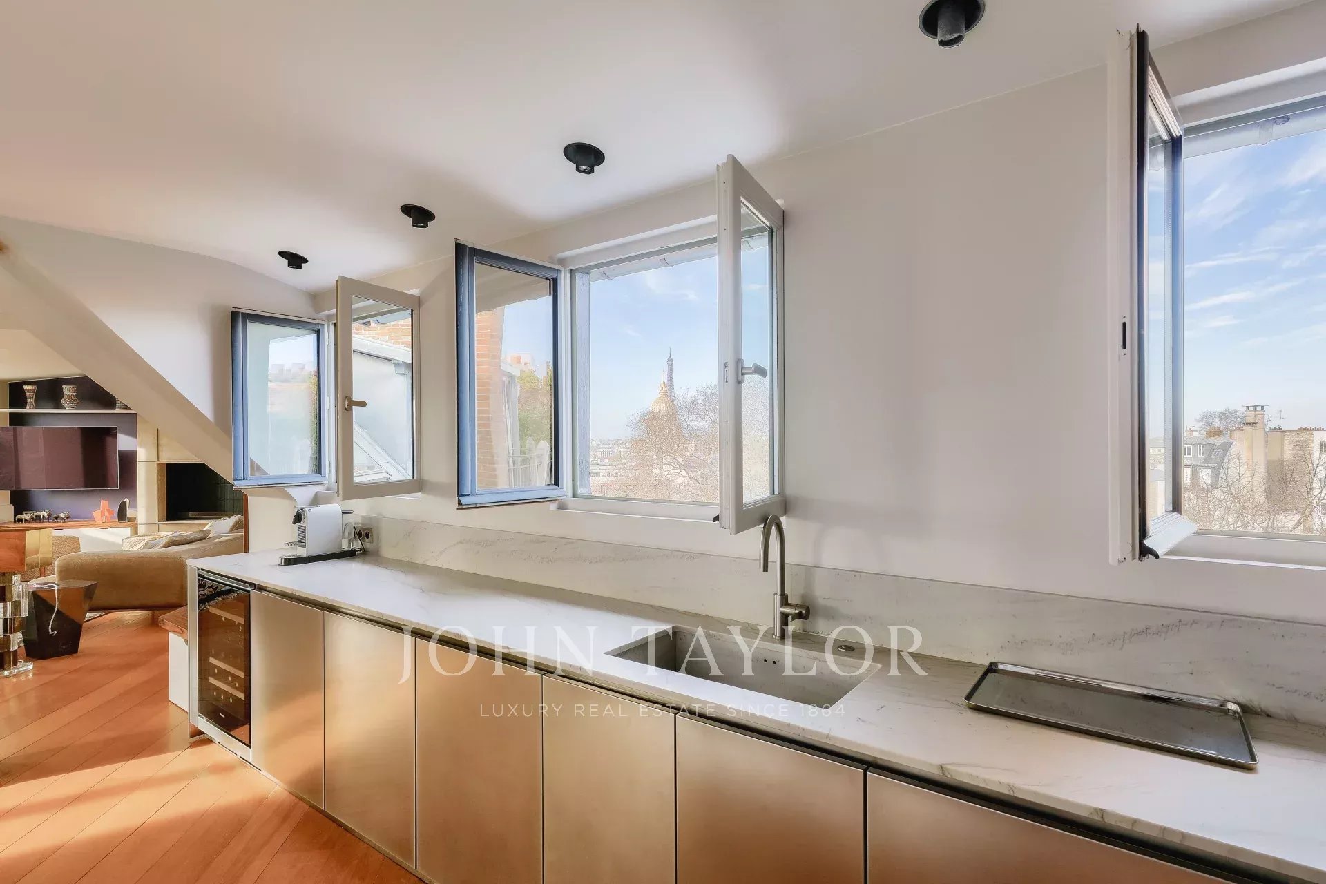 In a magnificent luxury condominium, a 100 sqm (88.72 sqm) apartment on the top floor with elevator (one floor to climb on foot).