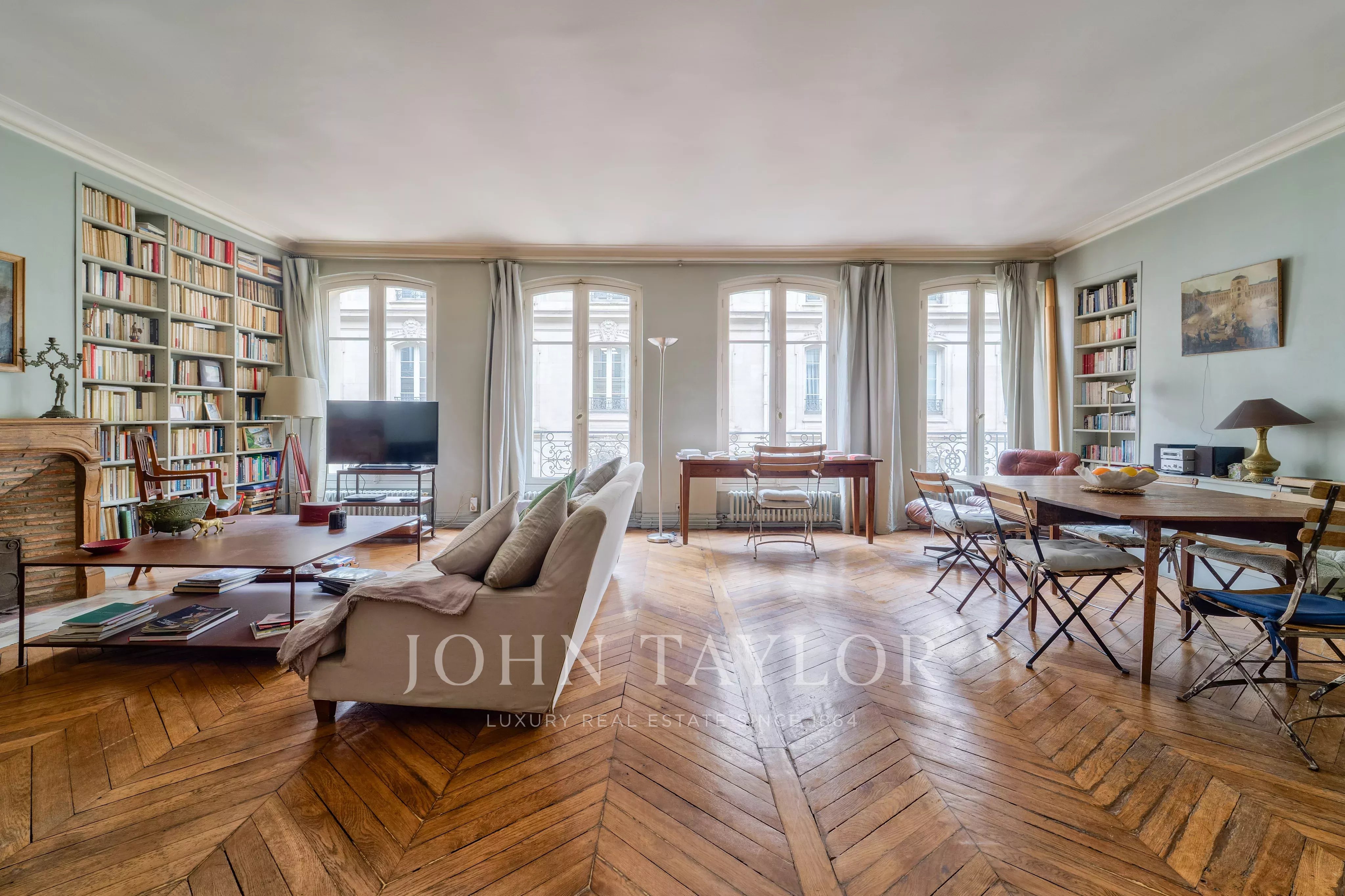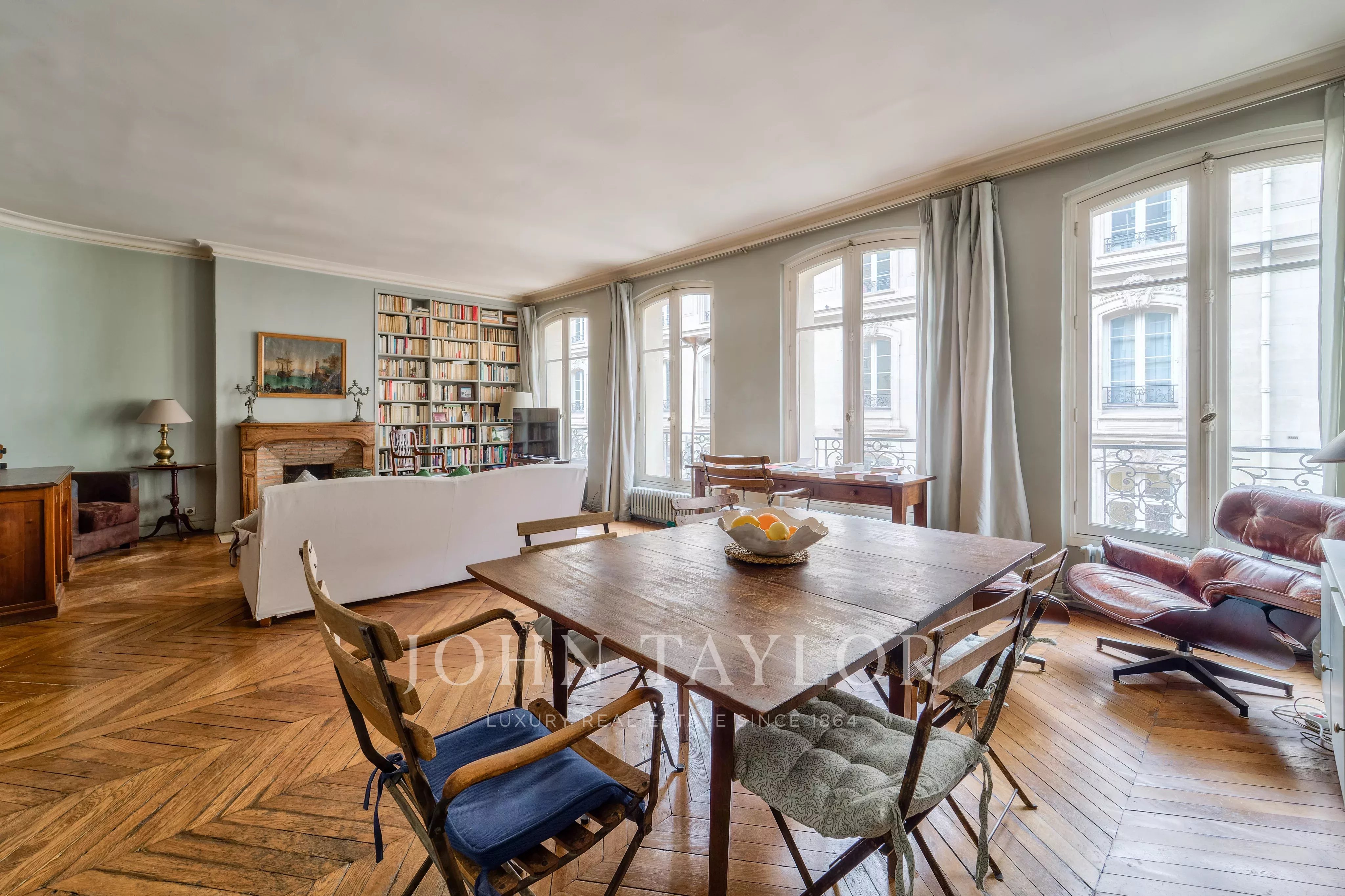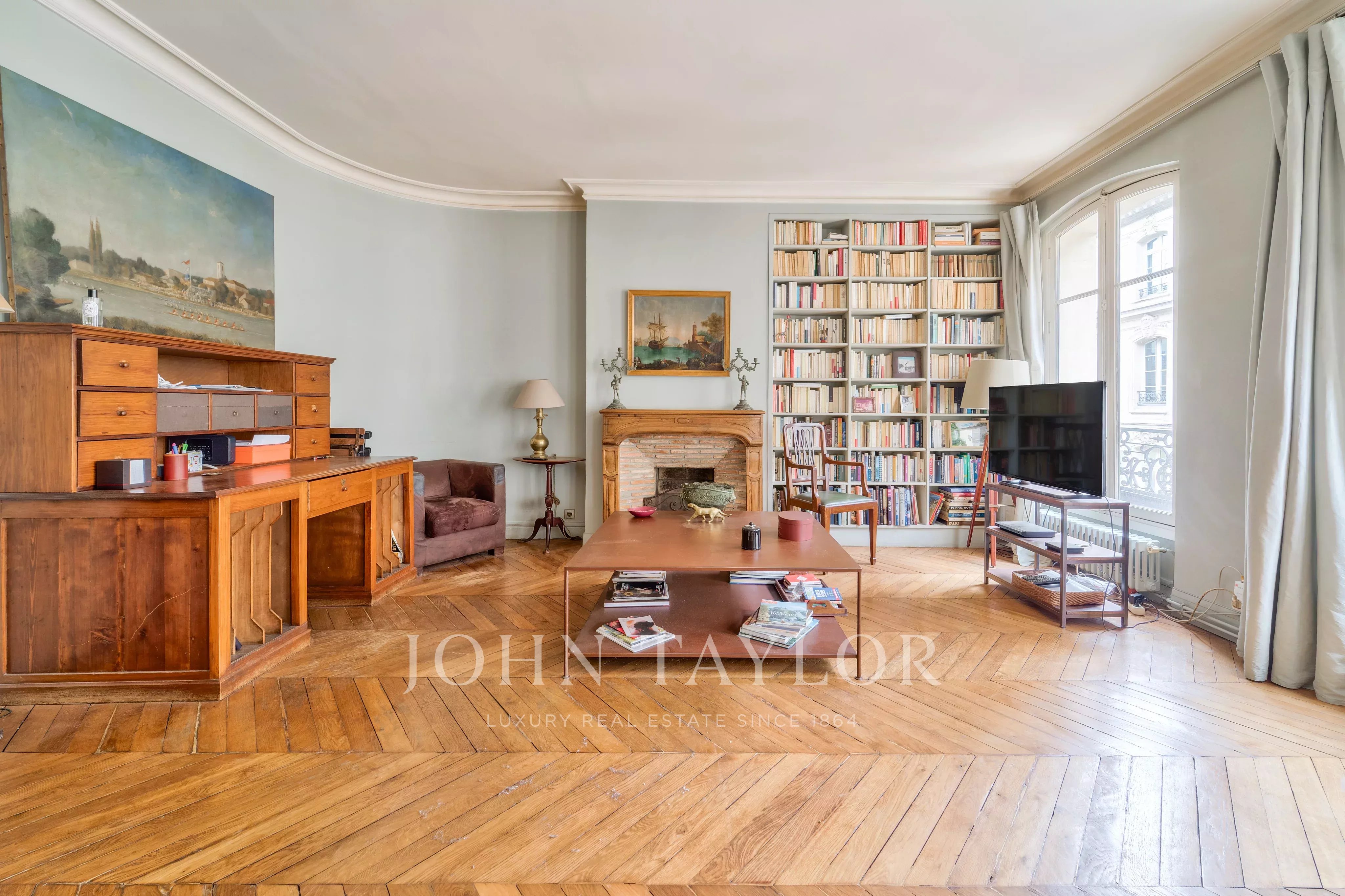 In the heart of the antiques district, within easy reach of Saint-Germain des Prés, the Louvre, the Musée d'Orsay and the quays of the Seine, lies this beautiful 85m2 apartment on the 3ᵉ floor of a Haussmann building.