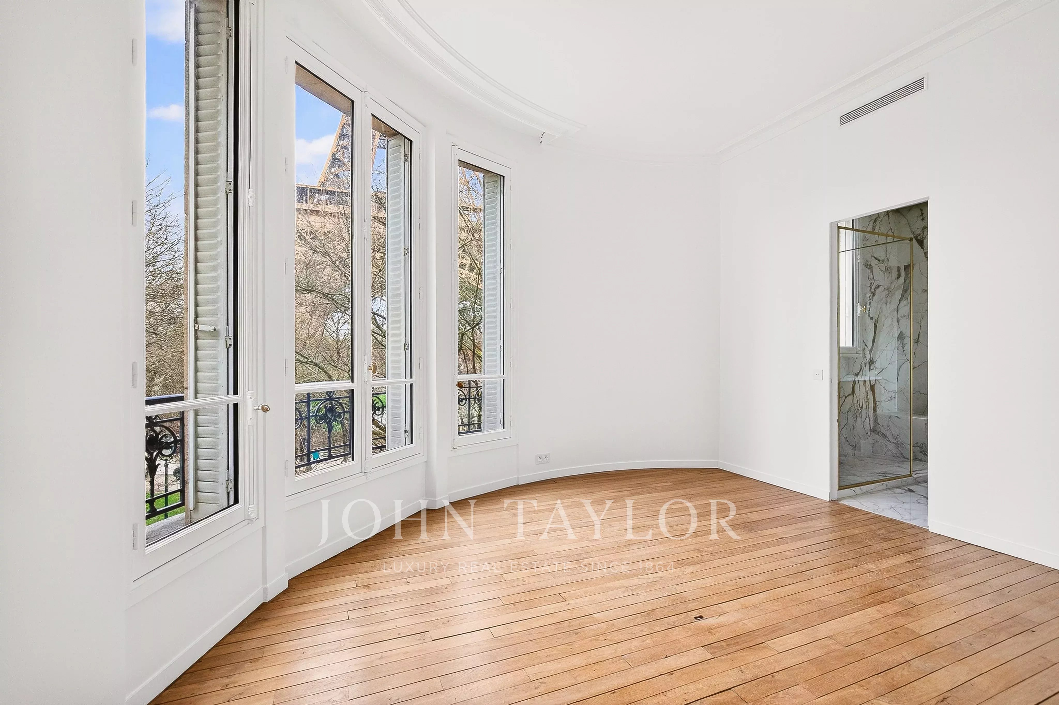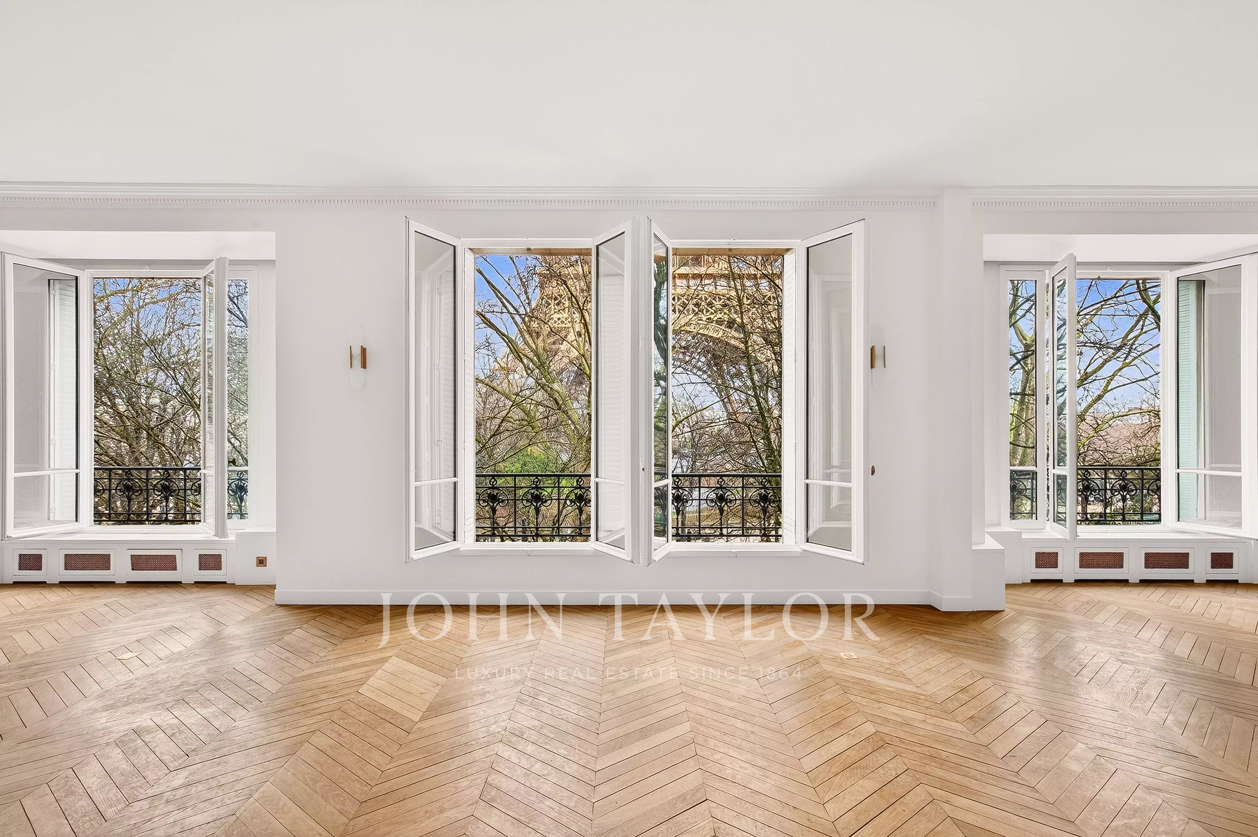 In a magnificent building dating from 1910, superb 206,76 sqm apartment, located on the 3rd floor with lift, offering panoramic views of the Eiffel Tower and the Champ de Mars gardens.