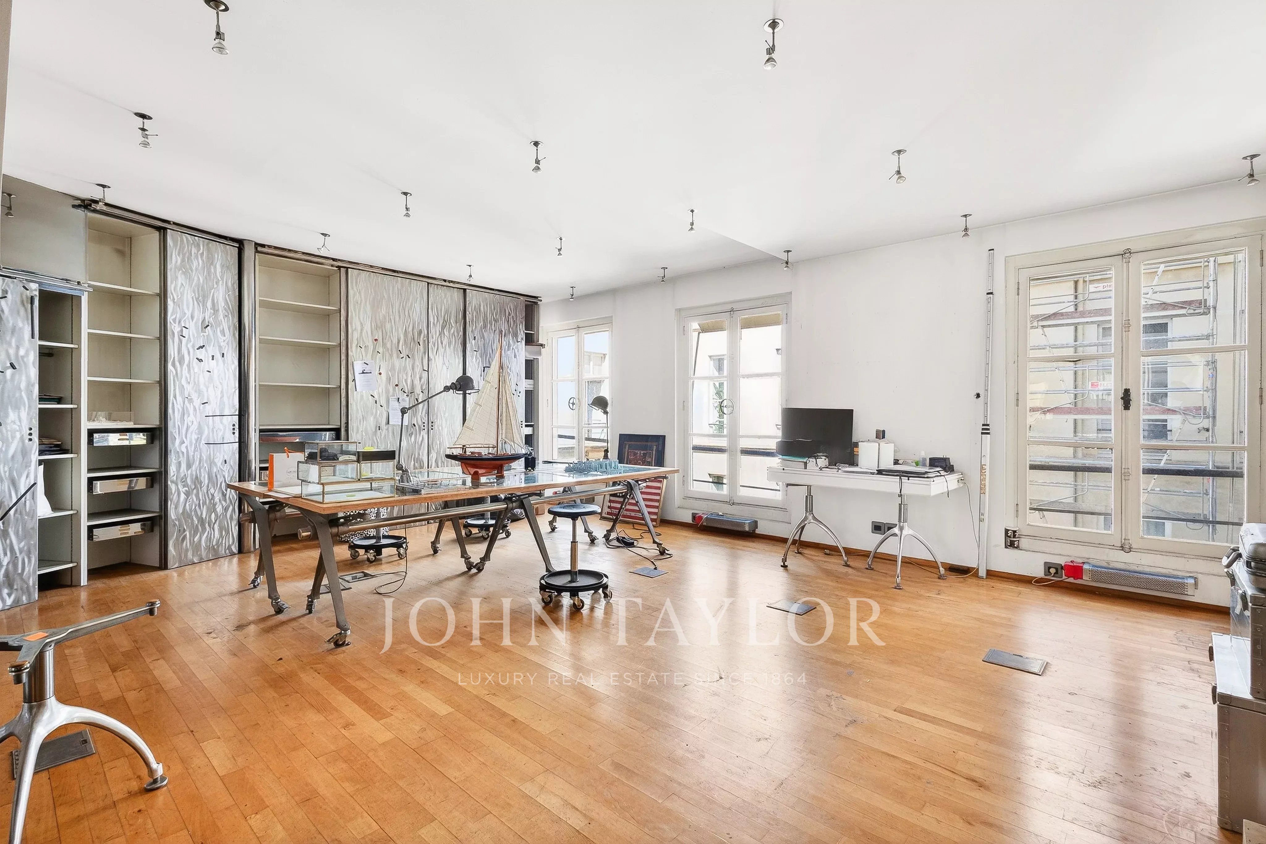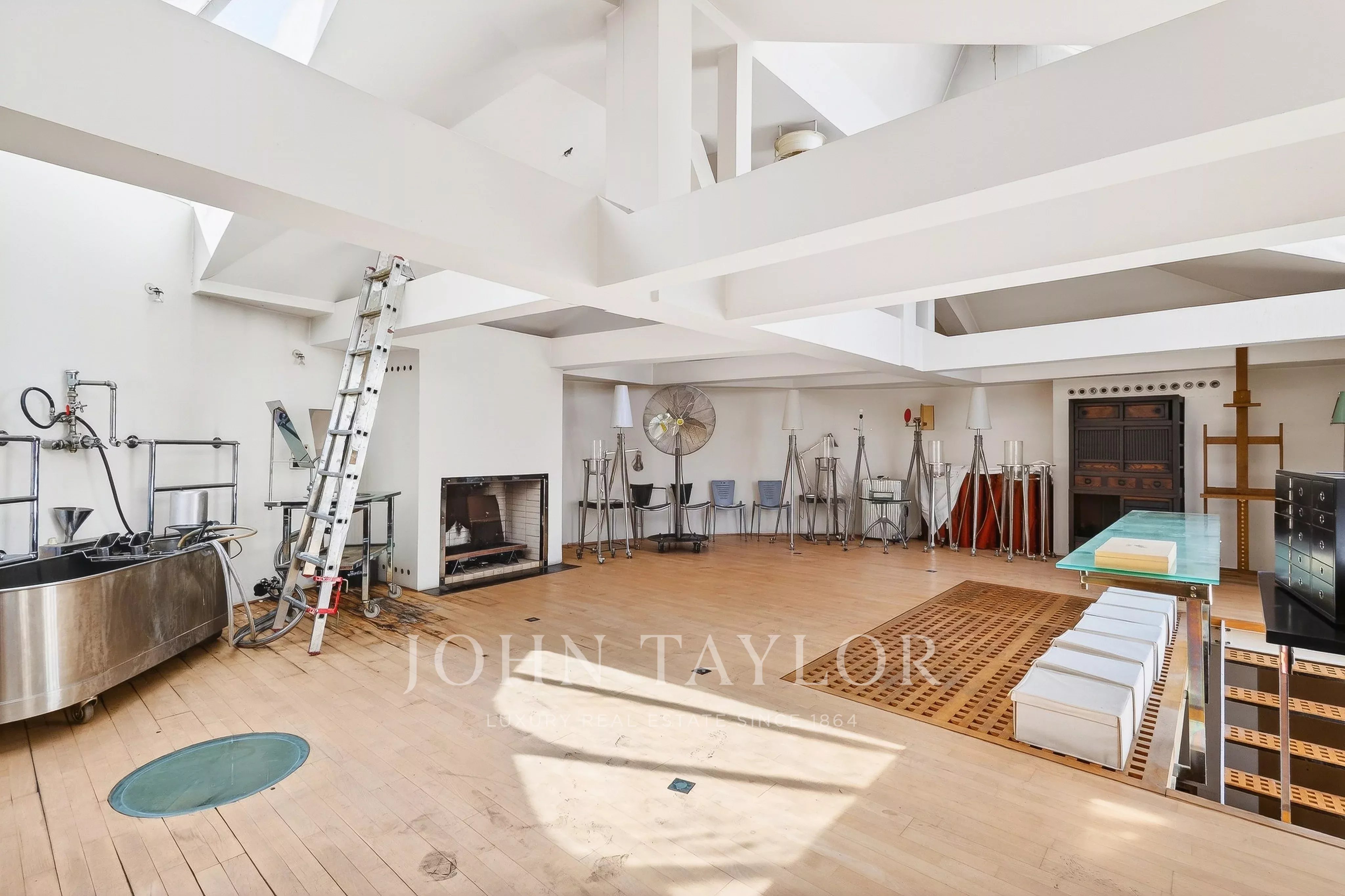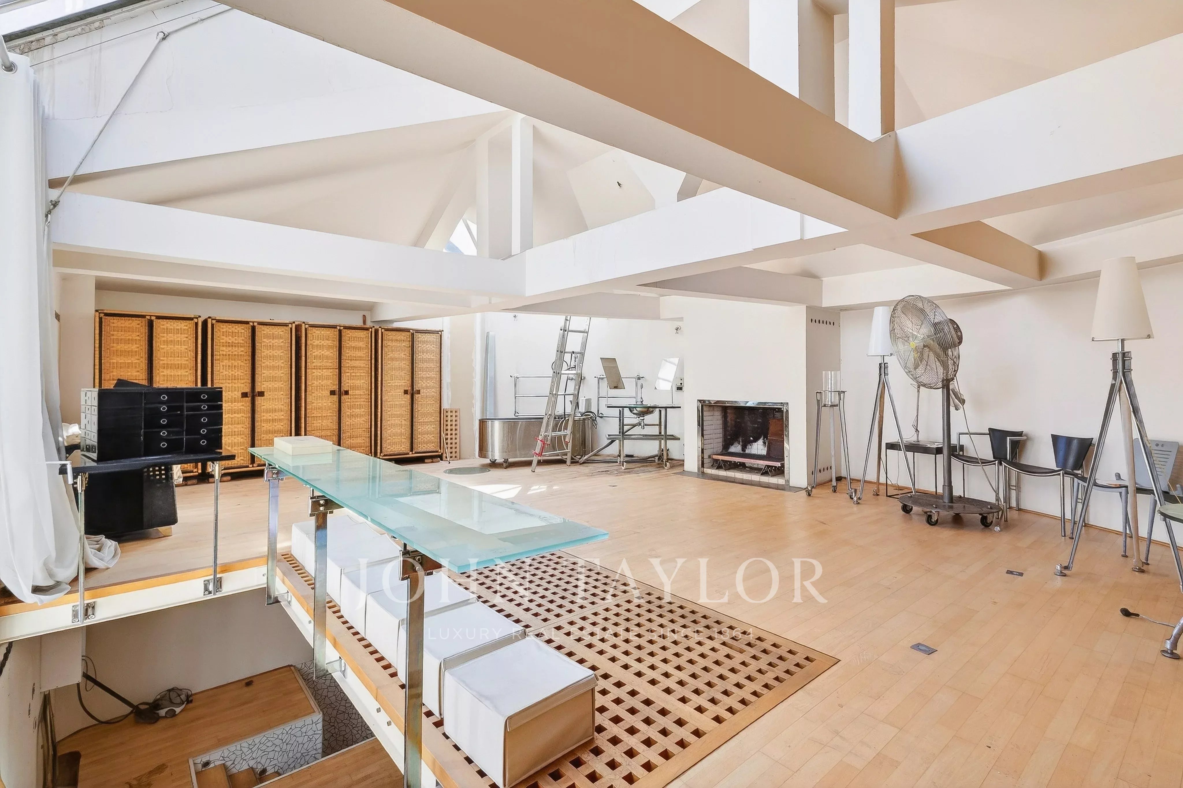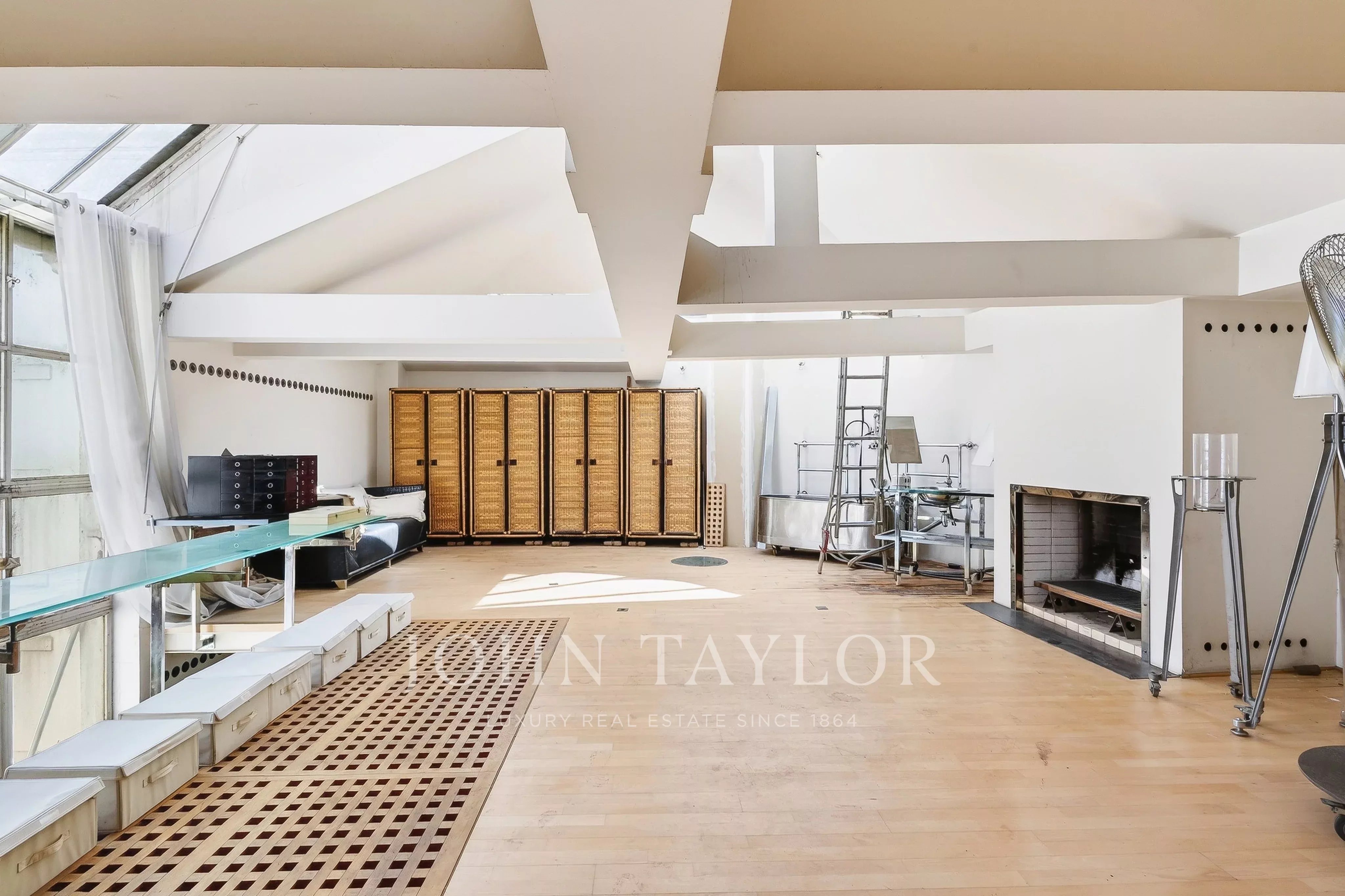 In the quiet of Quai Voltaire, opposite the Louvre, this 202 m² artist’s studio captivates with its history and unique volumes.