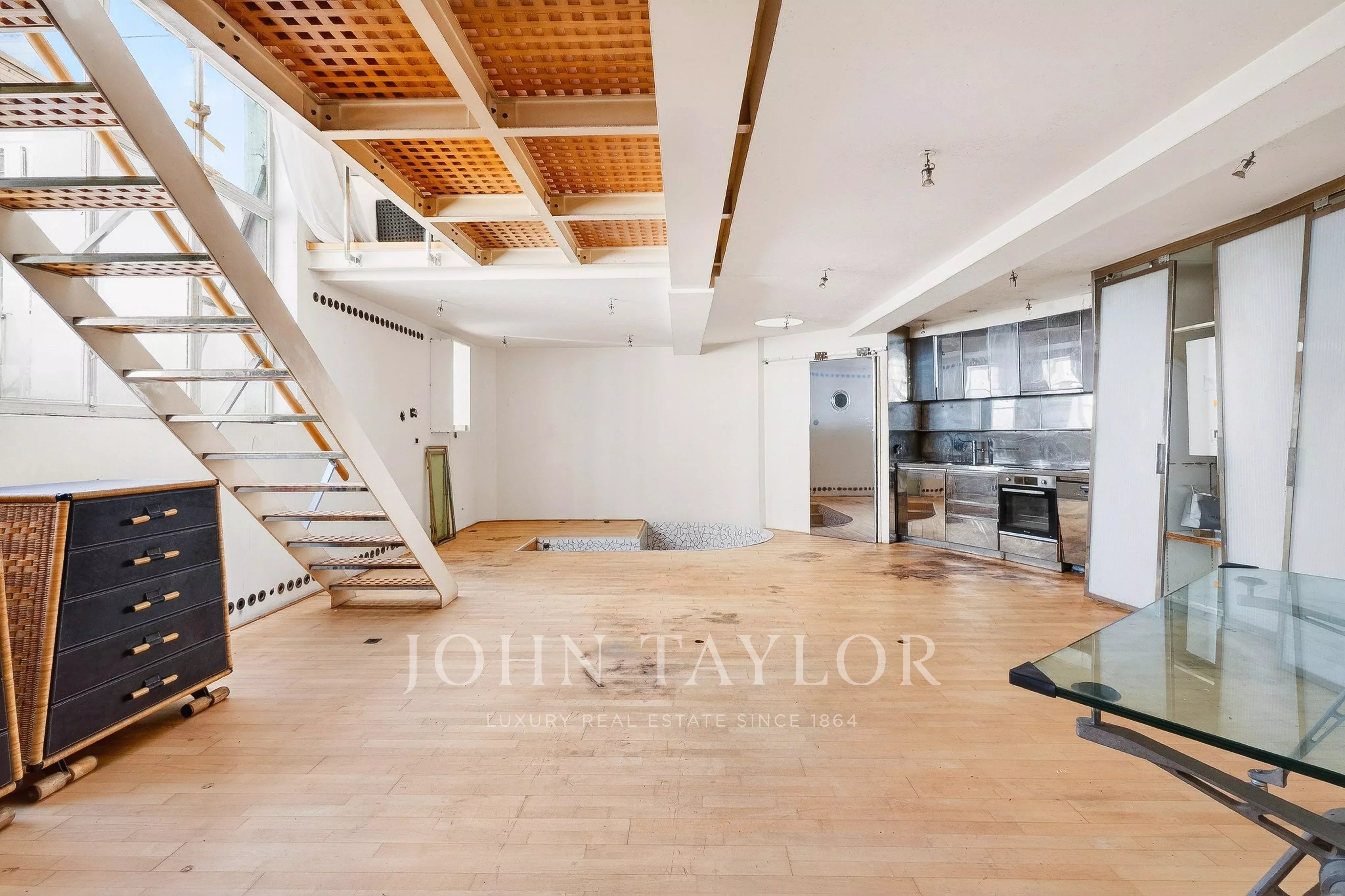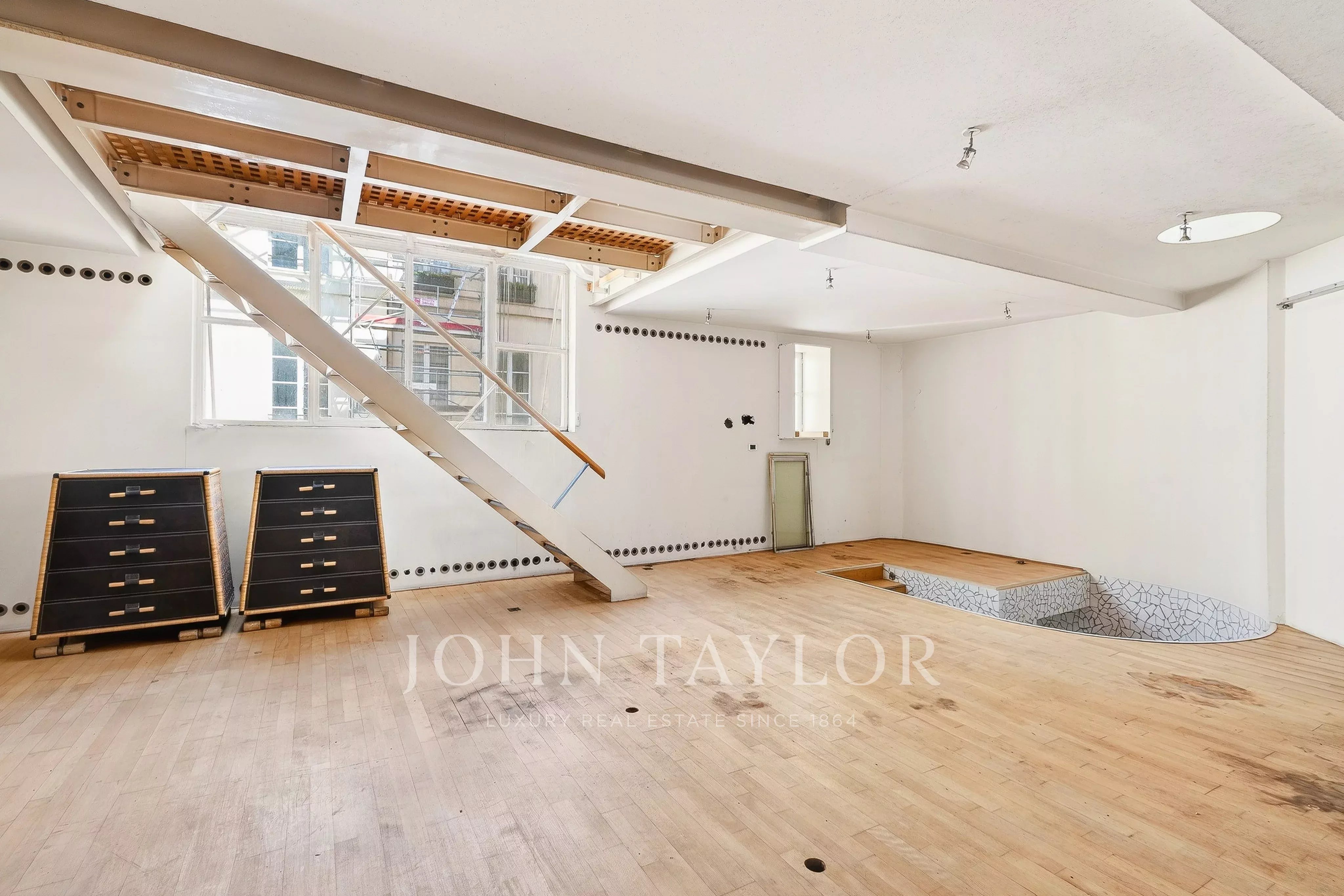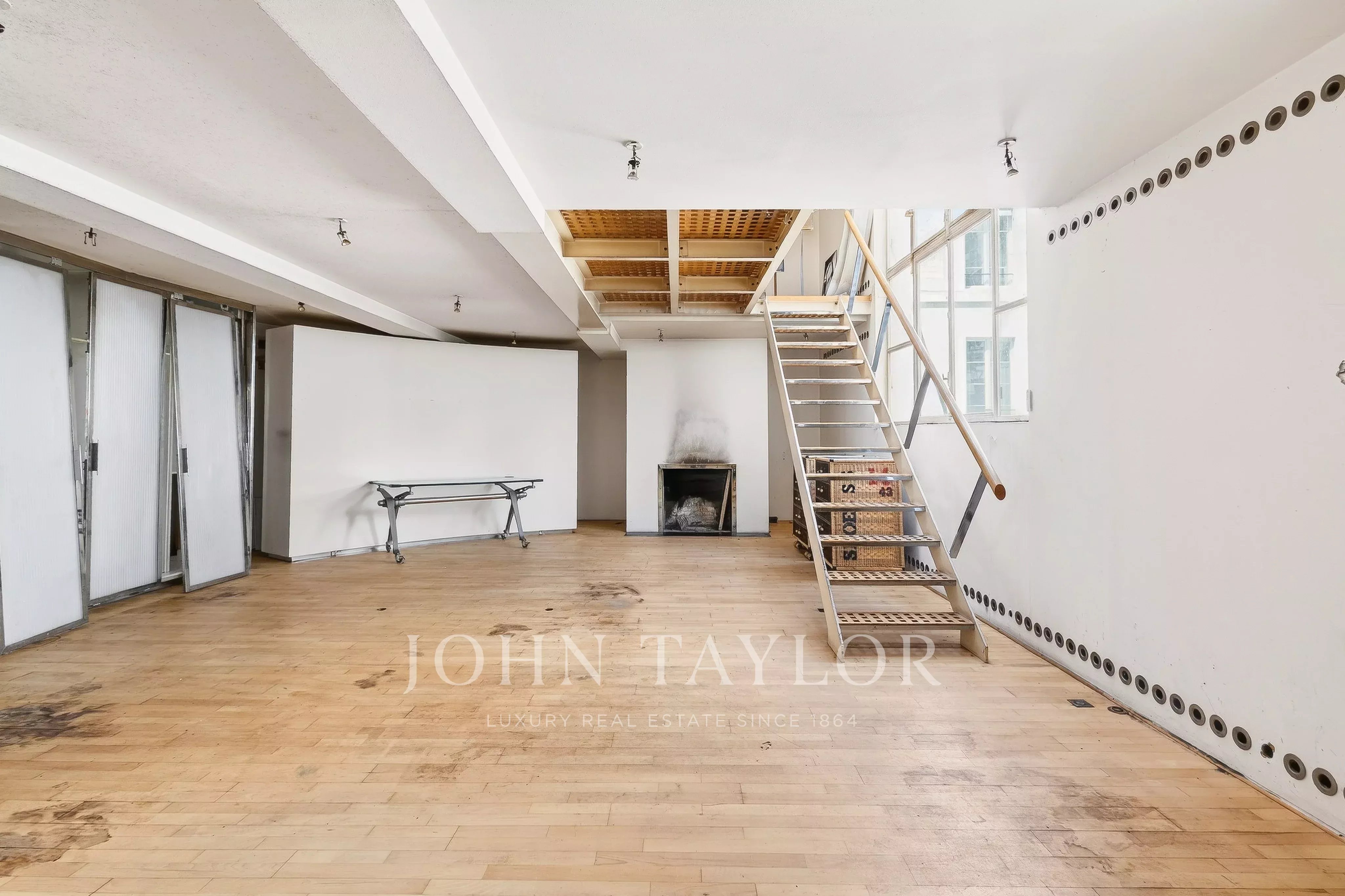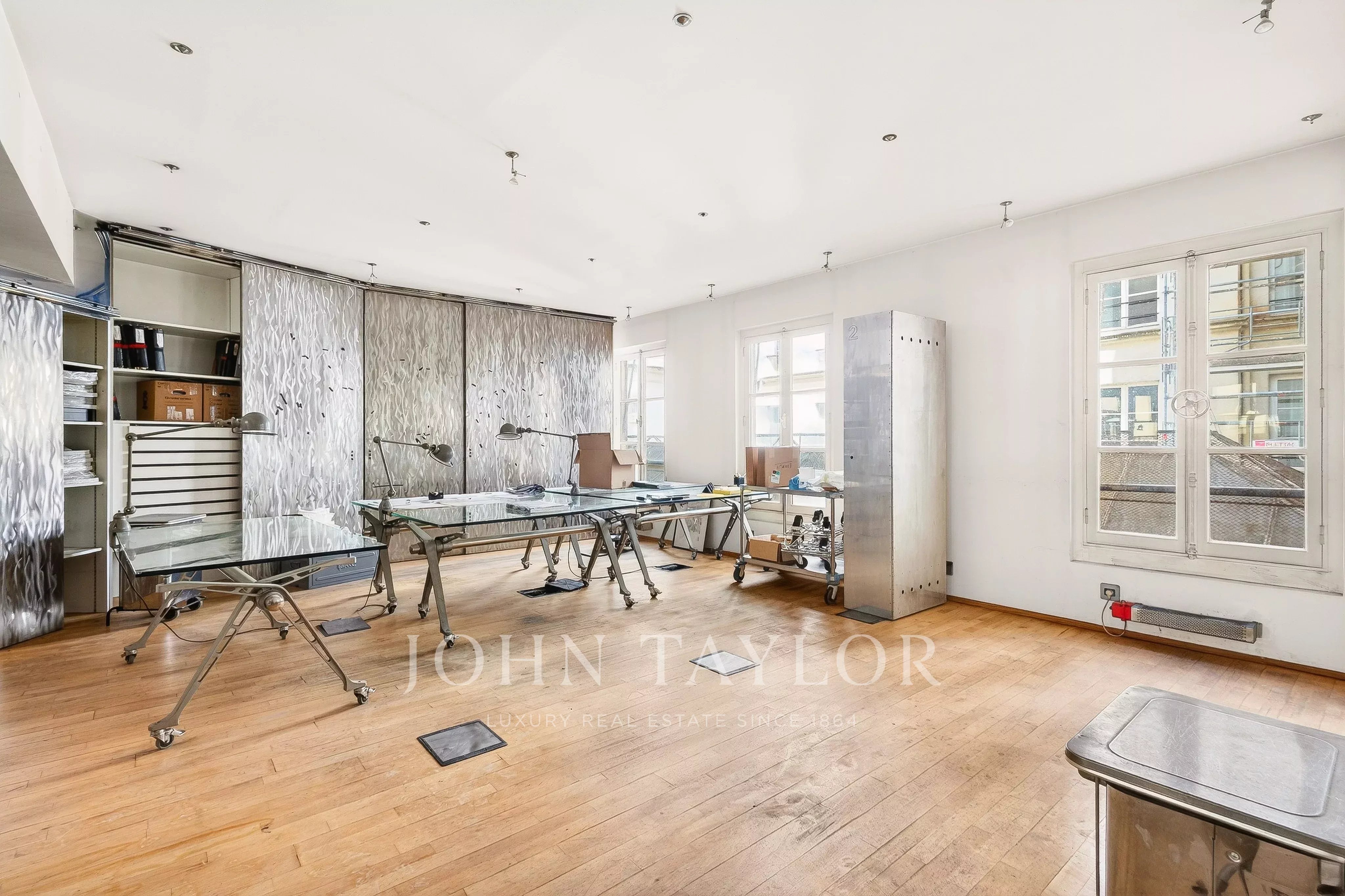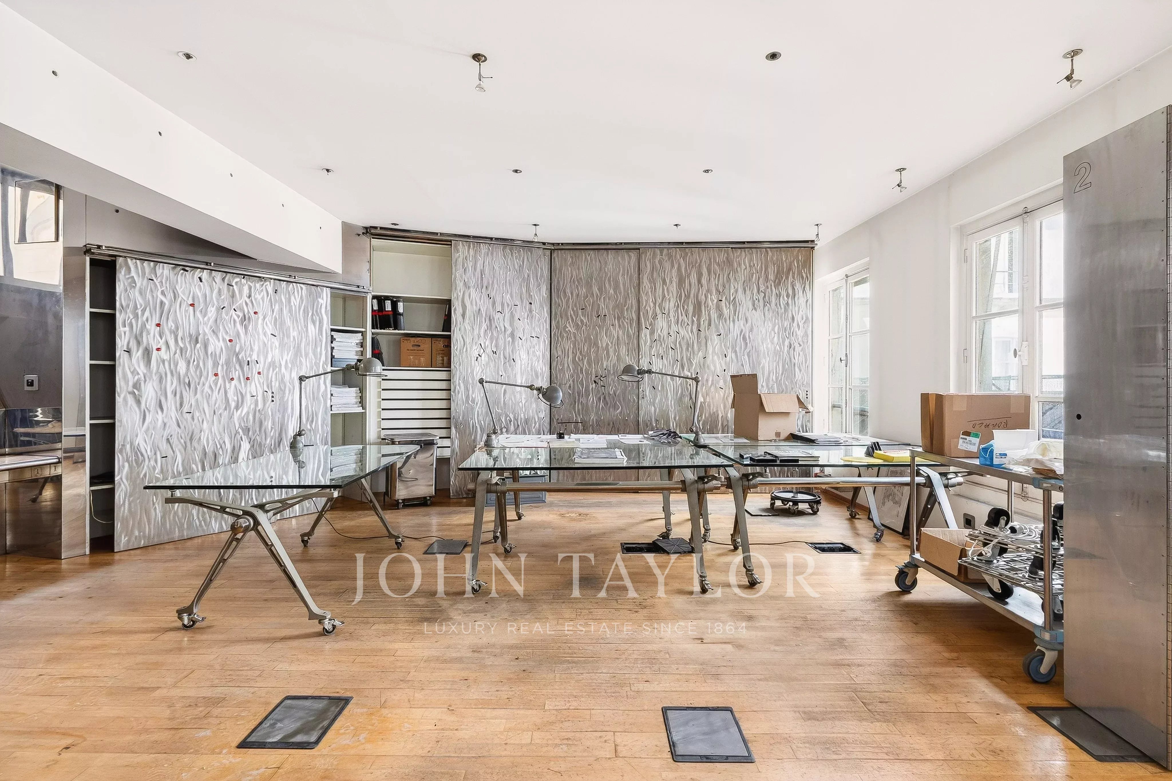In the quiet of Quai Voltaire, opposite the Louvre, this 202 m² artist’s studio captivates with its history and unique volumes.