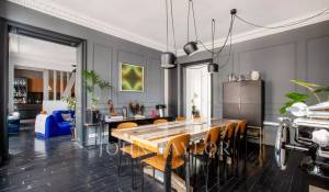Tastefully renovated and retaining its original features (parquet flooring, fireplace, moldings), it offers spacious accommodation (3.20m high ceilings) and comprises: