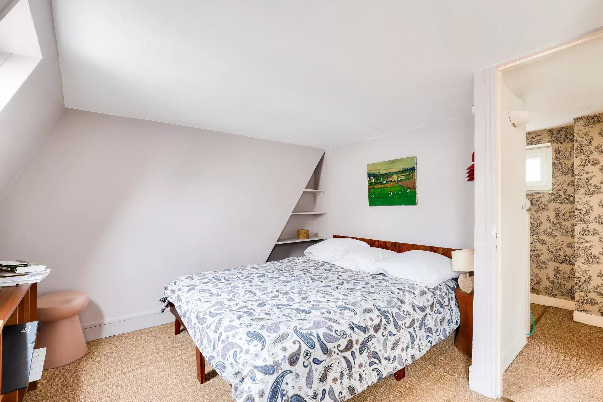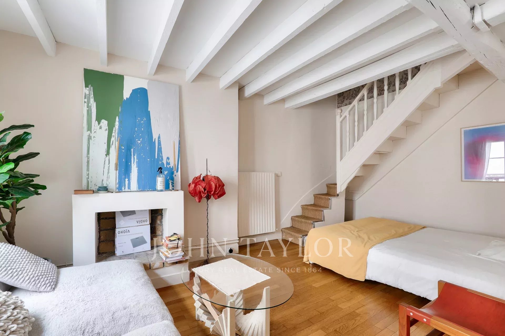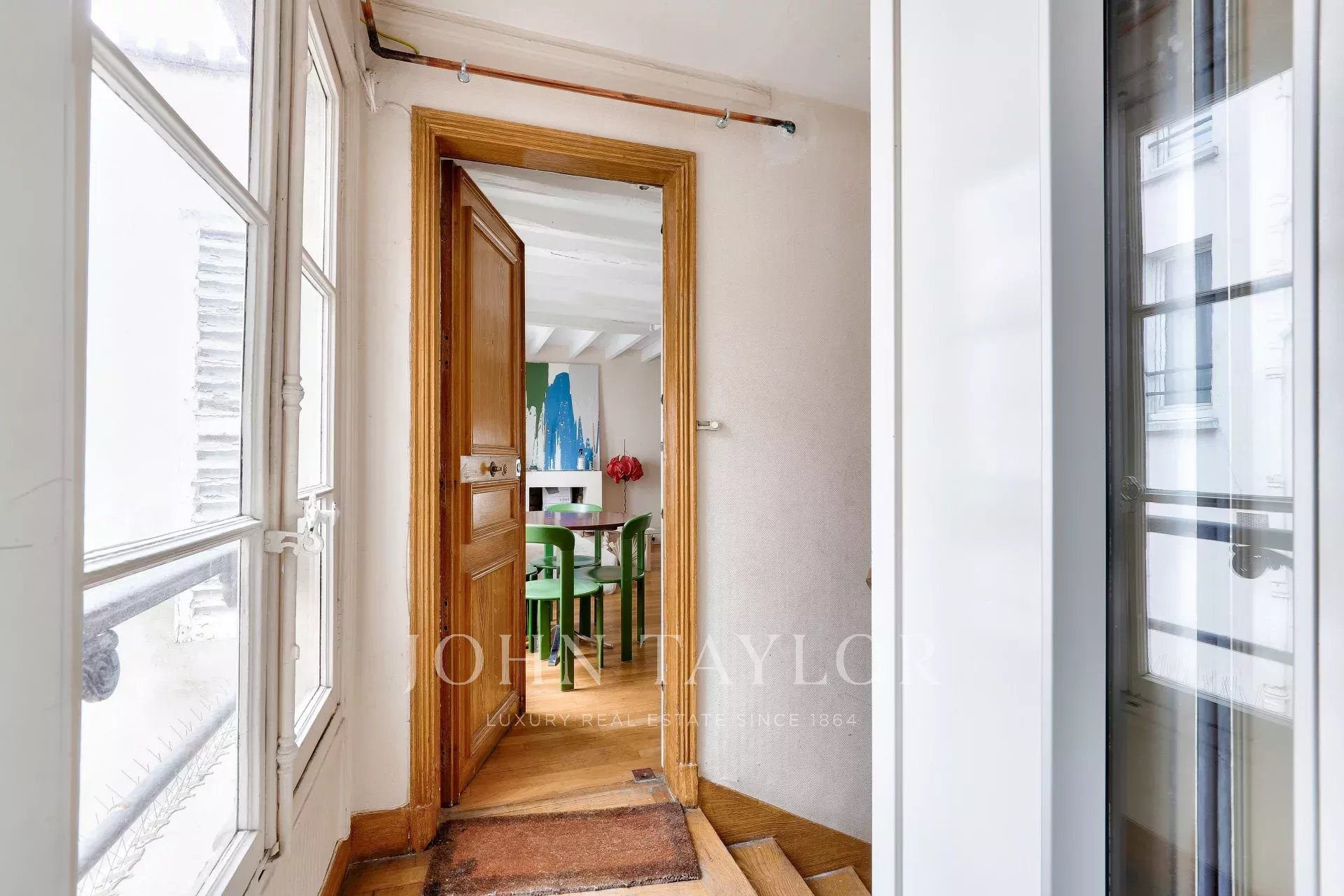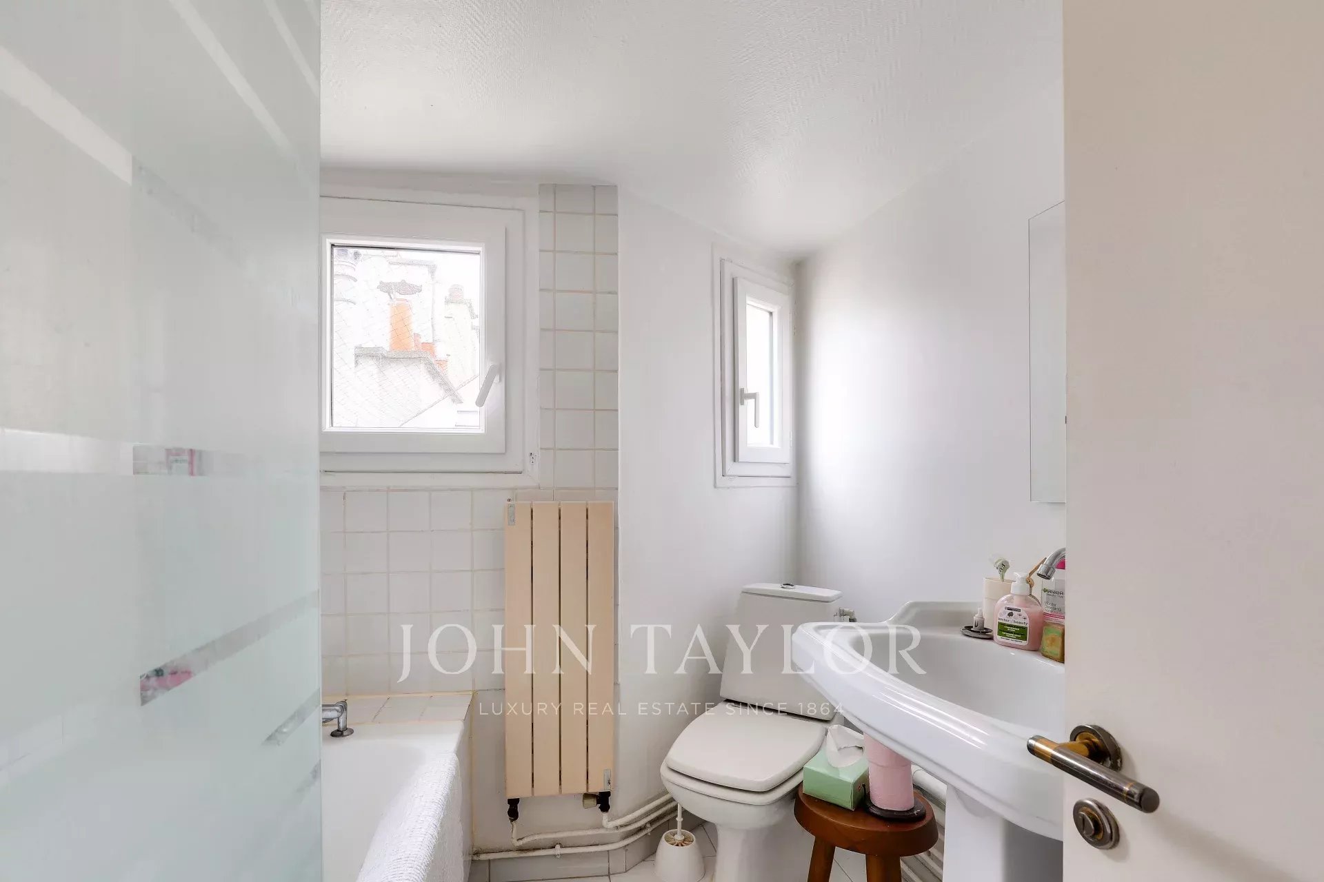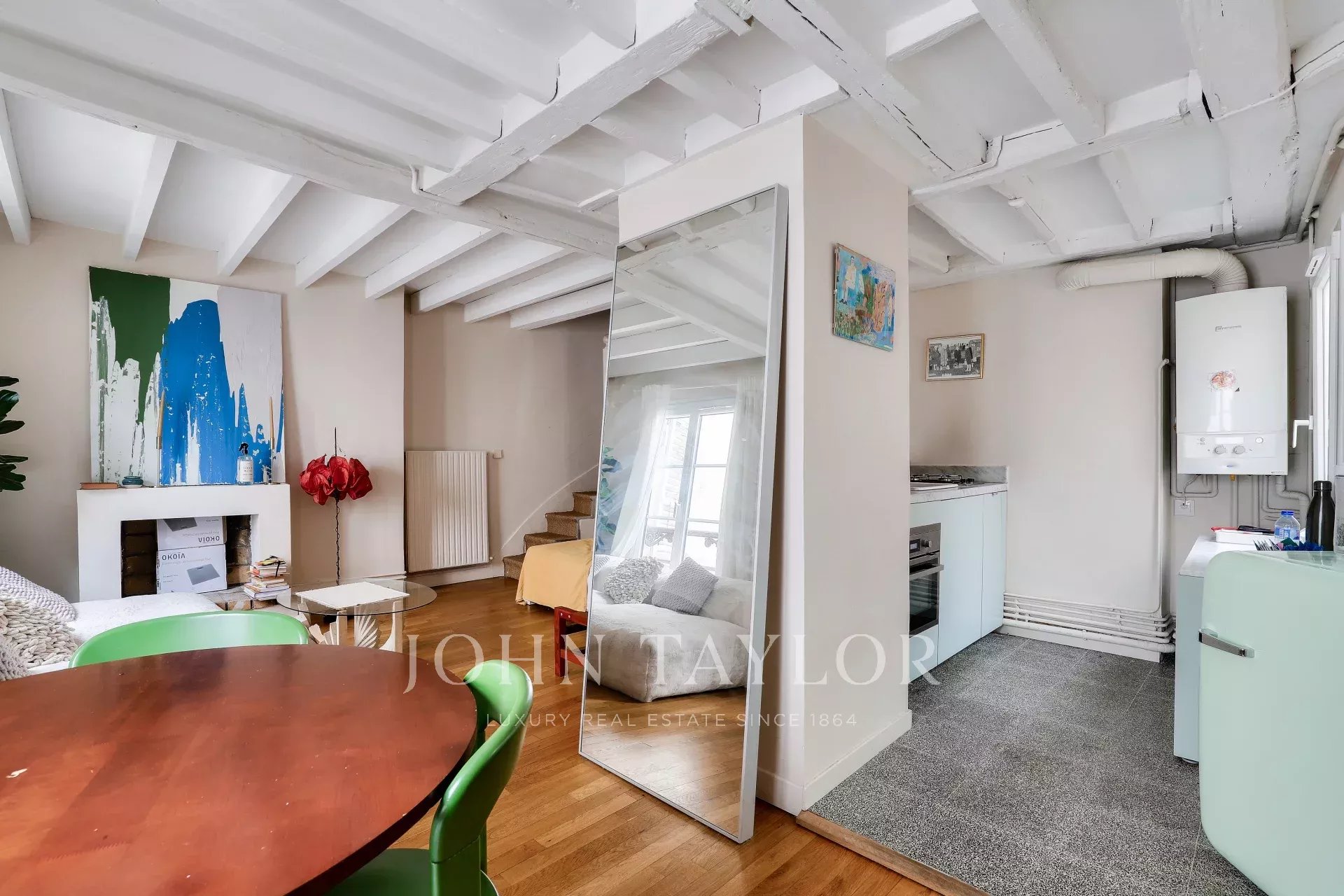 On the 4th floor by elevator of a Louis Philippe building, just a stone's throw from Place Franz Liszt and Gare du Nord station, this quaint duplex is composed as follows: