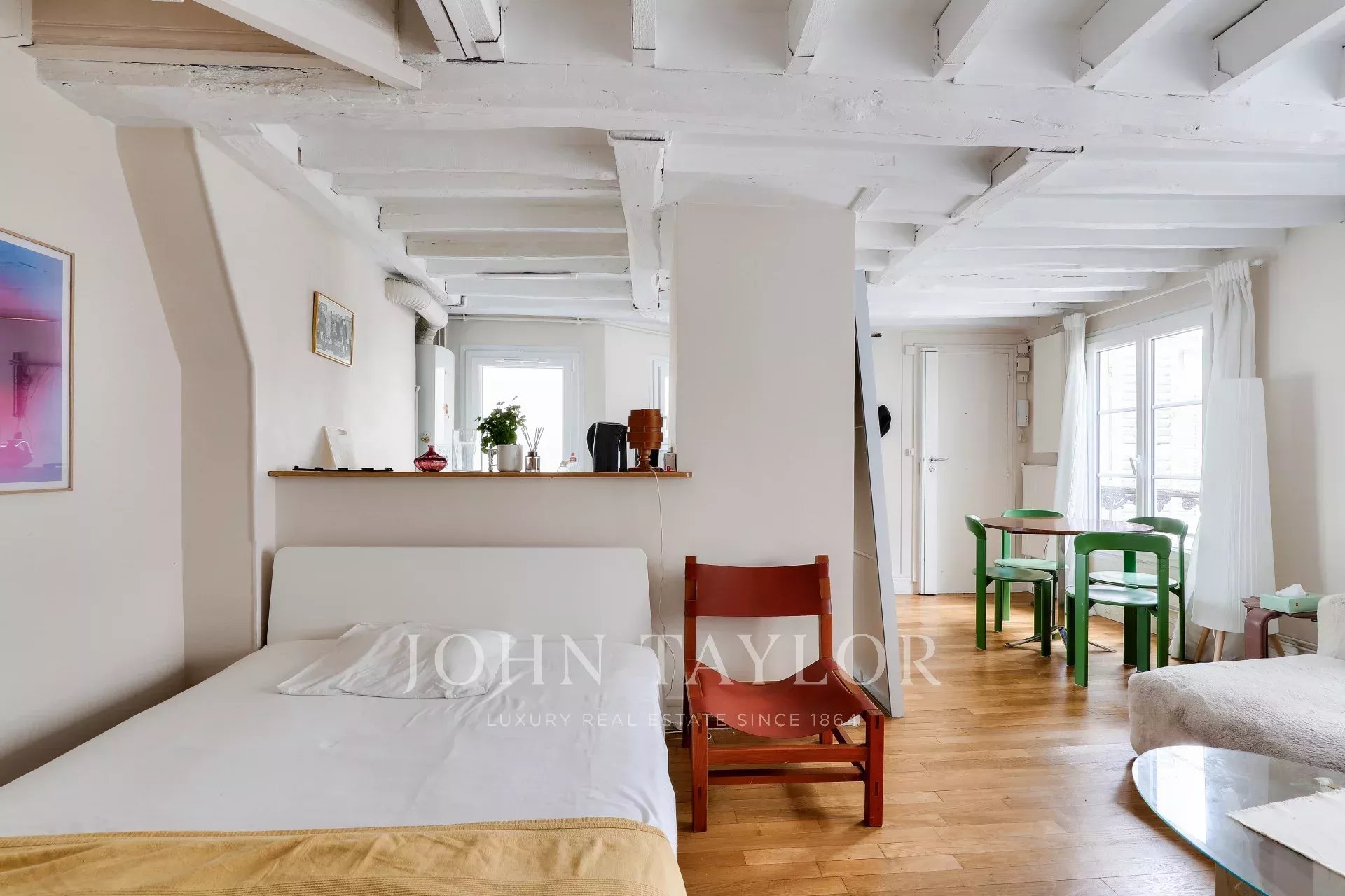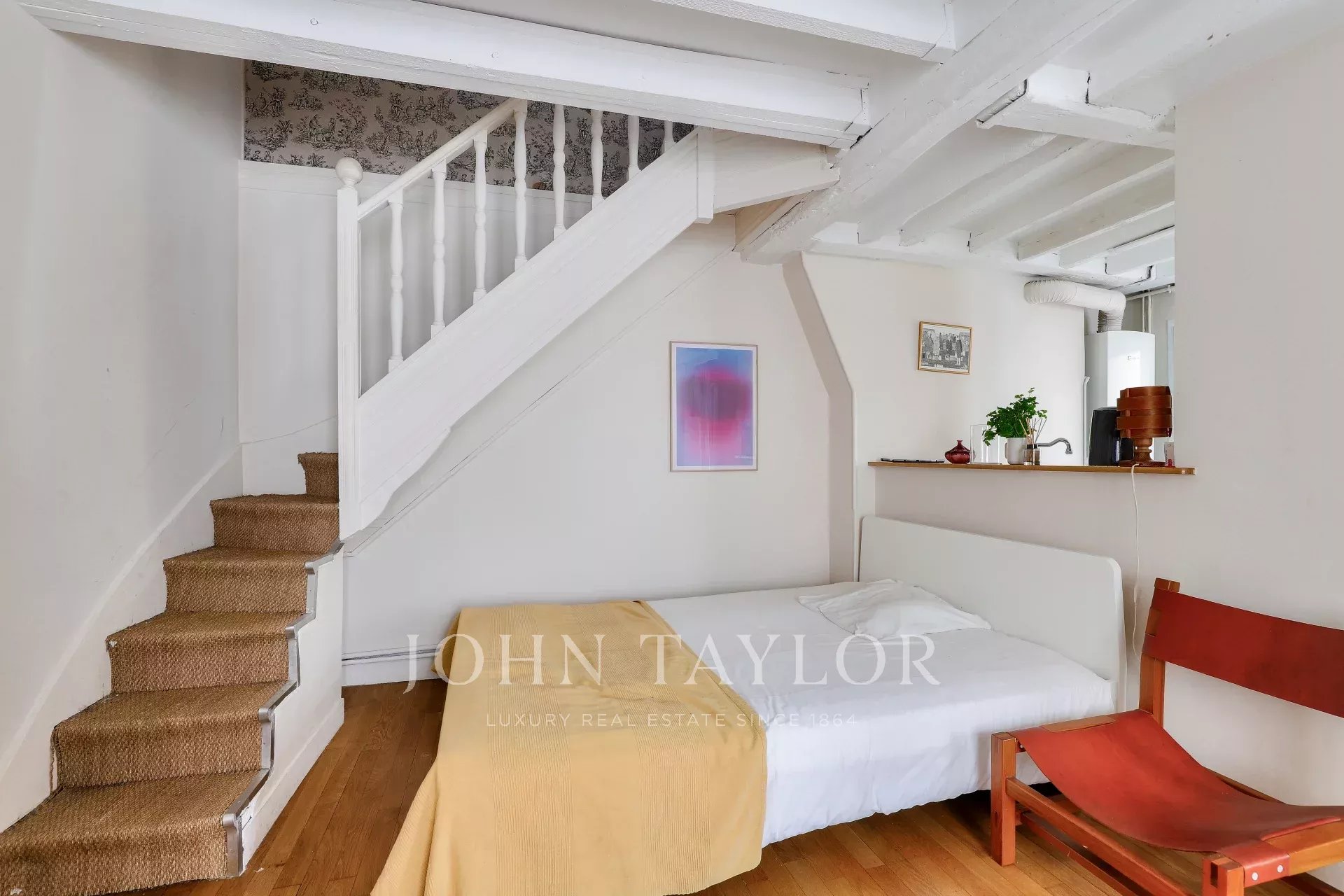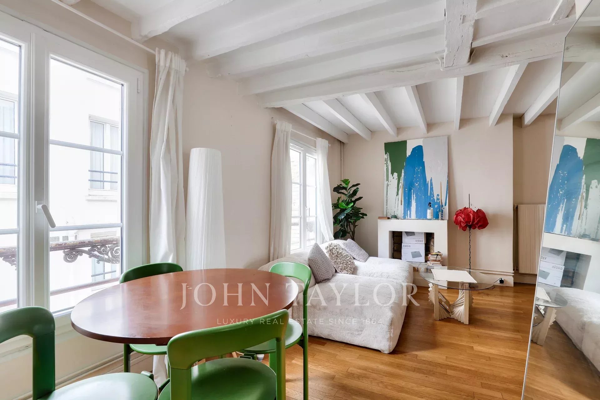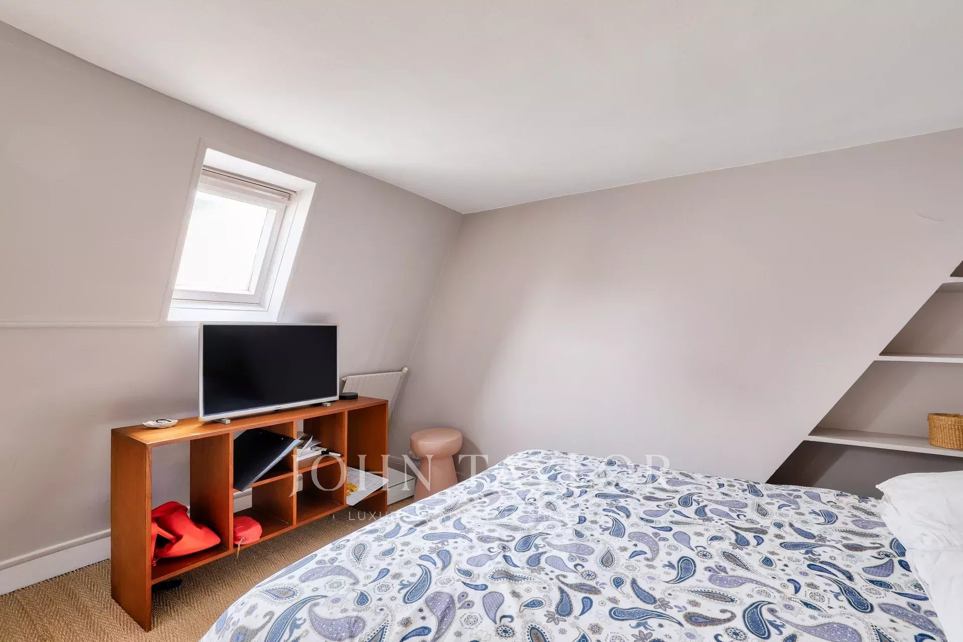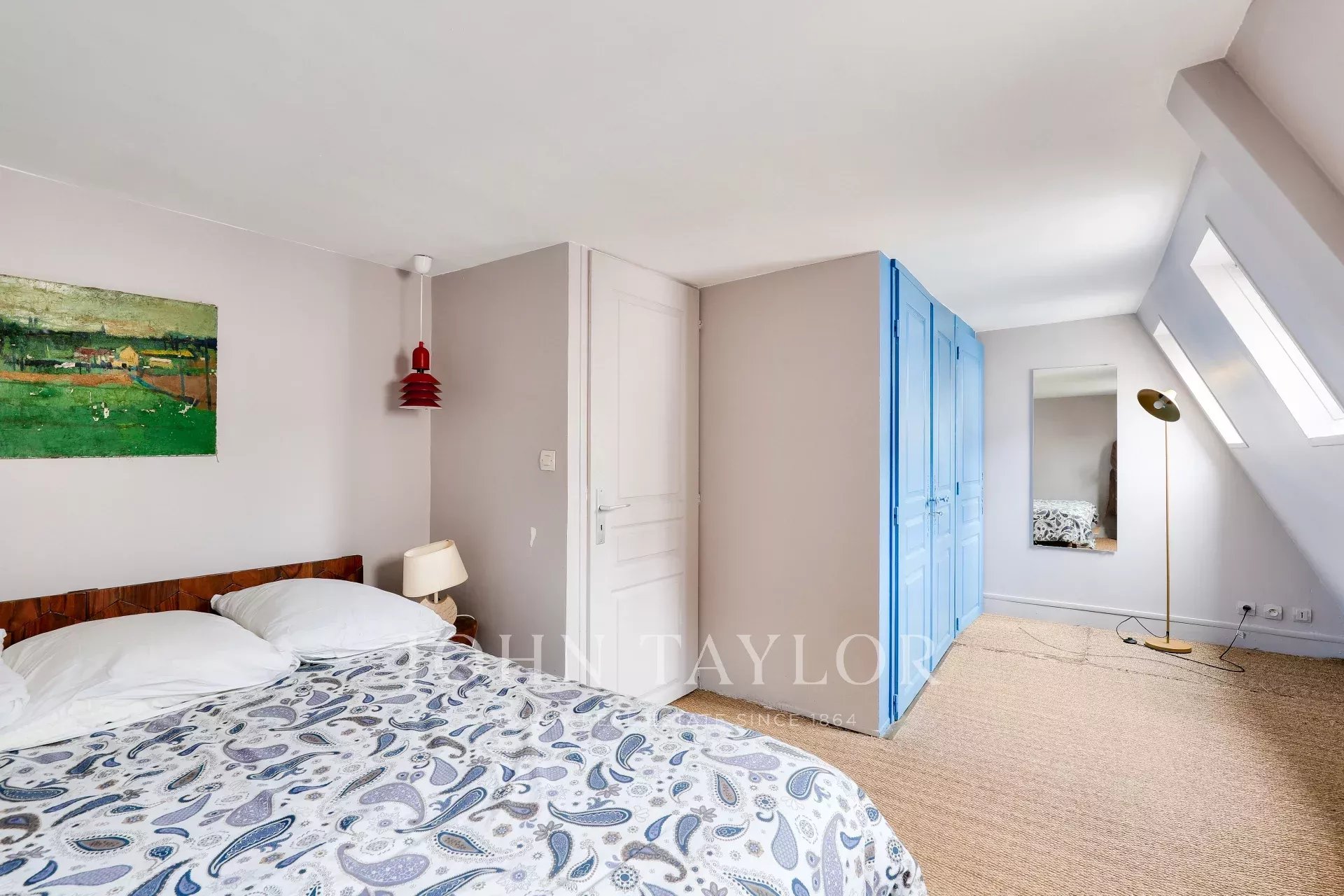On the 4th floor by elevator of a Louis Philippe building, just a stone's throw from Place Franz Liszt and Gare du Nord station, this quaint duplex is composed as follows:
