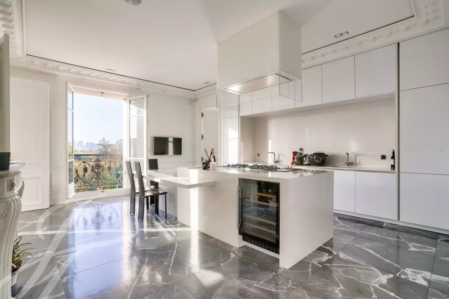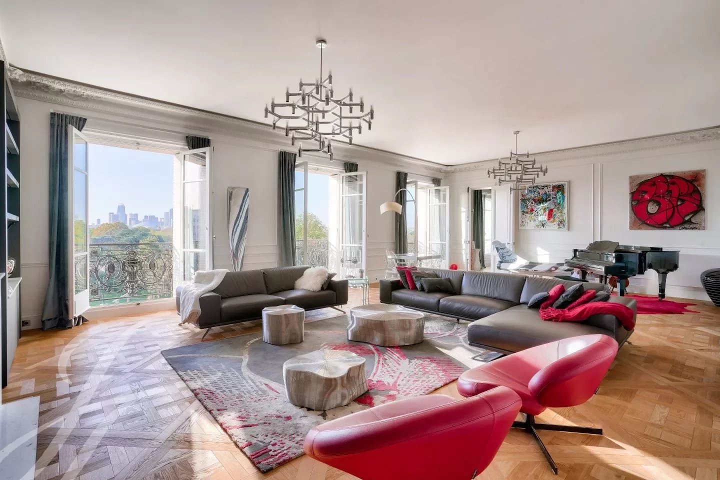 - Double living room providing an open view over the Bois de Boulogne, Louis Vuitton Foundation and La Défense.