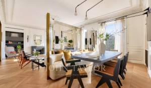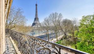 On the 3rd floor with elevator of a magnificent old stone building, refurbished 160.57 m² apartment with a balcony, enjoying outstanding views of the Seine, the Eiffel Tower and the Trocadéro Gardens.