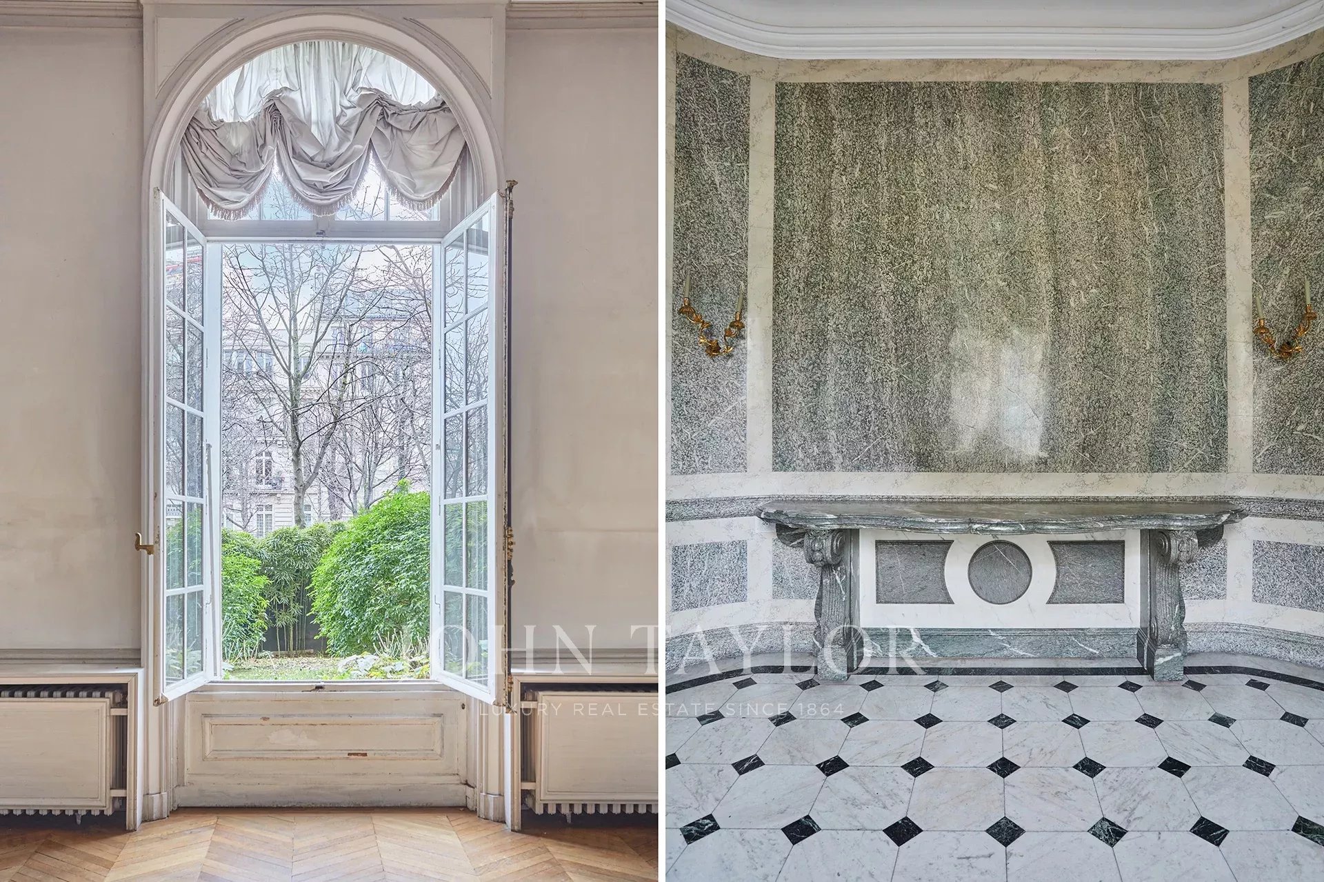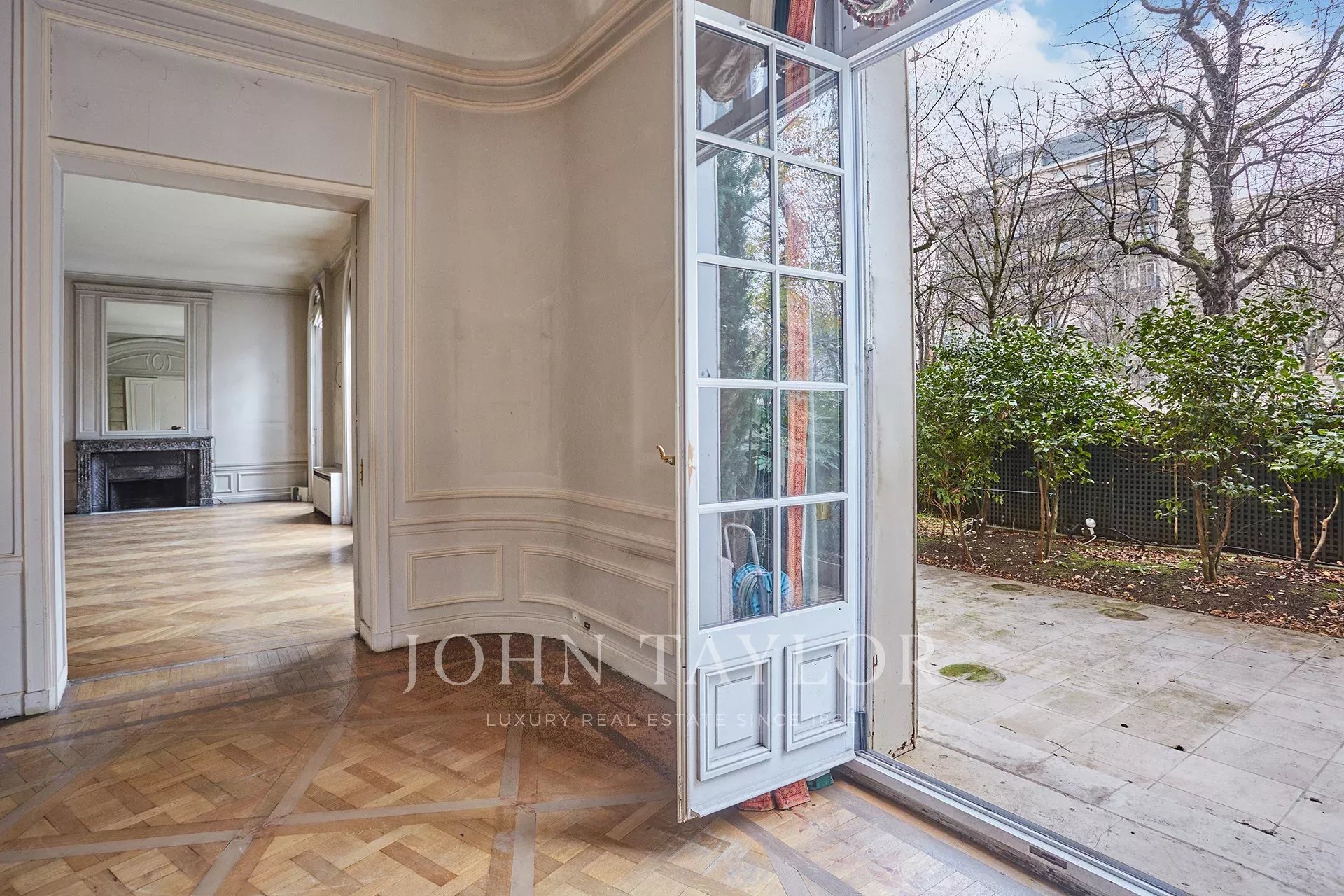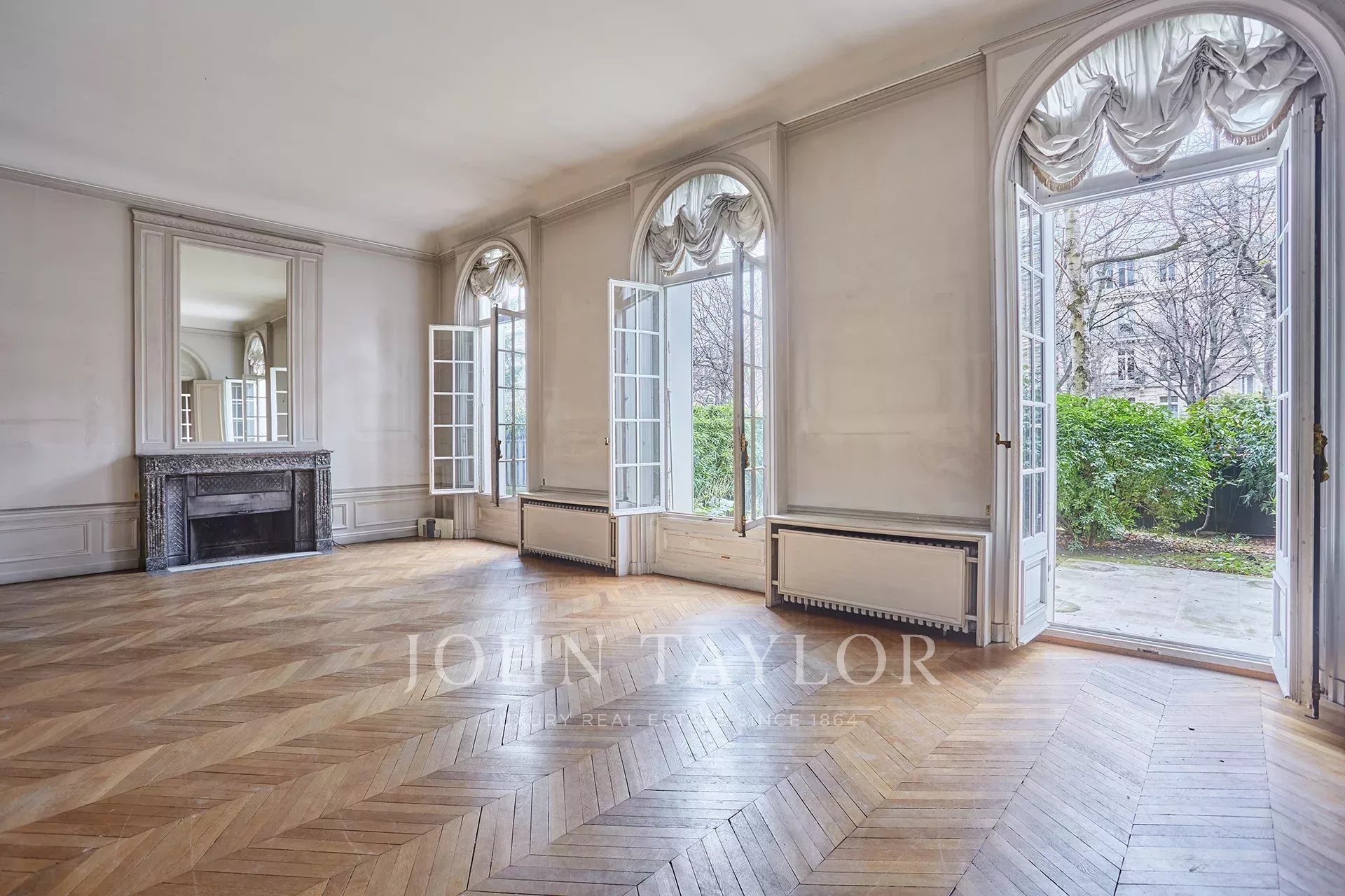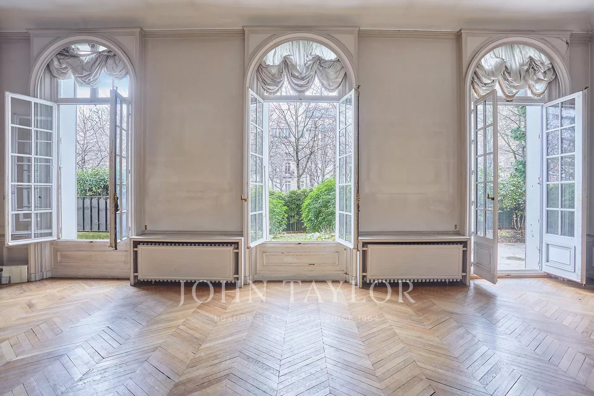Its prestigious location, expansive volumes, large private garden, and renovation potential make this apartment an extraordinarily rare offering on the market.