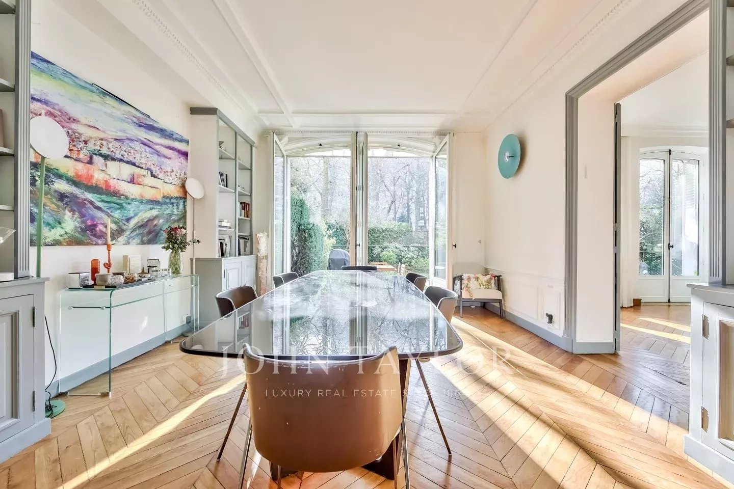 In the immediate vicinity of the Ranelagh gardens, in a secure stone building with a janitor. We offer you a reception and family apartment on garden level, facing south, with a surface area of 226.88m² (Carrez law).