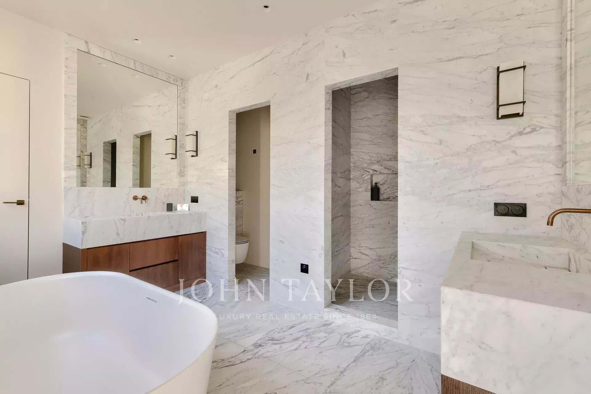 Situated on the top floor, the apartment is set around large, wrap-around balconies, and enjoys a remarkable amount of natural light throughout the day. Its elegant volumes and top-of-the-range finishes offer a refined living environment that is both contemporary and timeless.