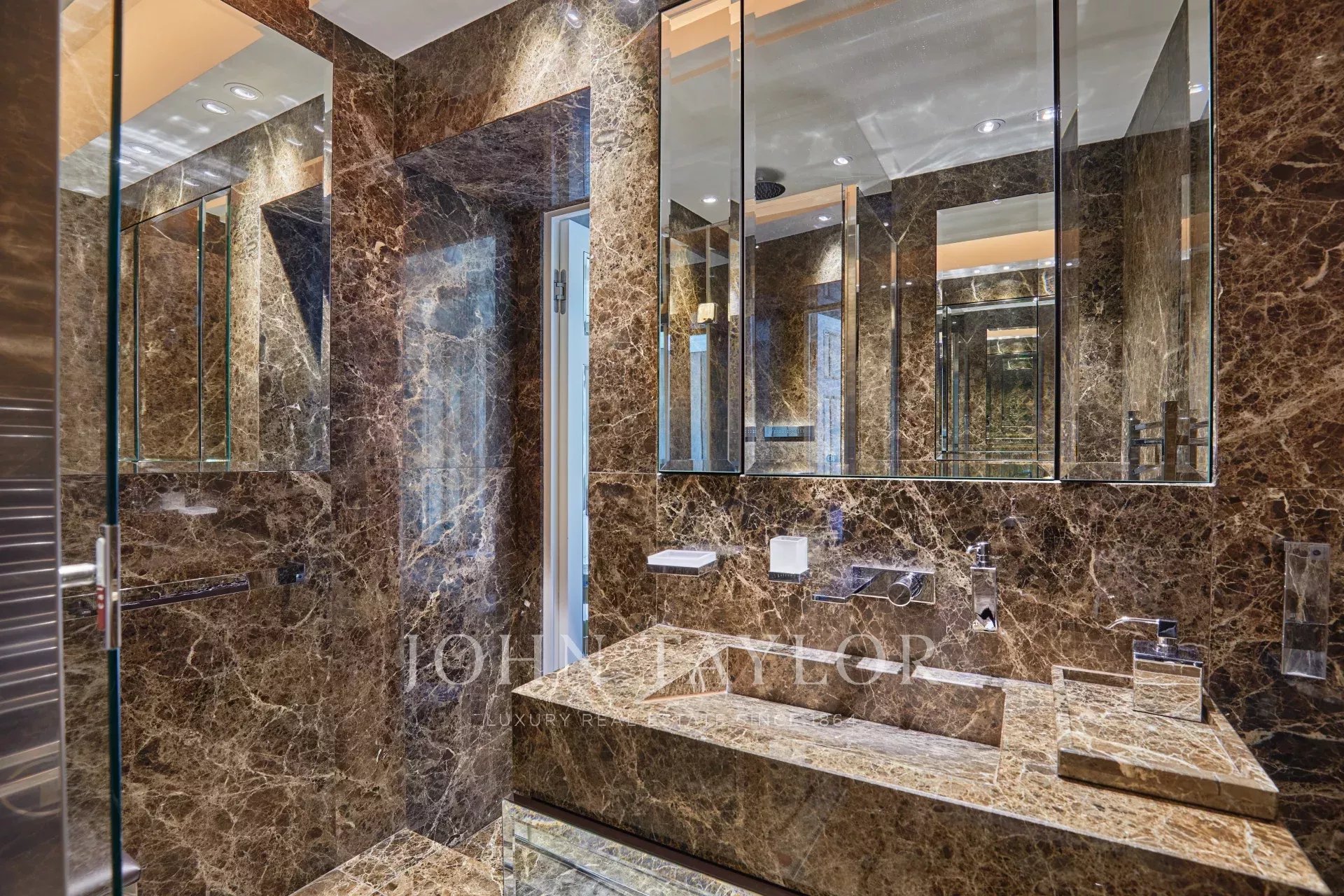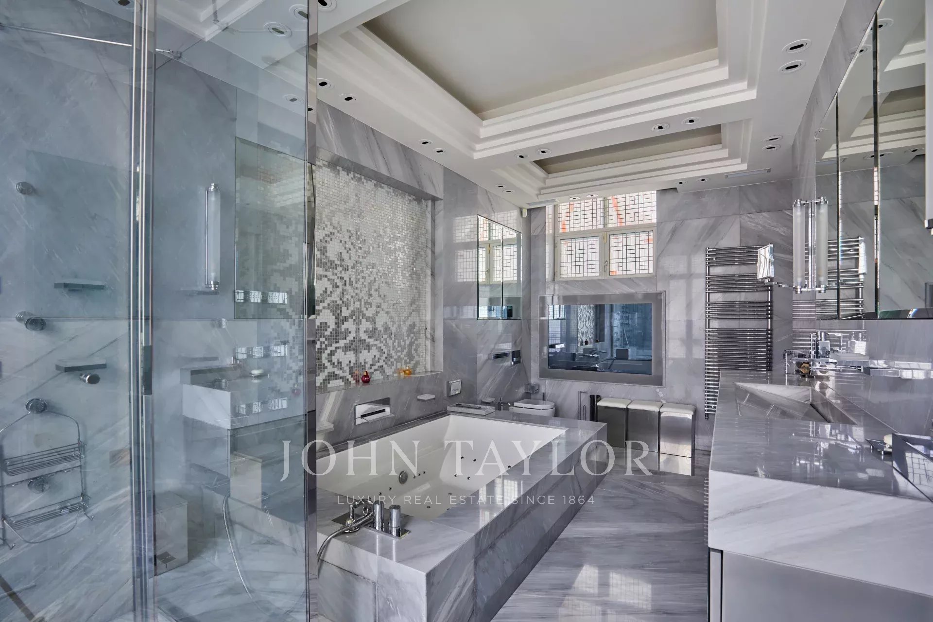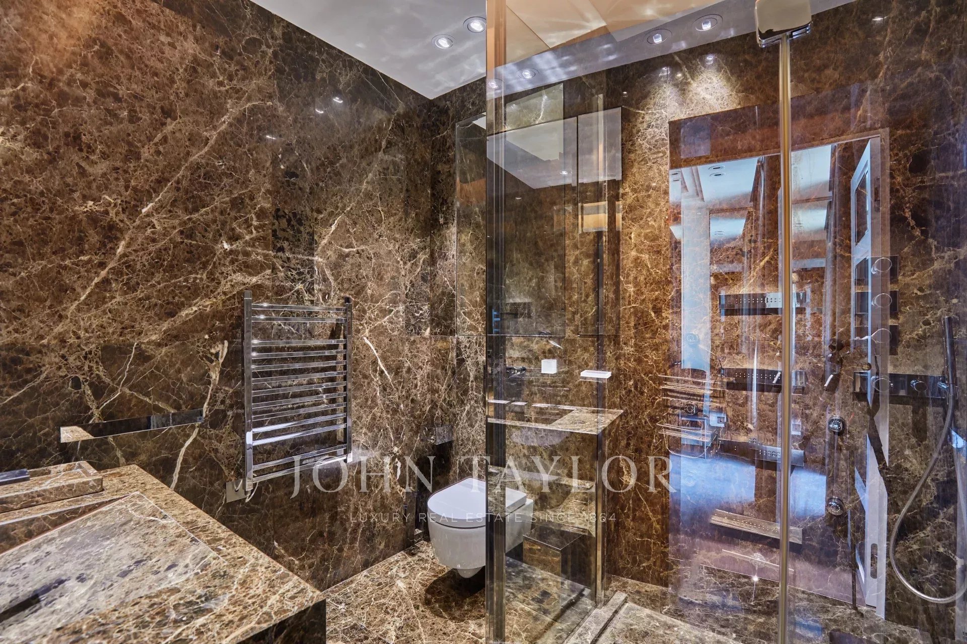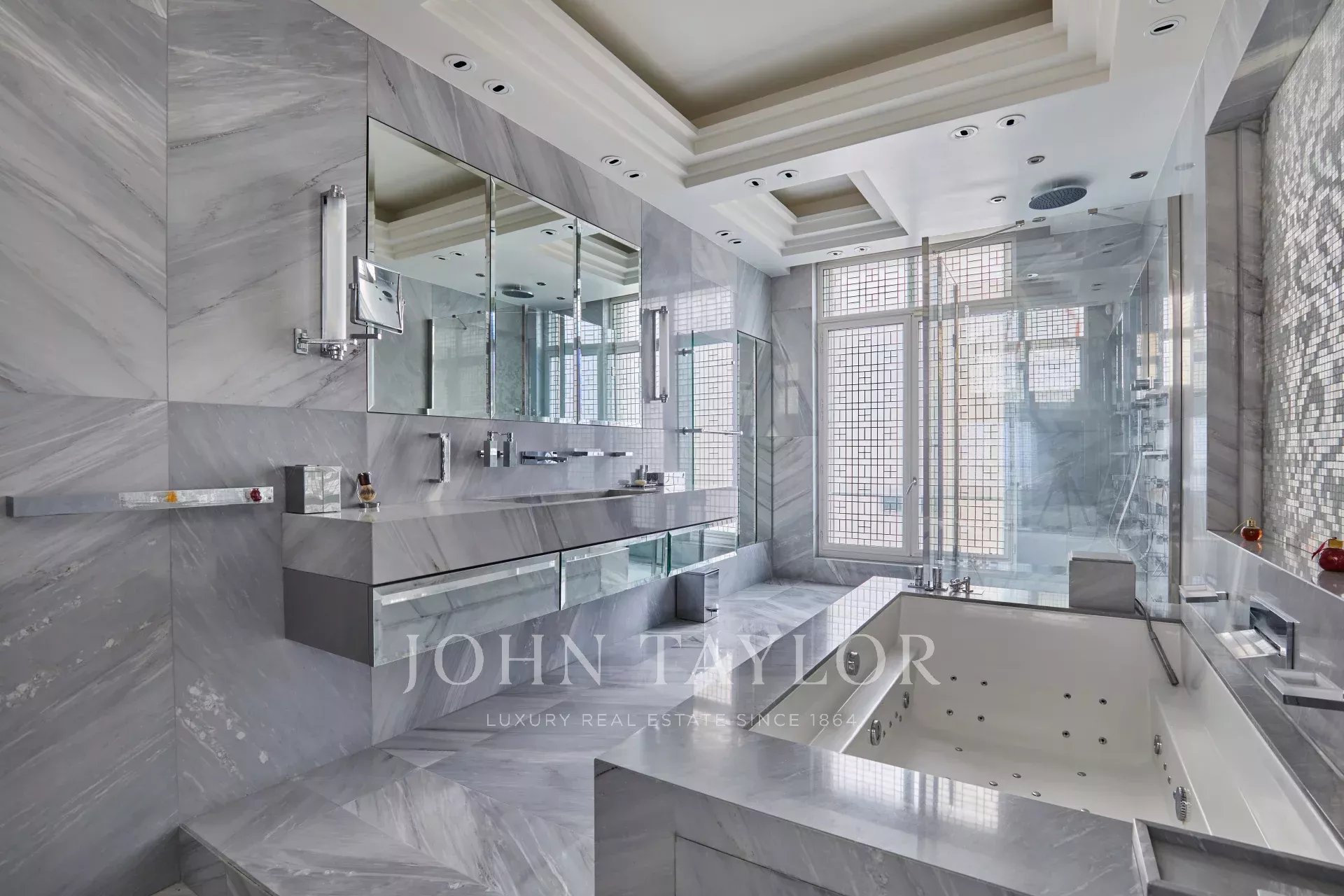 The living room, both suites, and the bathroom have built-in televisions, and each room is equipped with home automation to control all the curtains and lights in the apartment using iPads.