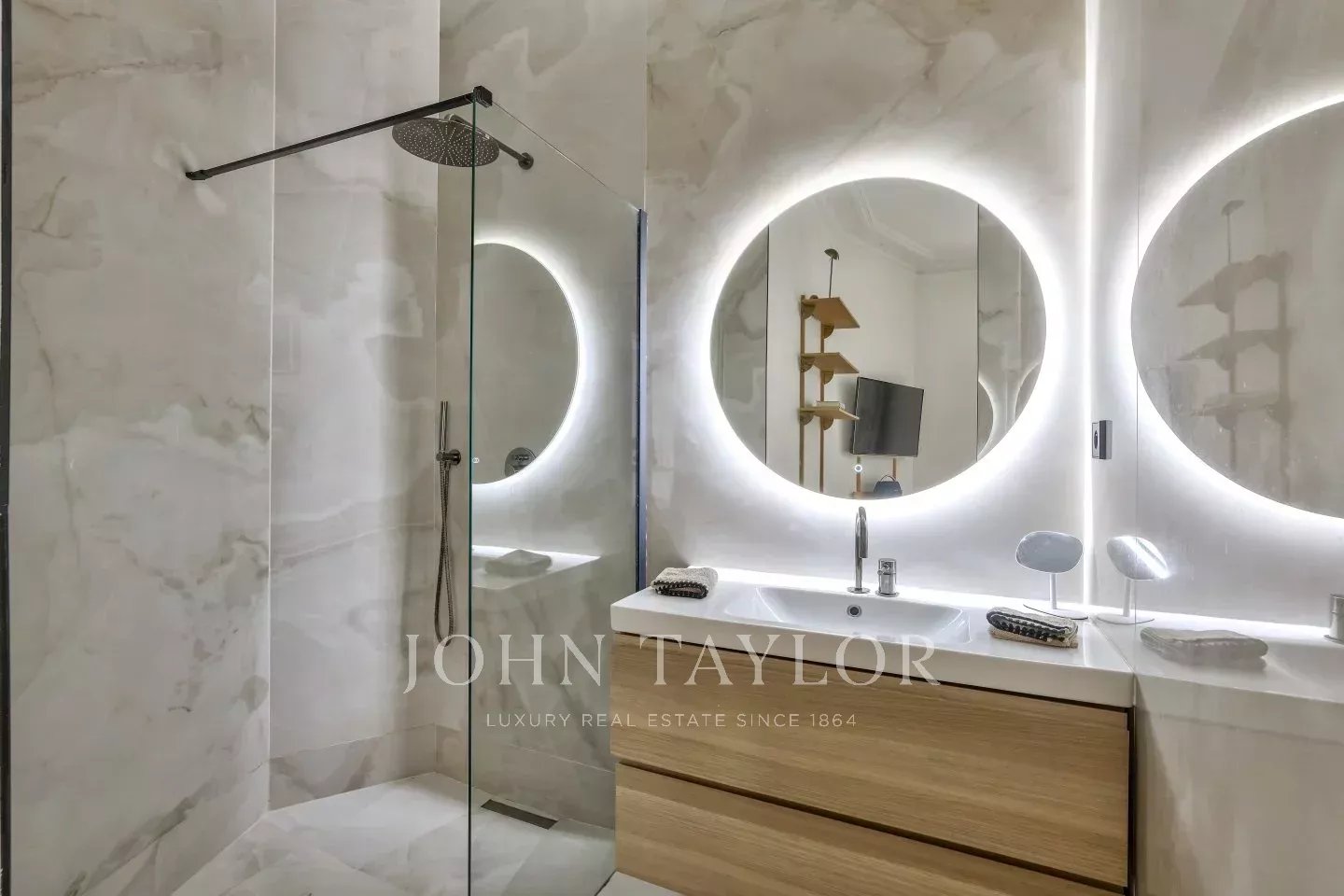 The apartment is in perfect condition, with an excellent layout and high ceilings. Quiet and bright, it has retained its original decorative features (parquet flooring, moldings, fireplaces and stained-glass windows).