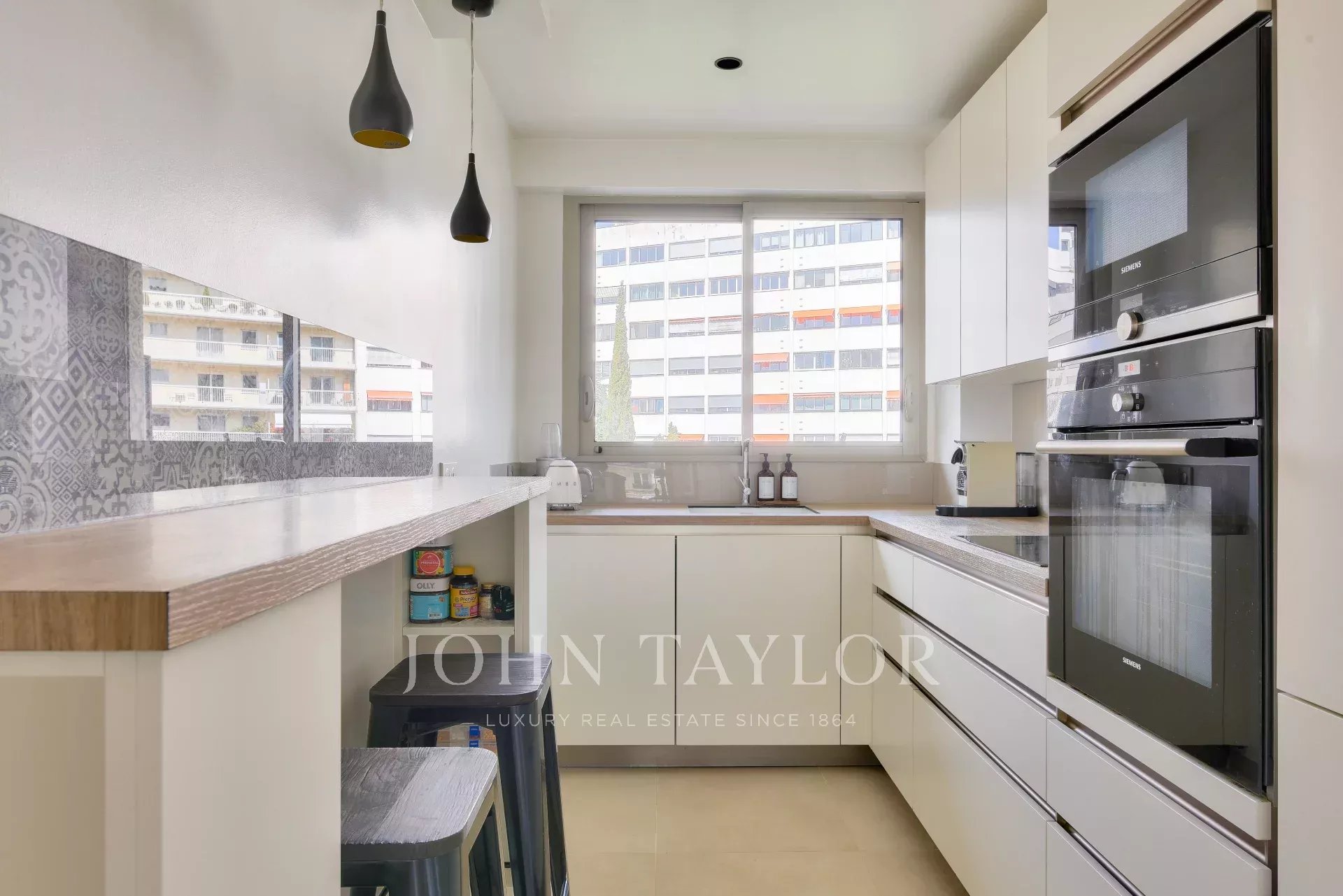 The apartment is traversing, with lovely unobstructed views, in a quiet environment. The property is in perfect condition, with quality fixtures and fittings. It enjoys sunny east and west exposures. Fitted terraces.