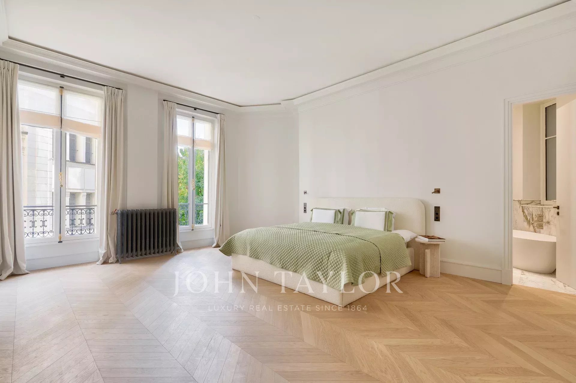 Place d'Iéna, opposite the Guimet Museum, and next to the Museum of Modern Art, on the 2nd floor of a period building, superb reception apartment with majestic volumes of 216 m² that has undergone a high-quality renovation. Offering large reception rooms and three bedroom suites, including two very large suites, it has a large balcony. Sold furnished, ready to move in, it includes: