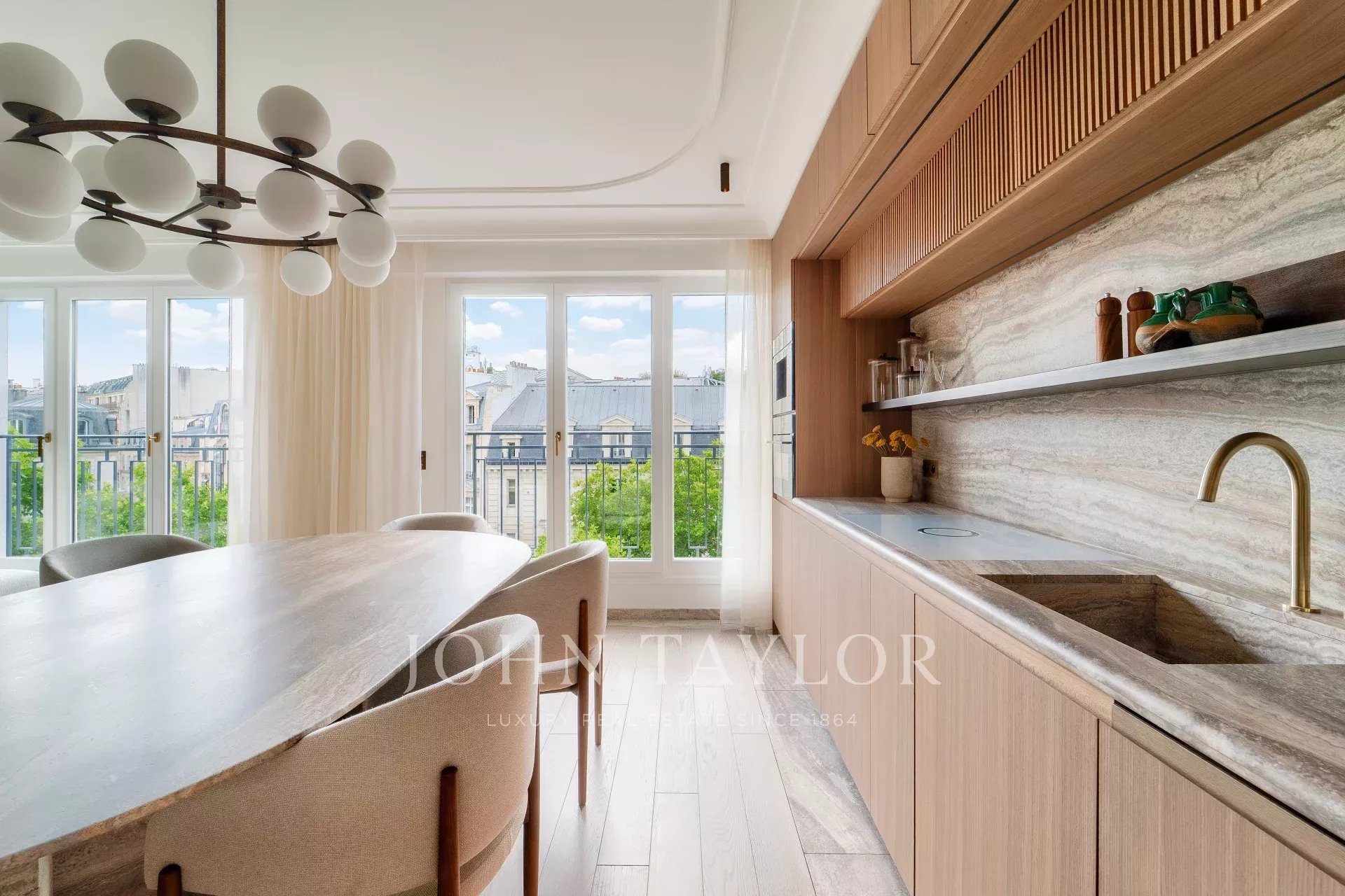 Just steps from the prestigious Place de l’Étoile, this luxurious apartment is situated on a high floor of a refined, well-maintained building. Recently renovated throughout, it features high-end materials and meticulous finishes.