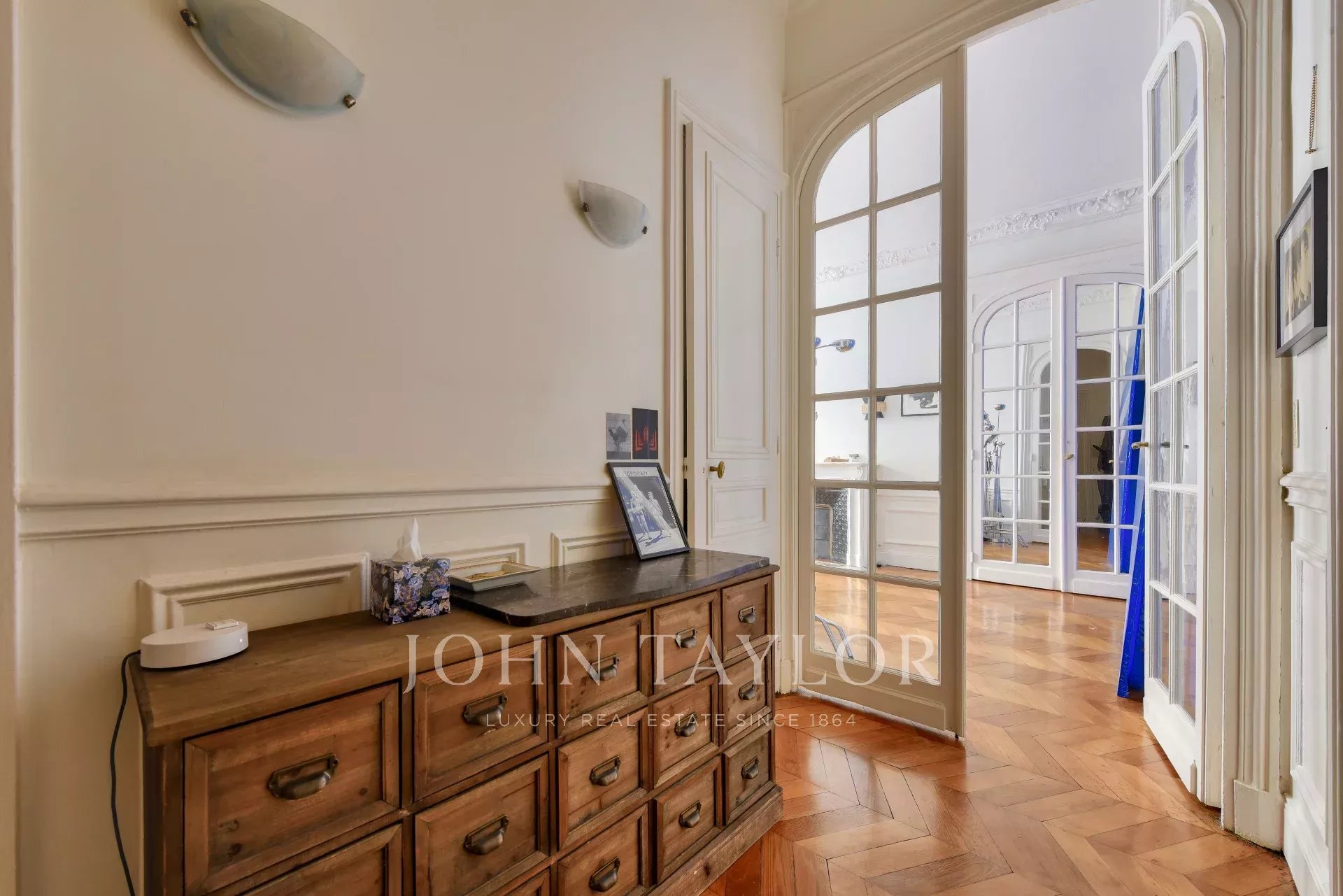 The apartment is very quiet and bright, with beautiful volumes and ceiling heights of 3.60m.