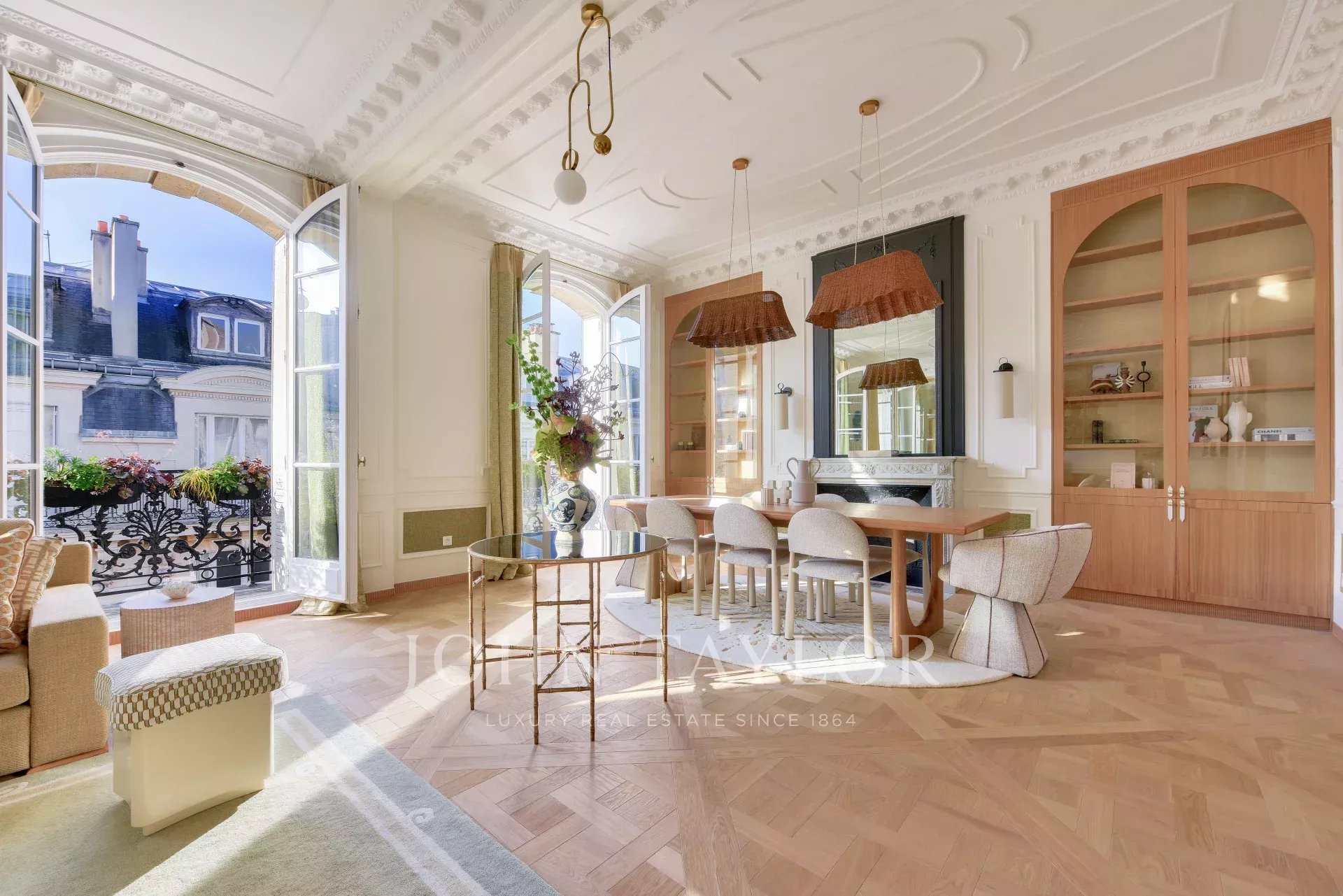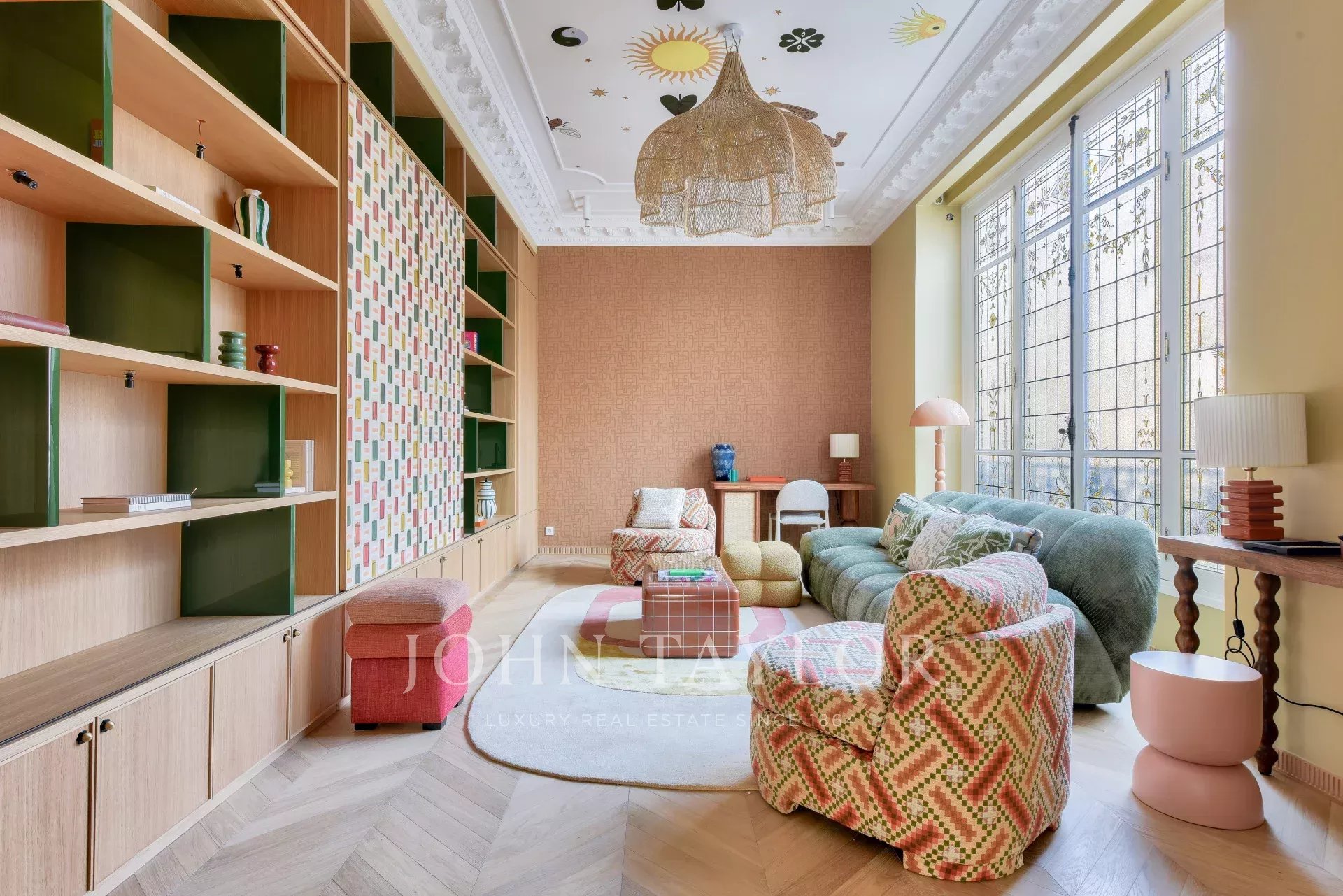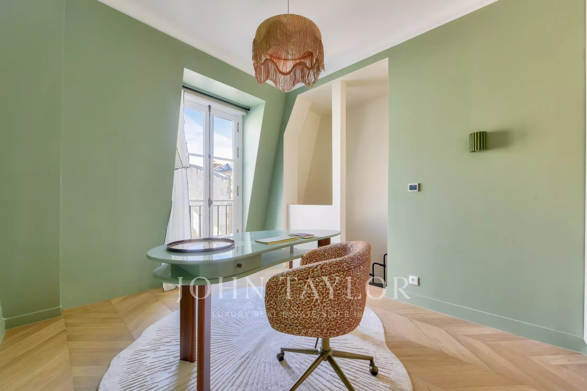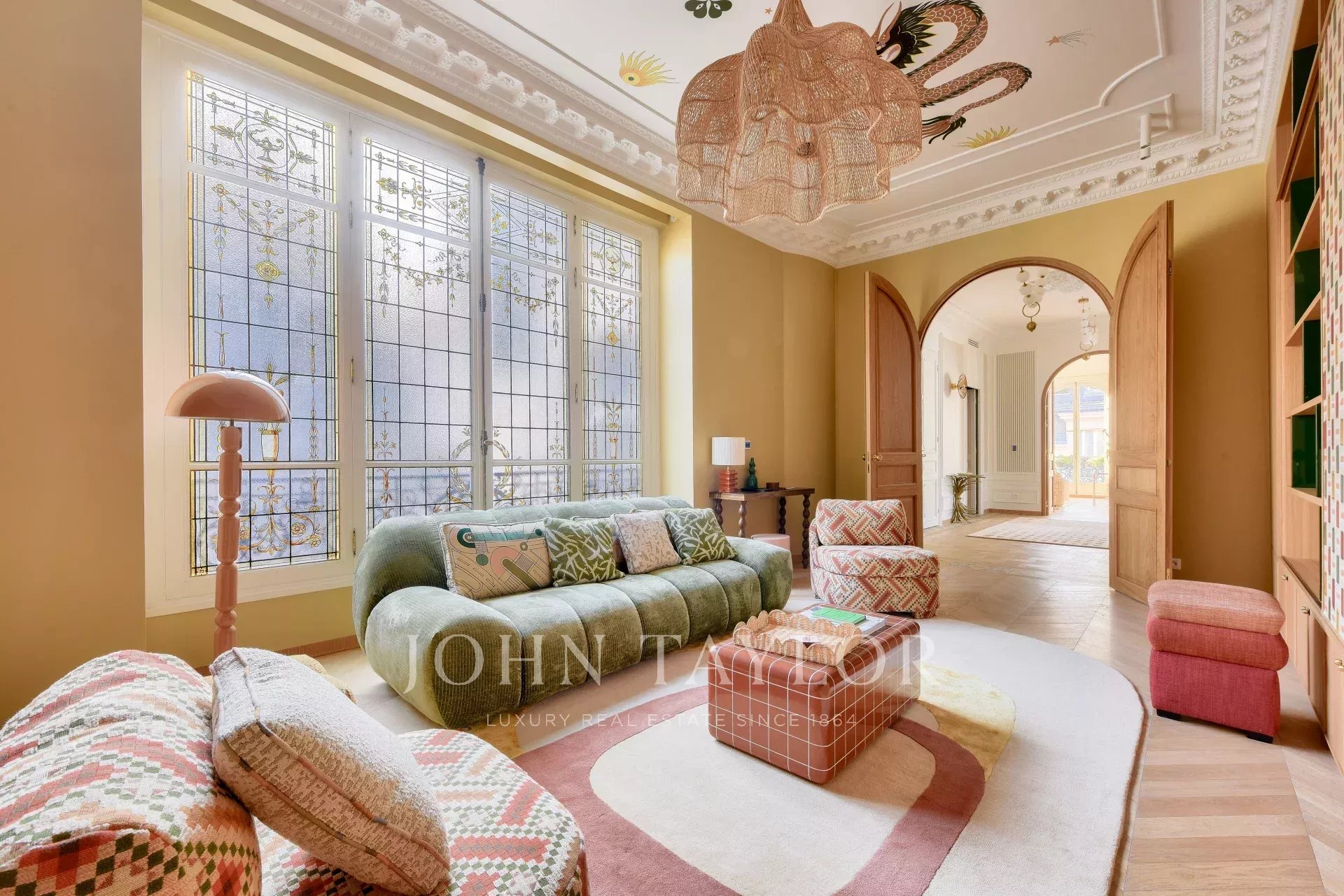 This property harmoniously combines modernity and old-world charm: reversible air conditioning, underfloor heating, centralized home automation and double-glazing blend perfectly with carefully preserved period features such as traditional parquet flooring and 19th-century stained-glass windows.