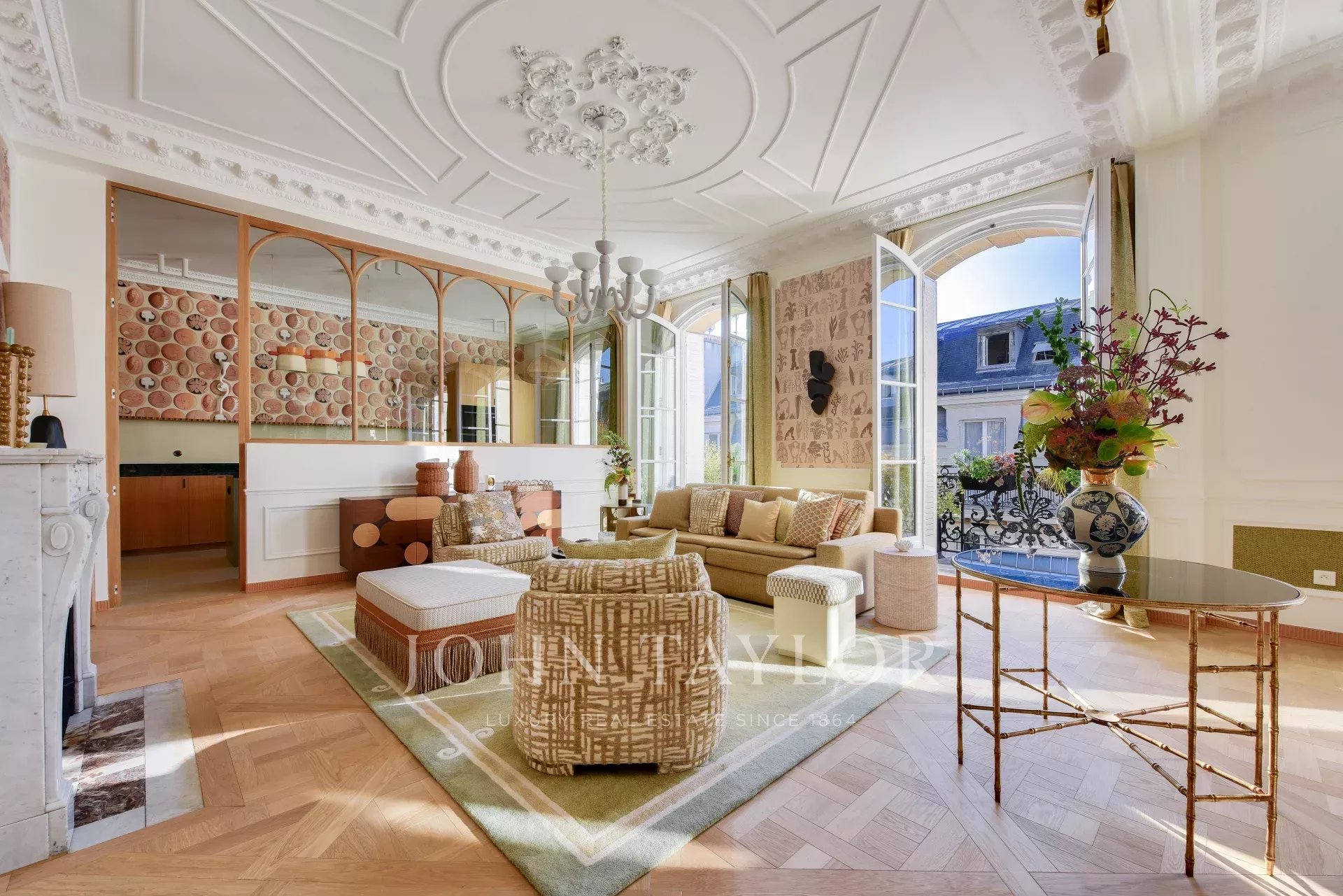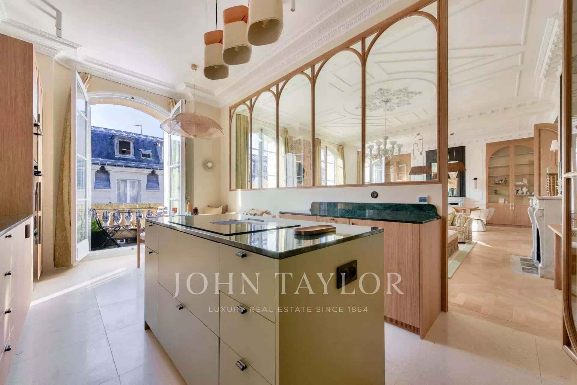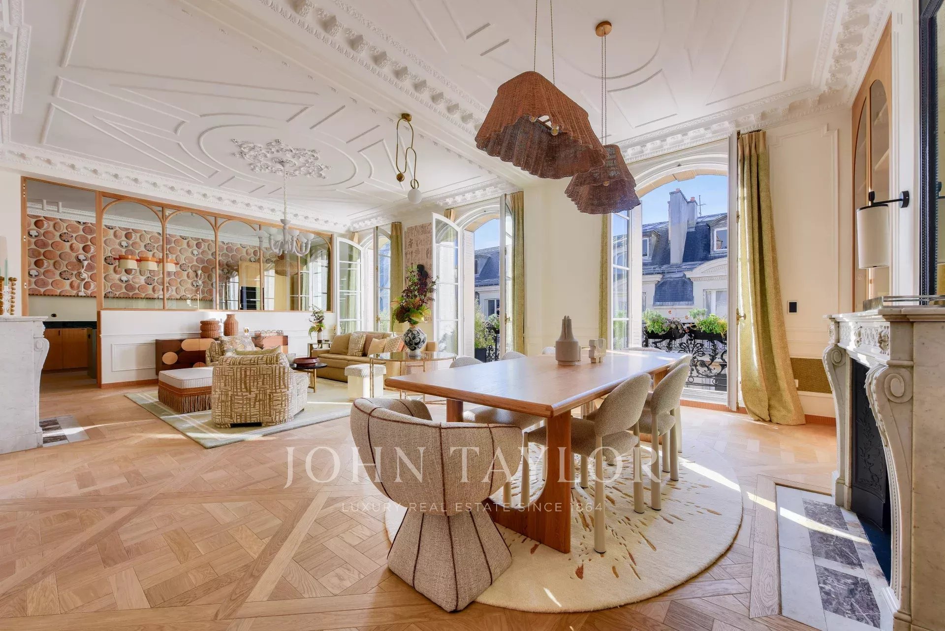 This property harmoniously combines modernity and old-world charm: reversible air conditioning, underfloor heating, centralized home automation and double-glazing blend perfectly with carefully preserved period features such as traditional parquet flooring and 19th-century stained-glass windows.