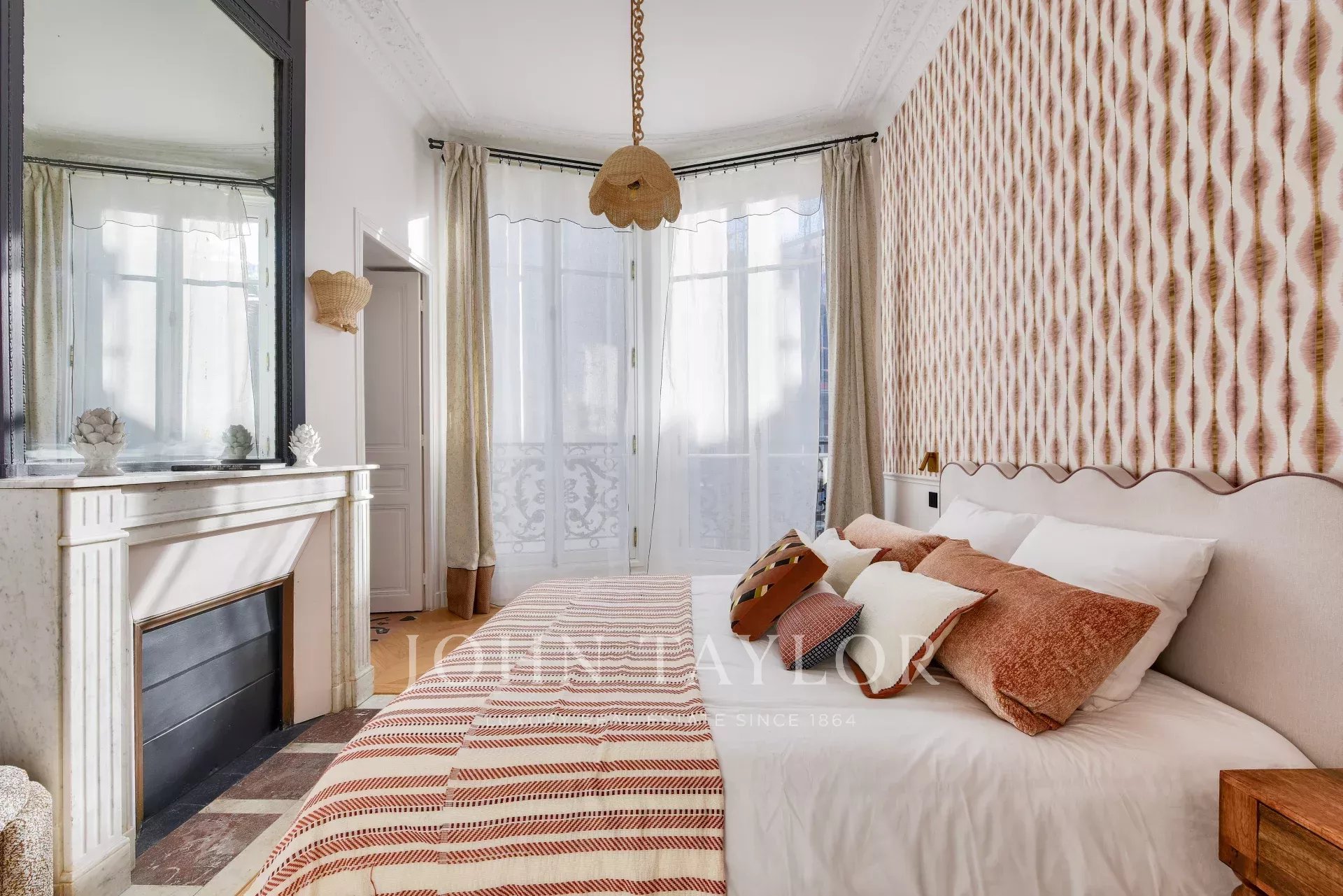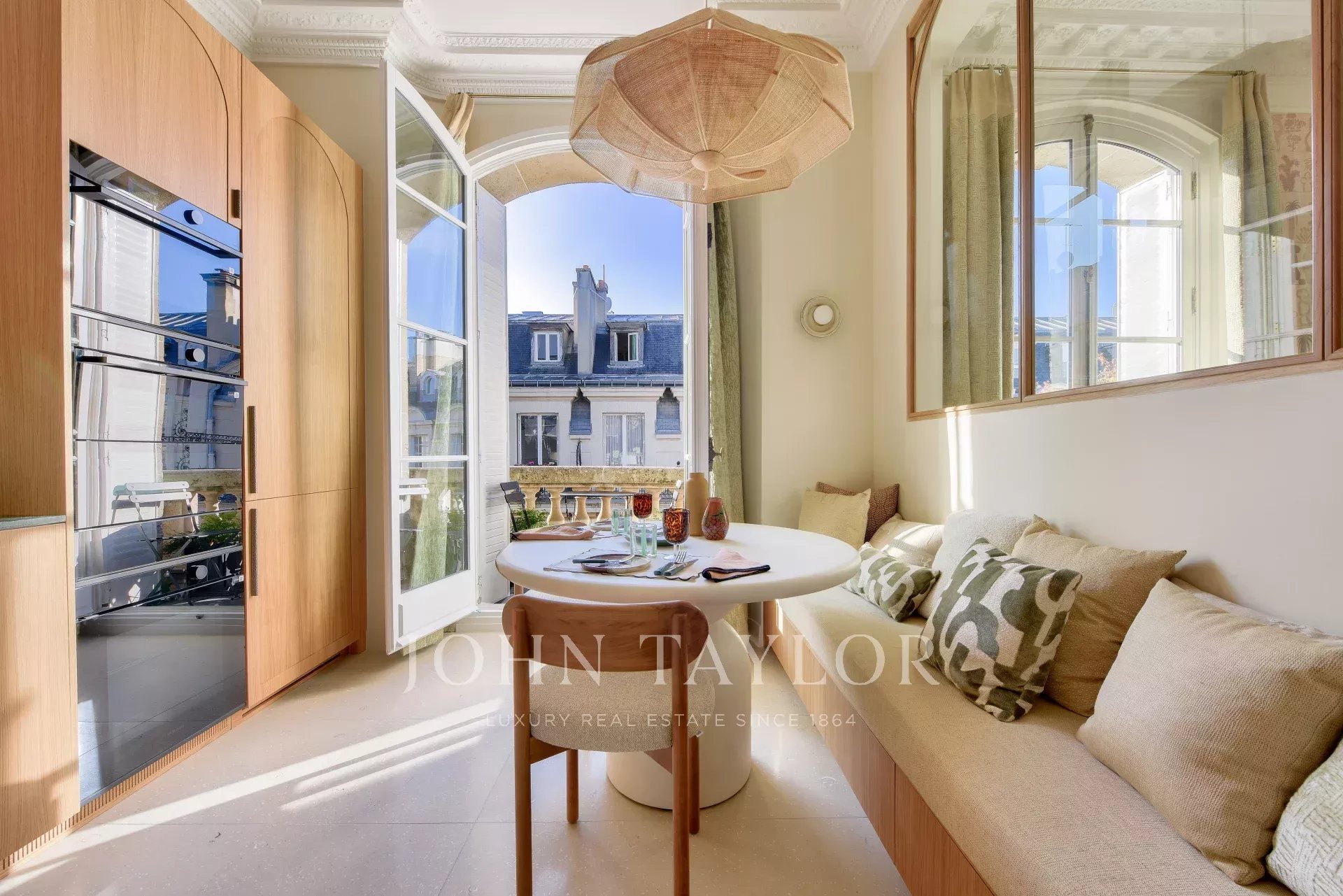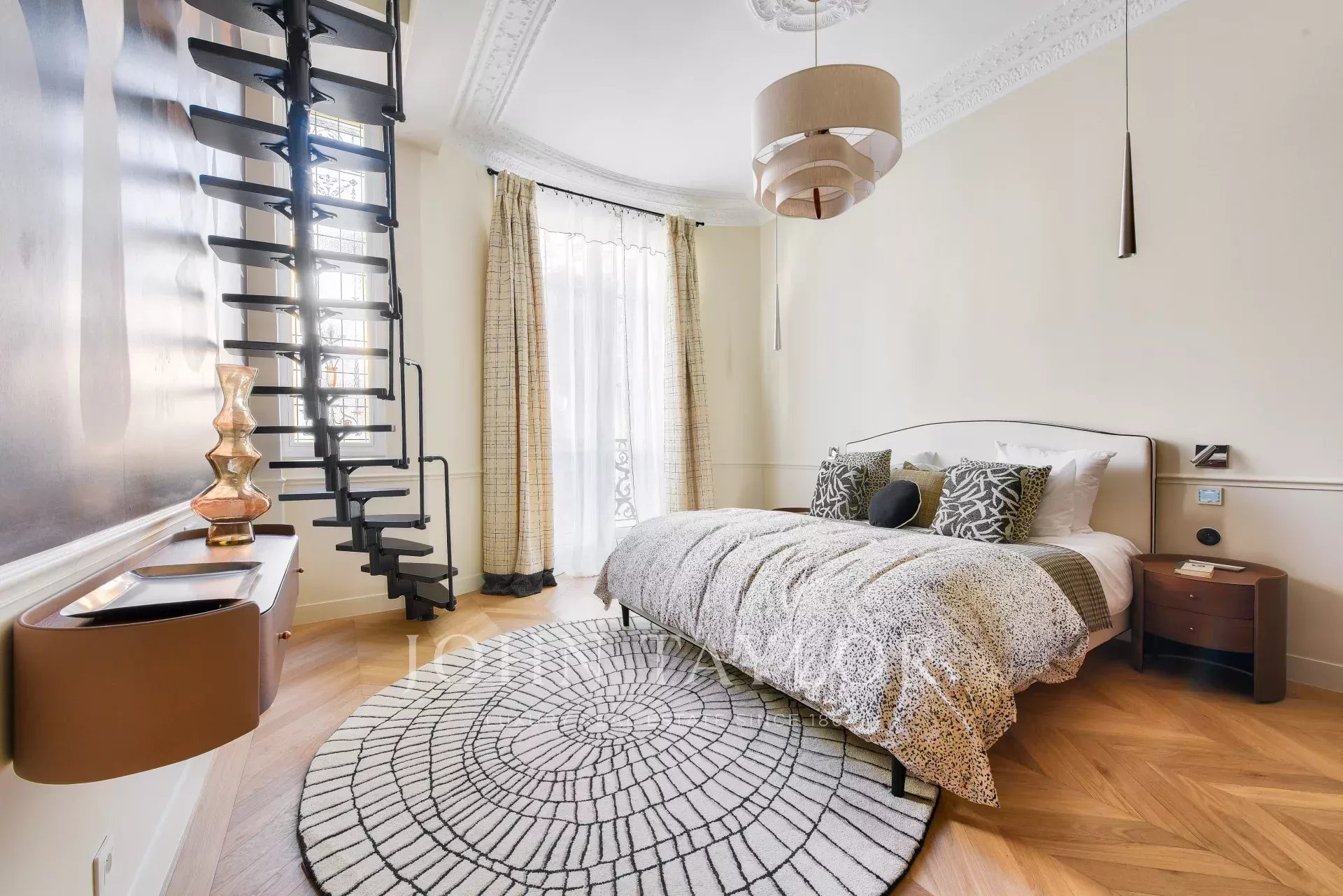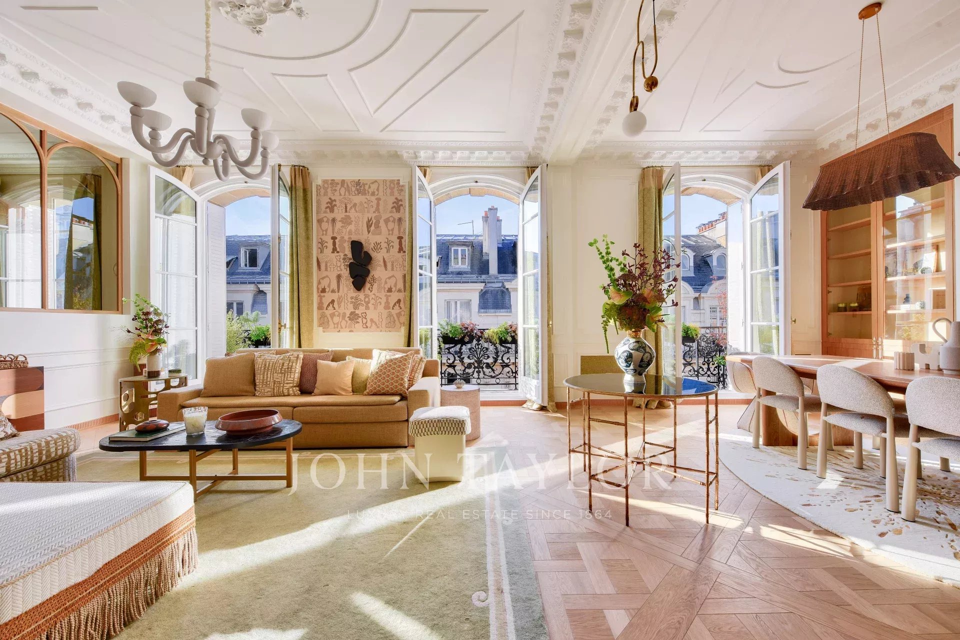 This property harmoniously combines modernity and old-world charm: reversible air conditioning, underfloor heating, centralized home automation and double-glazing blend perfectly with carefully preserved period features such as traditional parquet flooring and 19th-century stained-glass windows.