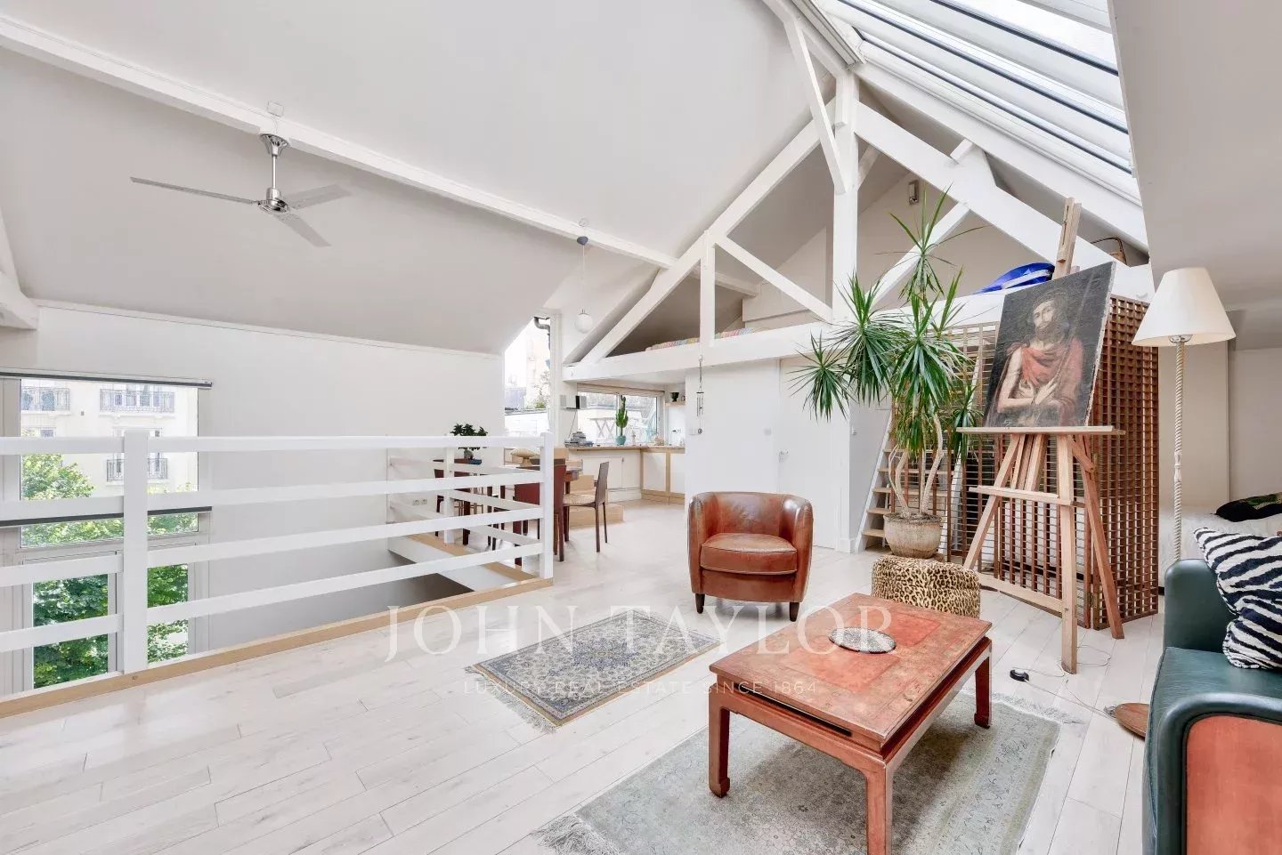 In a private mansion with refined communal areas, we offer you a 2-level artist's studio on the second and top floor, with 136 m² of floor space, 121 m² (loi carrez) and 33 m² of ground-level terrace.