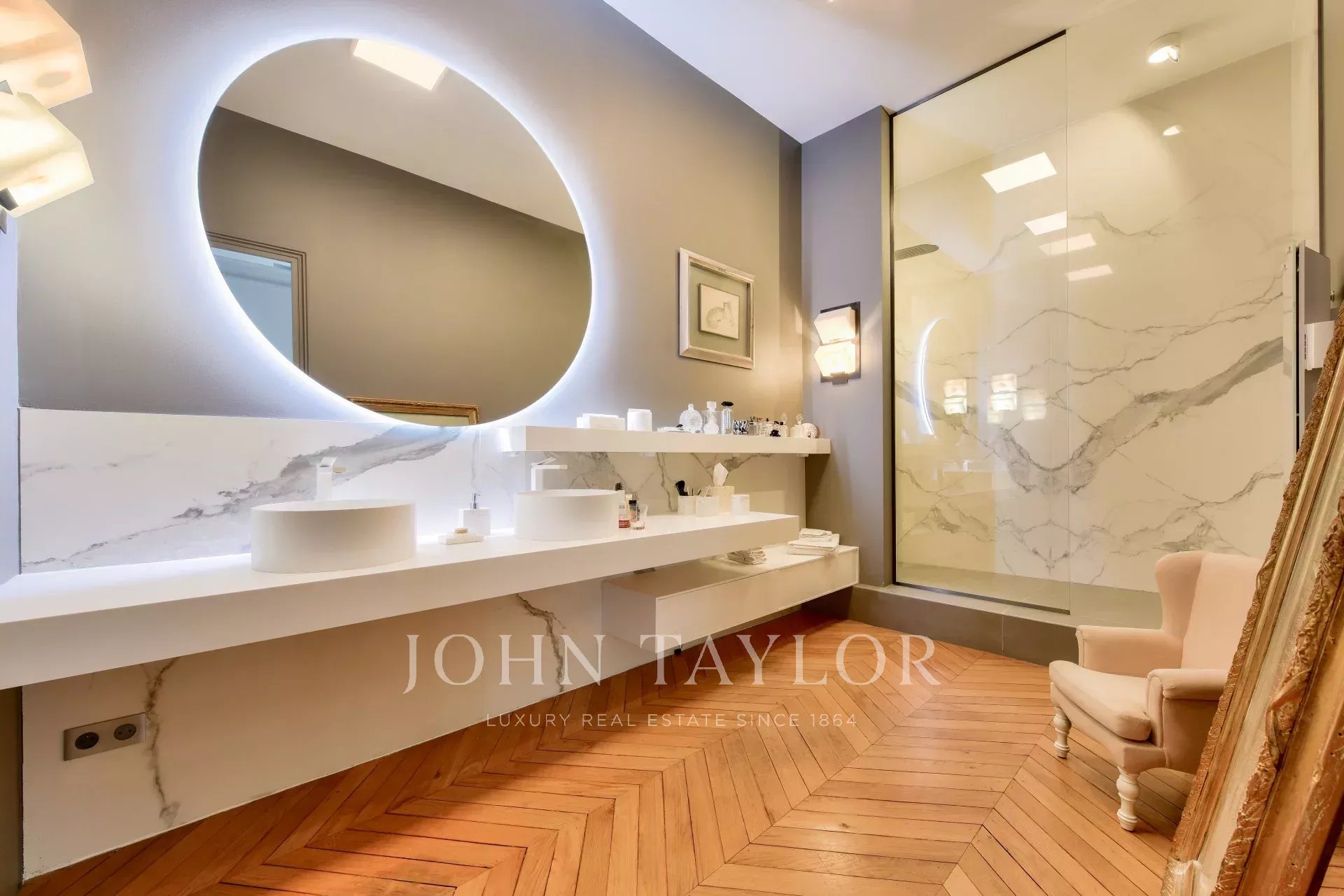 - Three bedrooms, including two suites with dressing rooms and bathrooms with toilets,