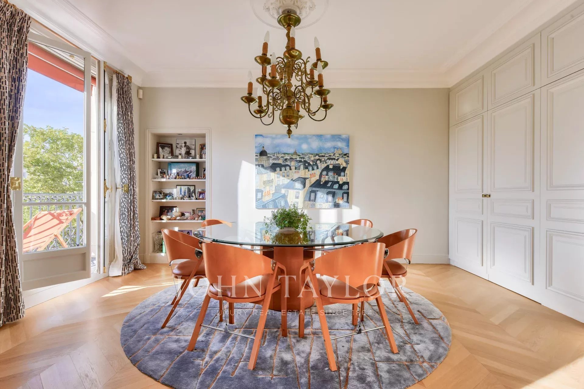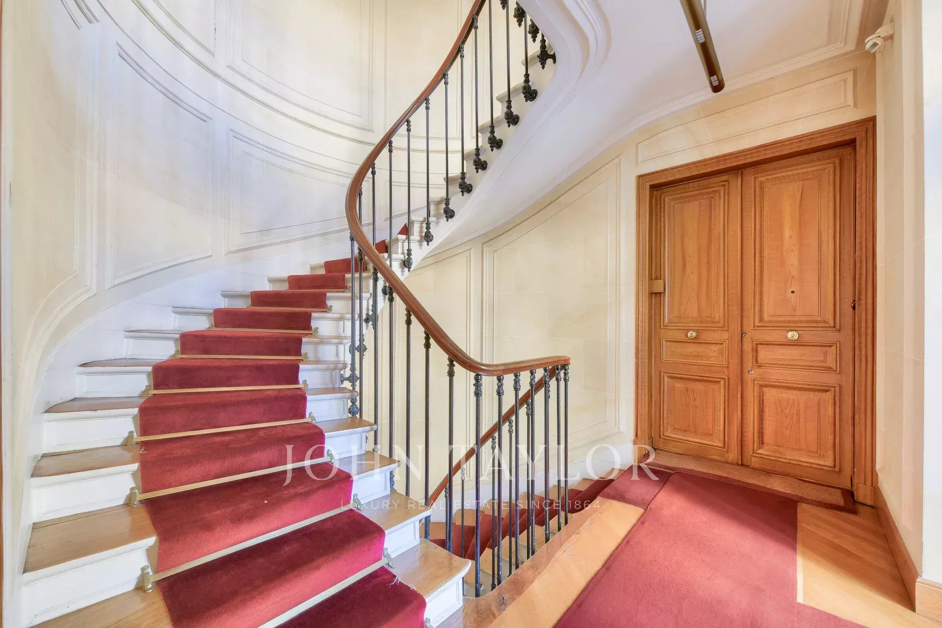 Place Victor Hugo, south-west facing, four bedroom apartment in perfect condition with a very practical layout and a continuous balcony. On the fourth floor of a high-quality stone building, above the trees with a total surface area of 153,42 m², it comprises: