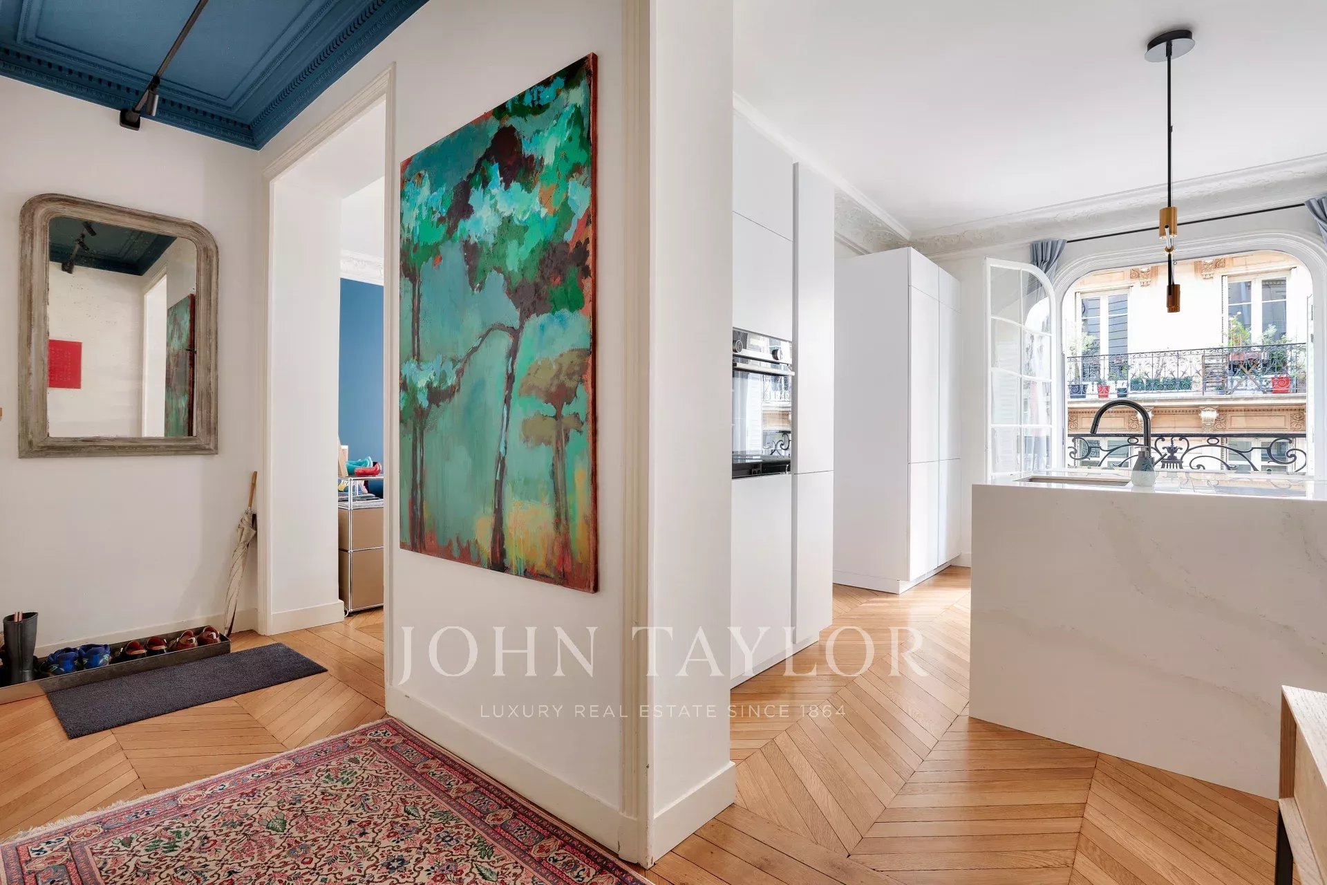 Just a few steps from the Jardin du Ranelagh, on the second floor with elevator of an elegant 1902 freestone building, this superb 77.39 m² apartment has been entirely renovated by an architect.