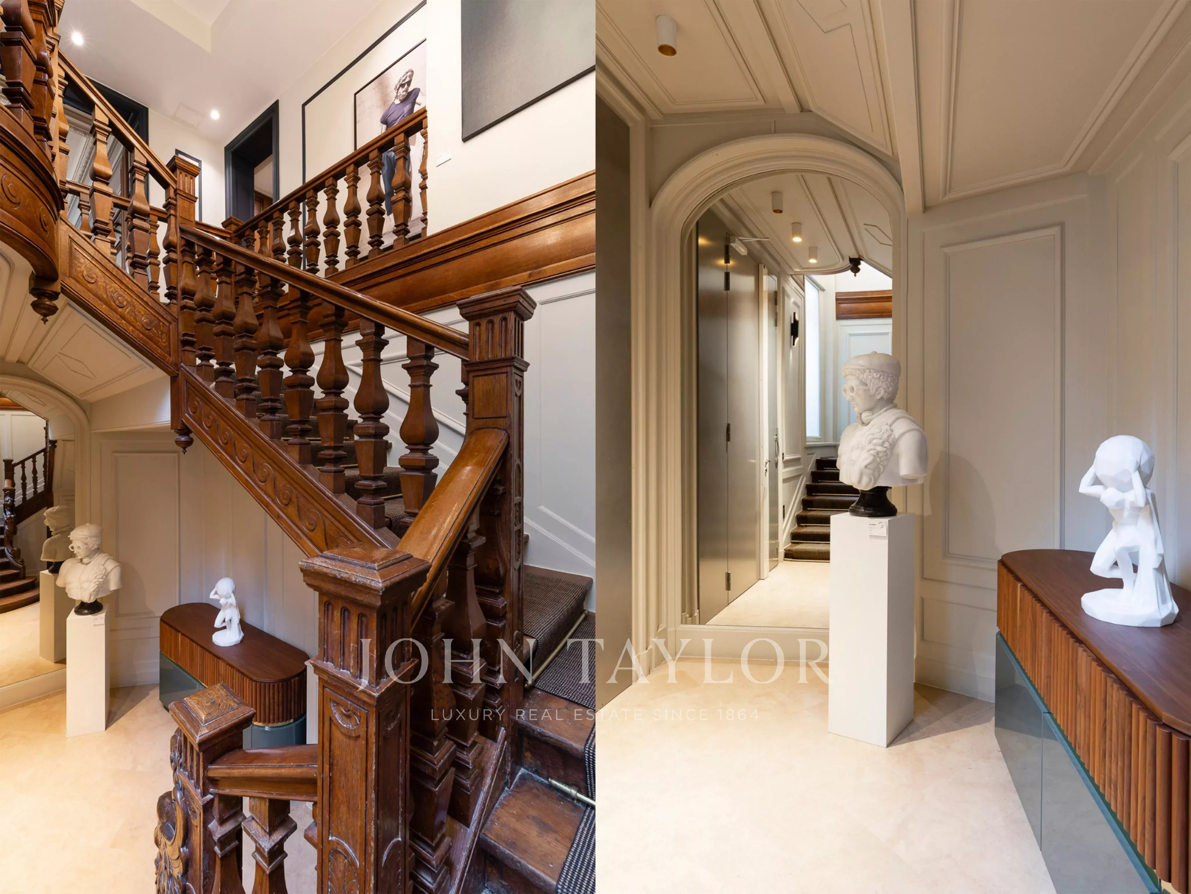 Access is via a separate door on the ground floor, and a stunning private wooden staircase leads to the first floor (in the style of a private mansion).