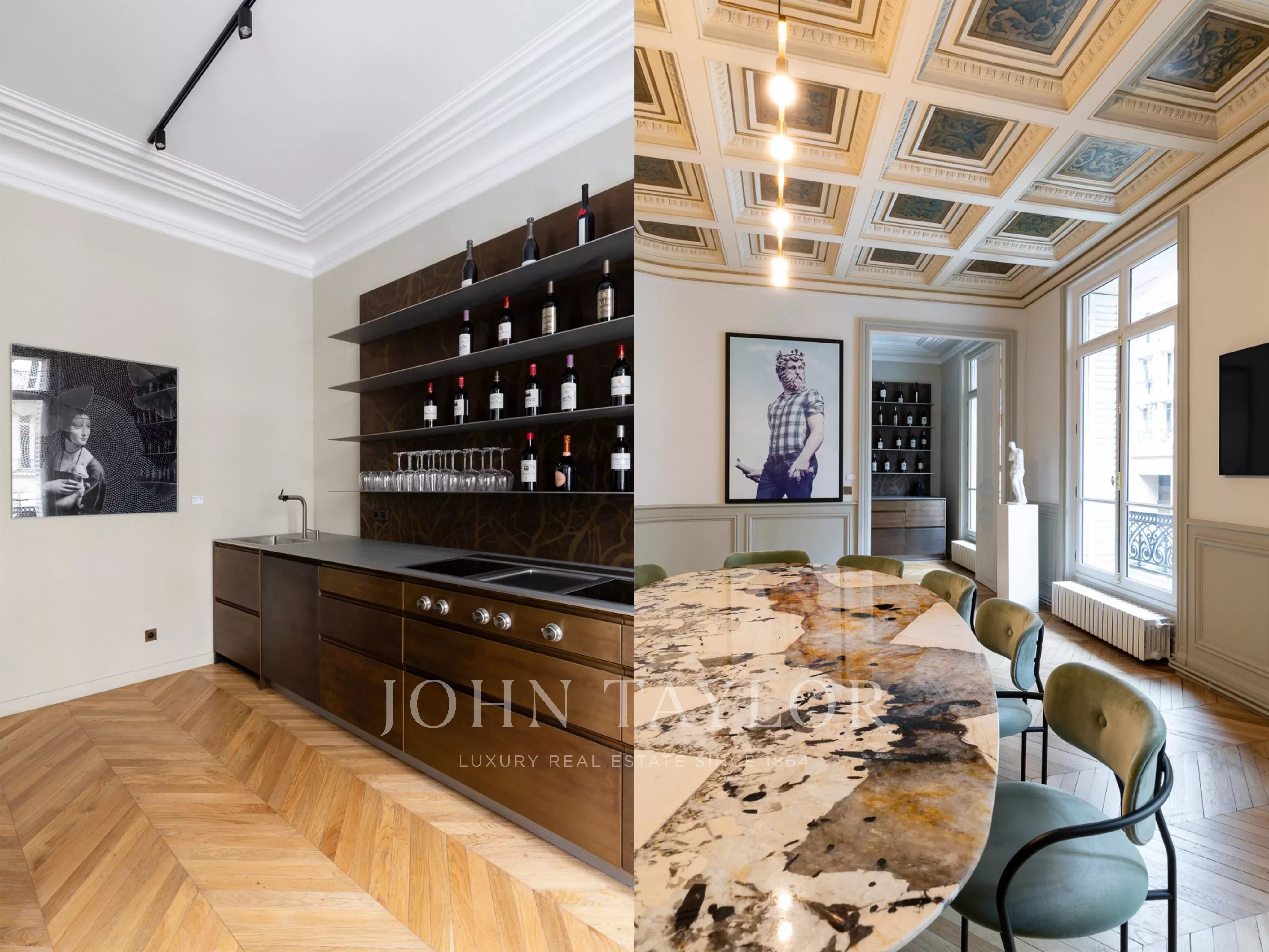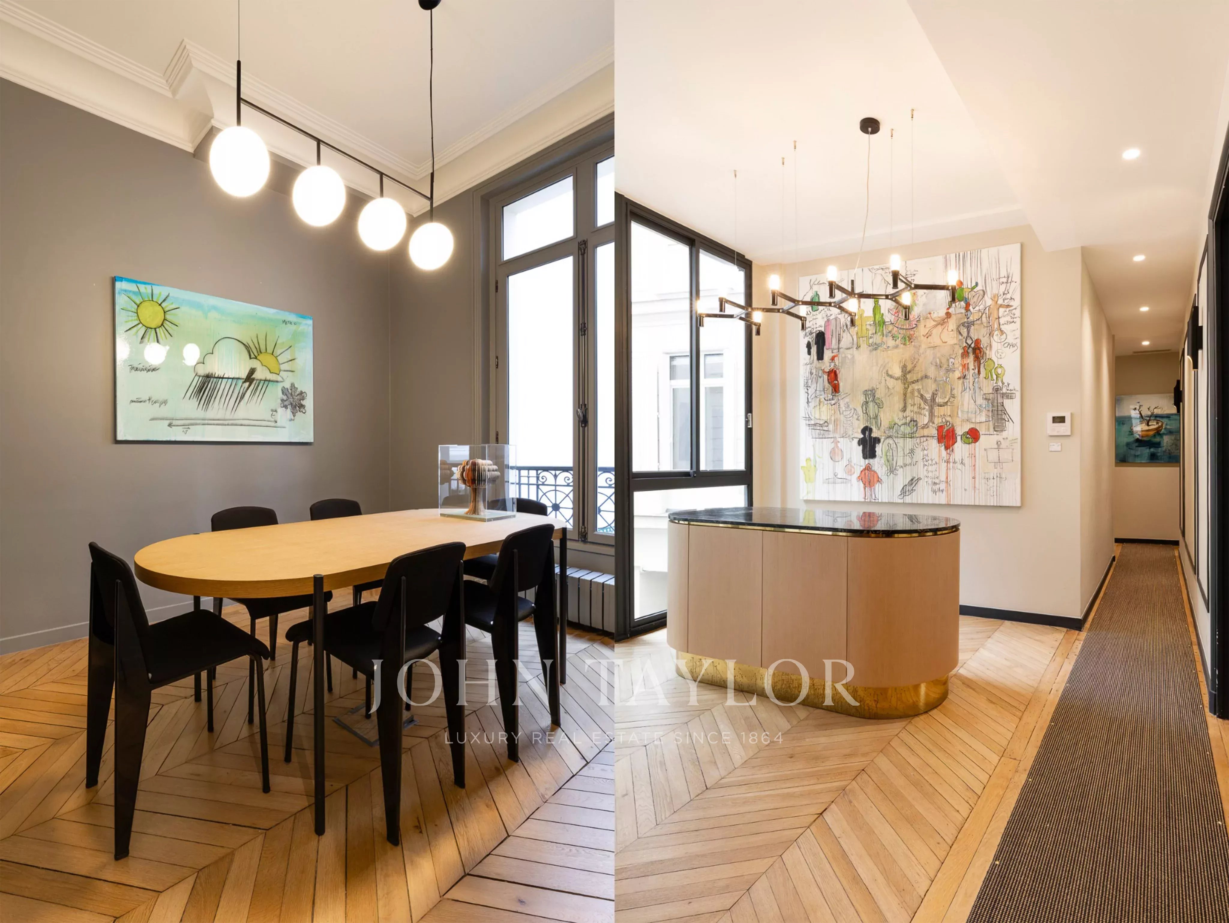 In the heart of the Chaillot district, just one minute from Avenue George V and the Galliera Palace, a remarkable apartment of 237.21 sqm (273.39 sqm on the ground), currently used as offices, consisting of an entrance gallery, 8 rooms, a kitchen, and 4 bathrooms.