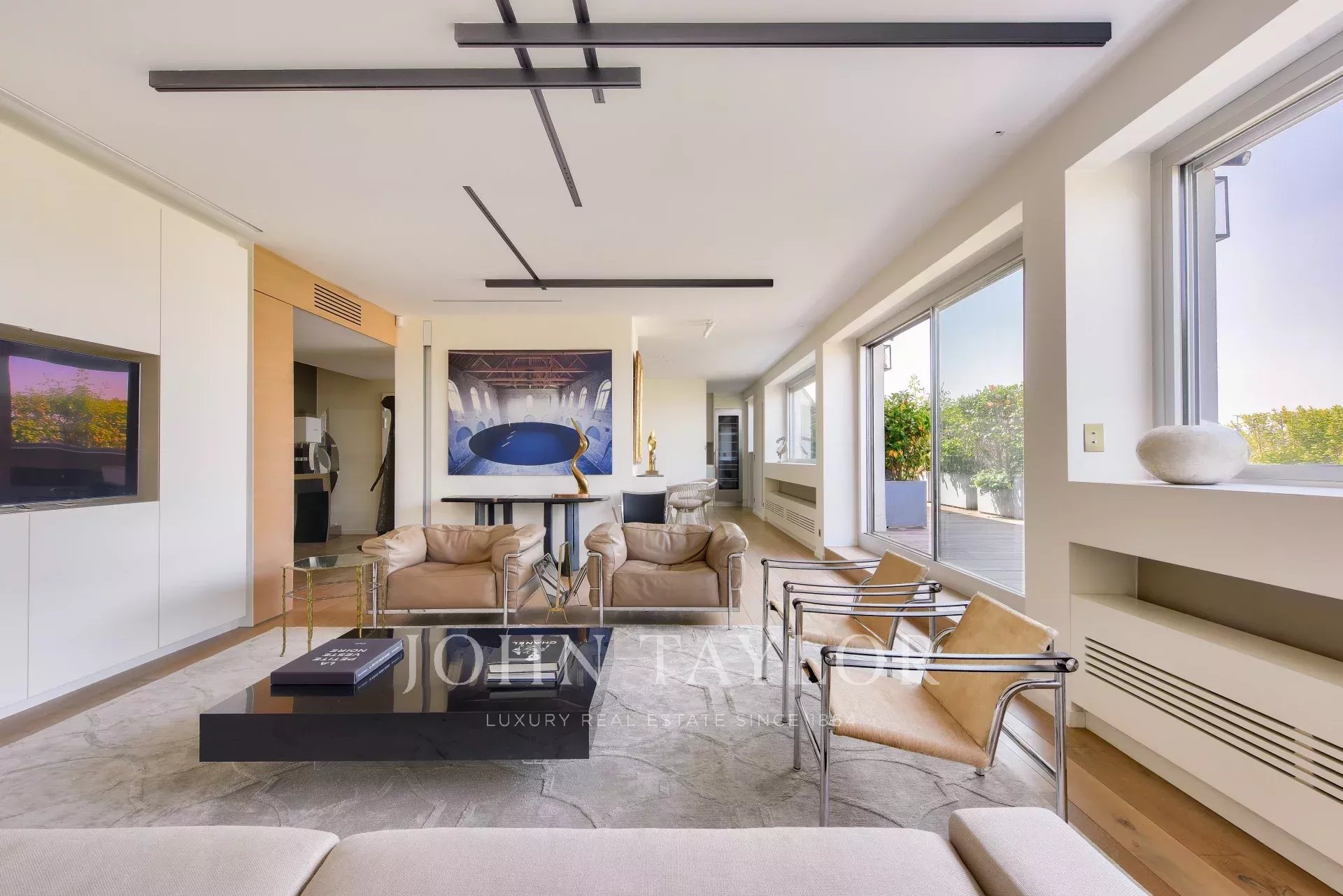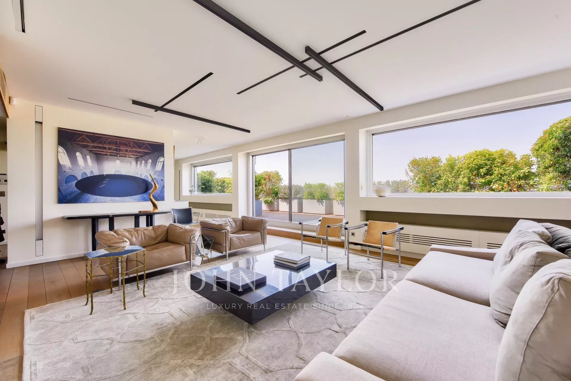 - A 52 m² living and dining room opening onto a large 40 m² terrace planted with trees