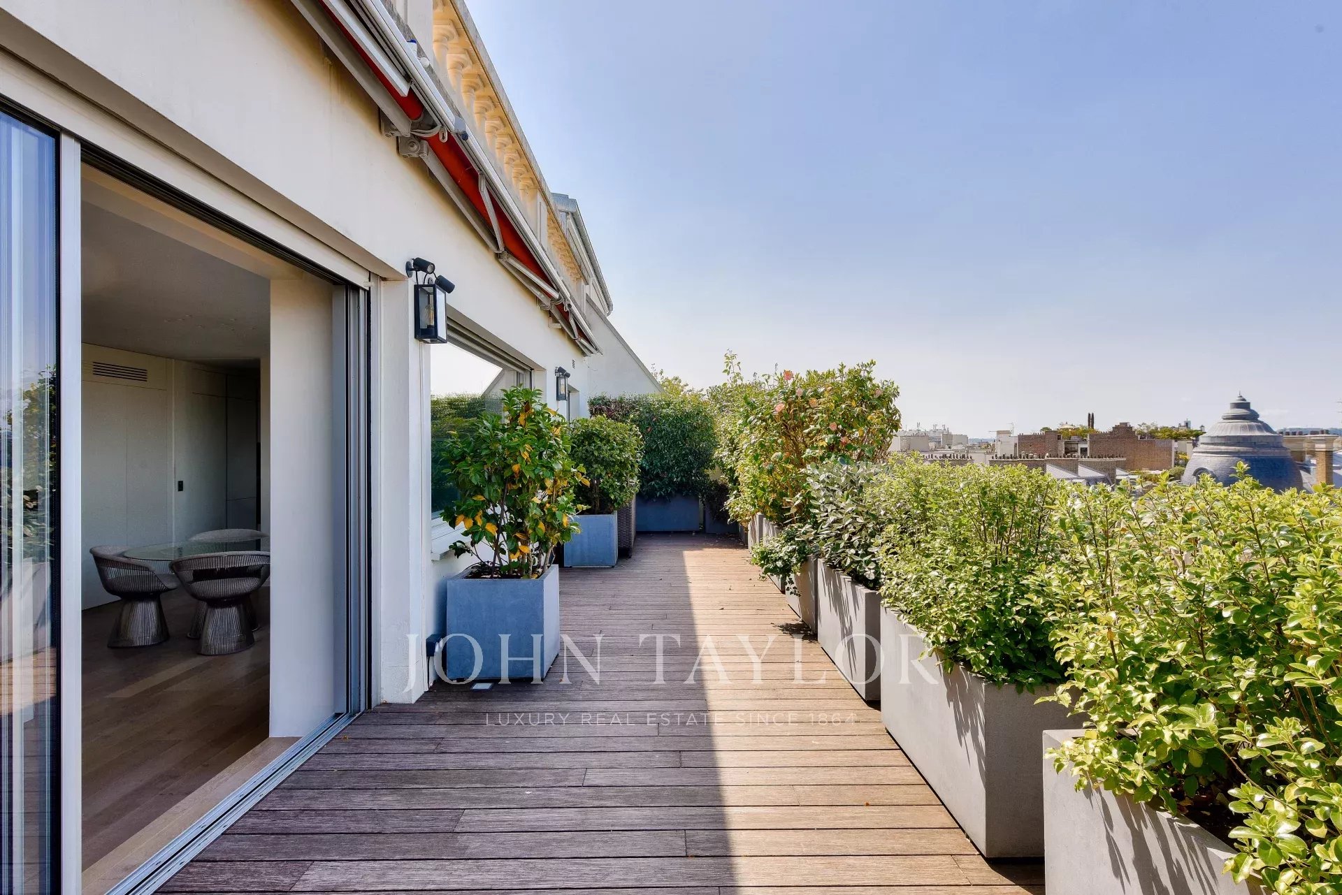 this haven of peace offers panoramic views of the Eiffel Tower and La Défense from both sides.