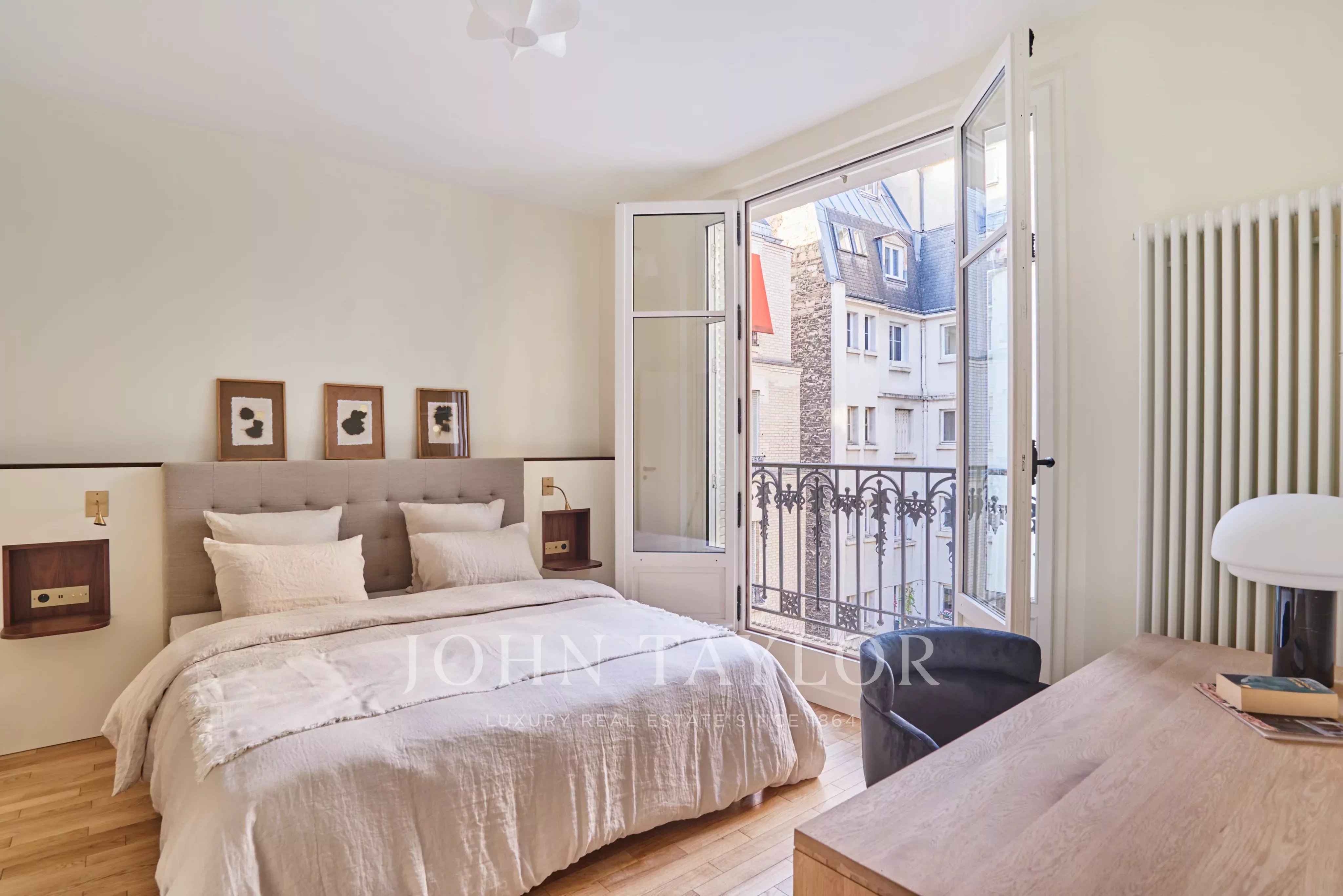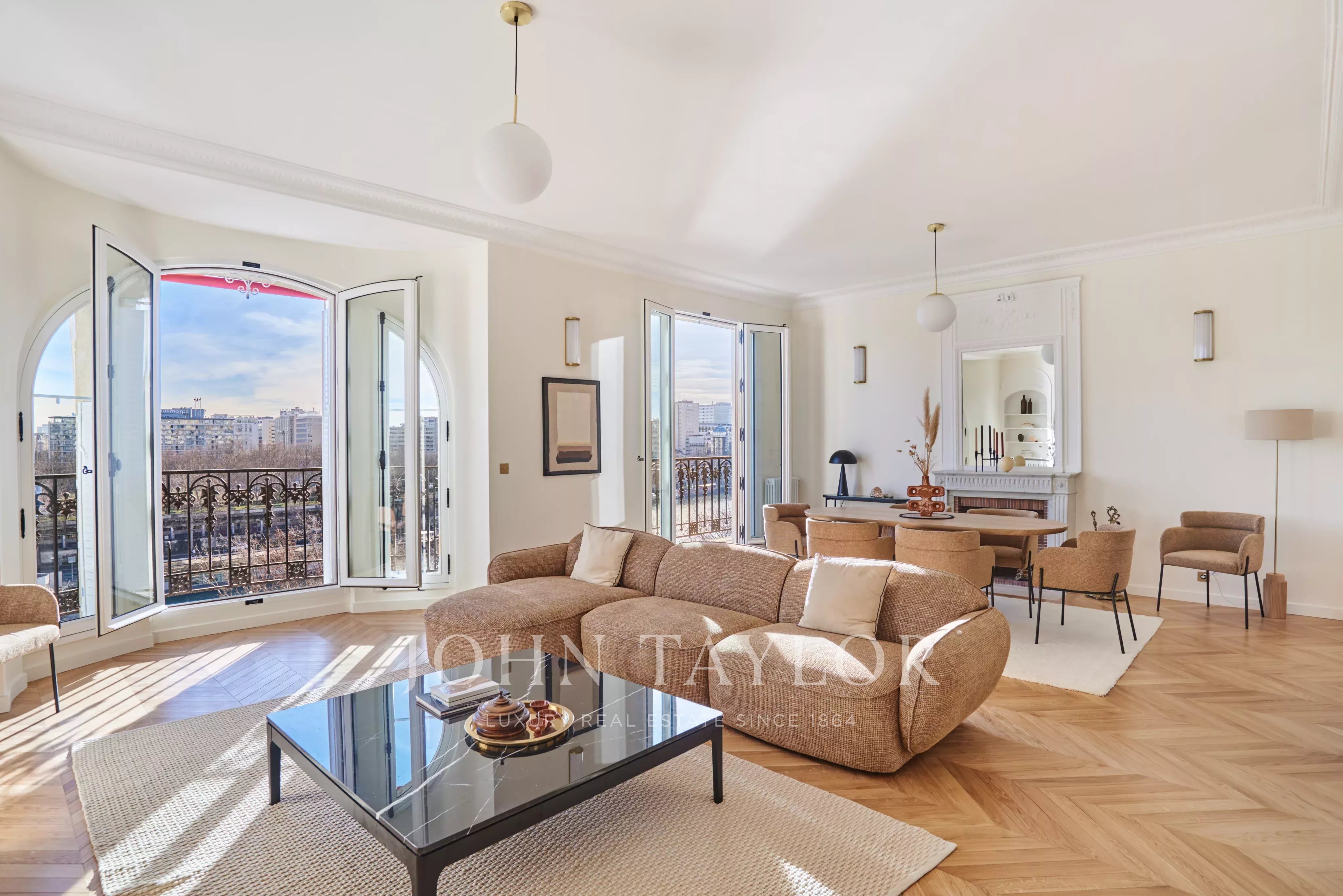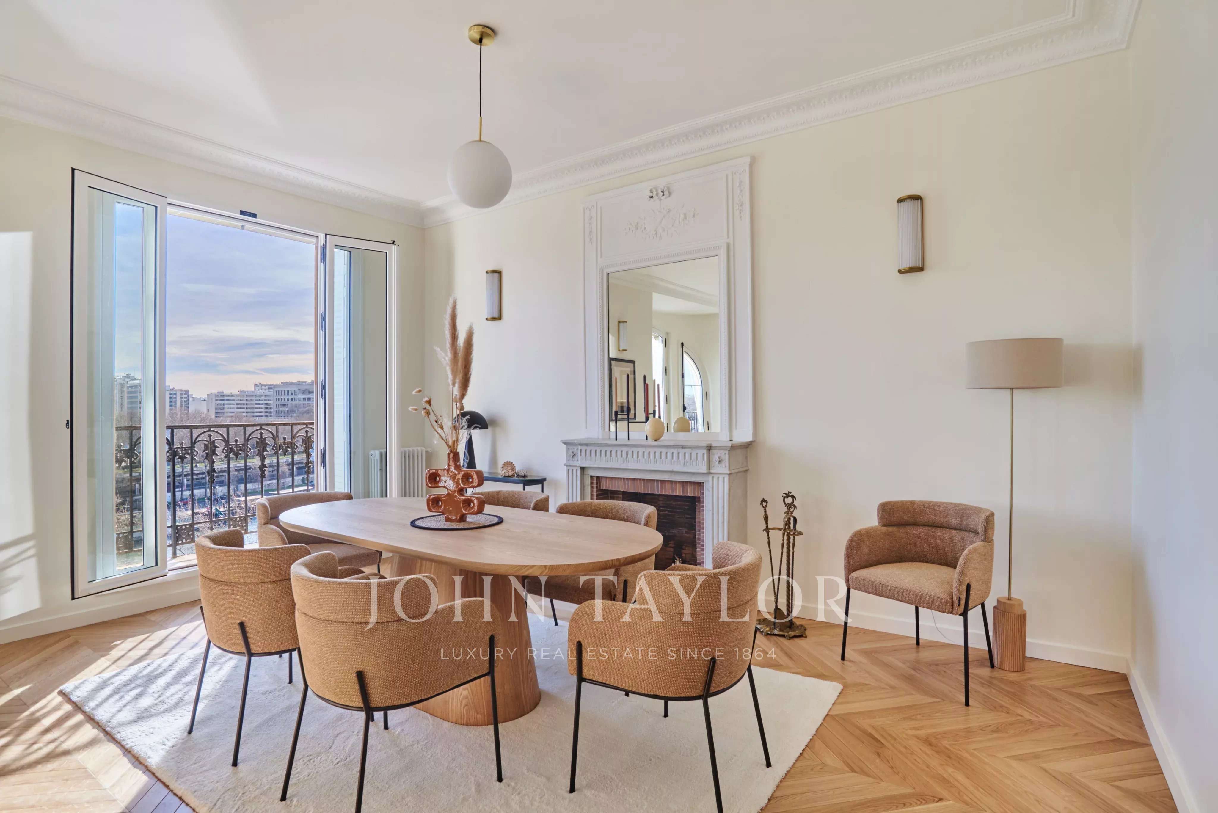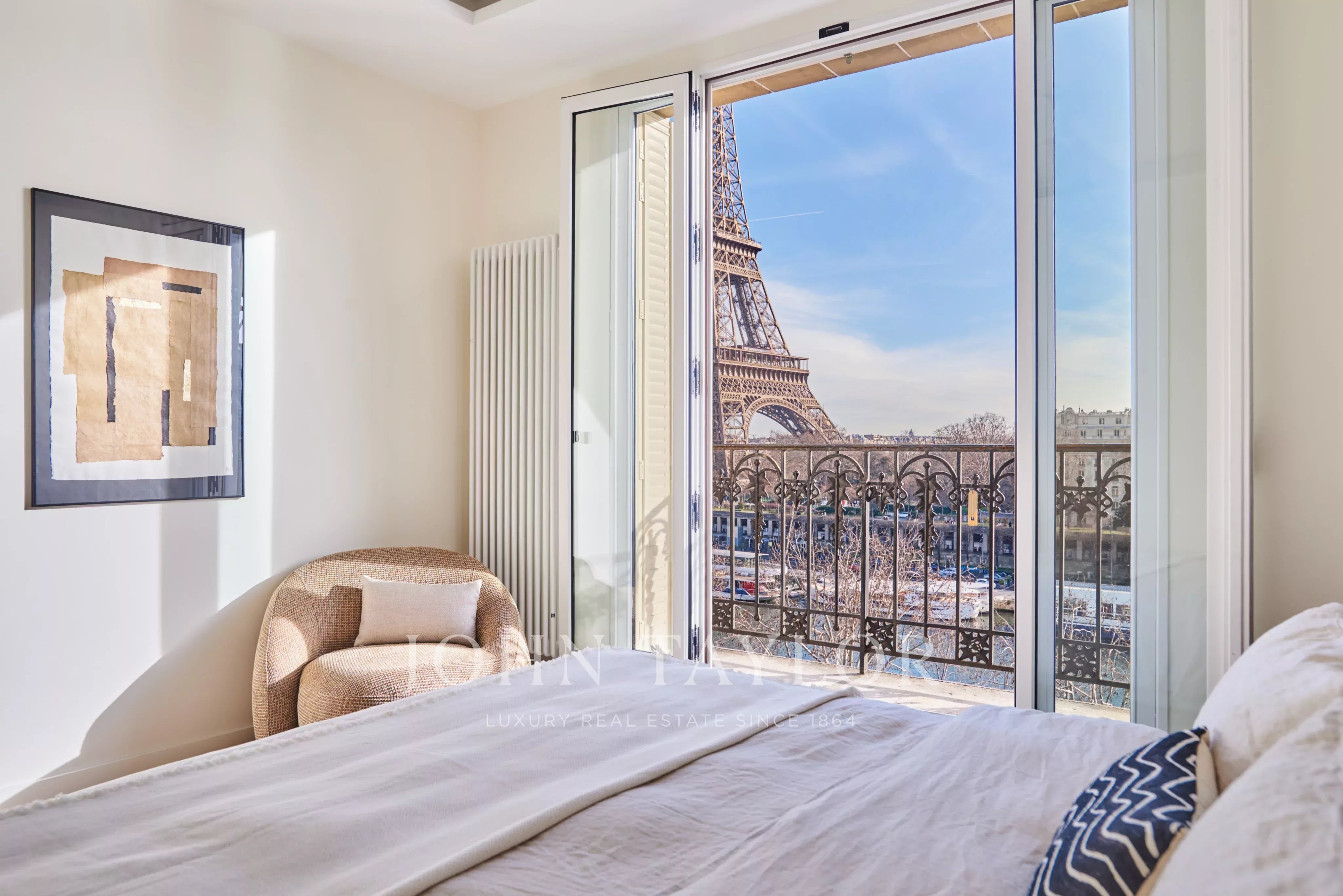 Facing south, this sunny apartment has just undergone a high-quality renovation and is offered furnished and decorated, ready to move into. Three balconies offer views of the Seine and the Eiffel Tower.