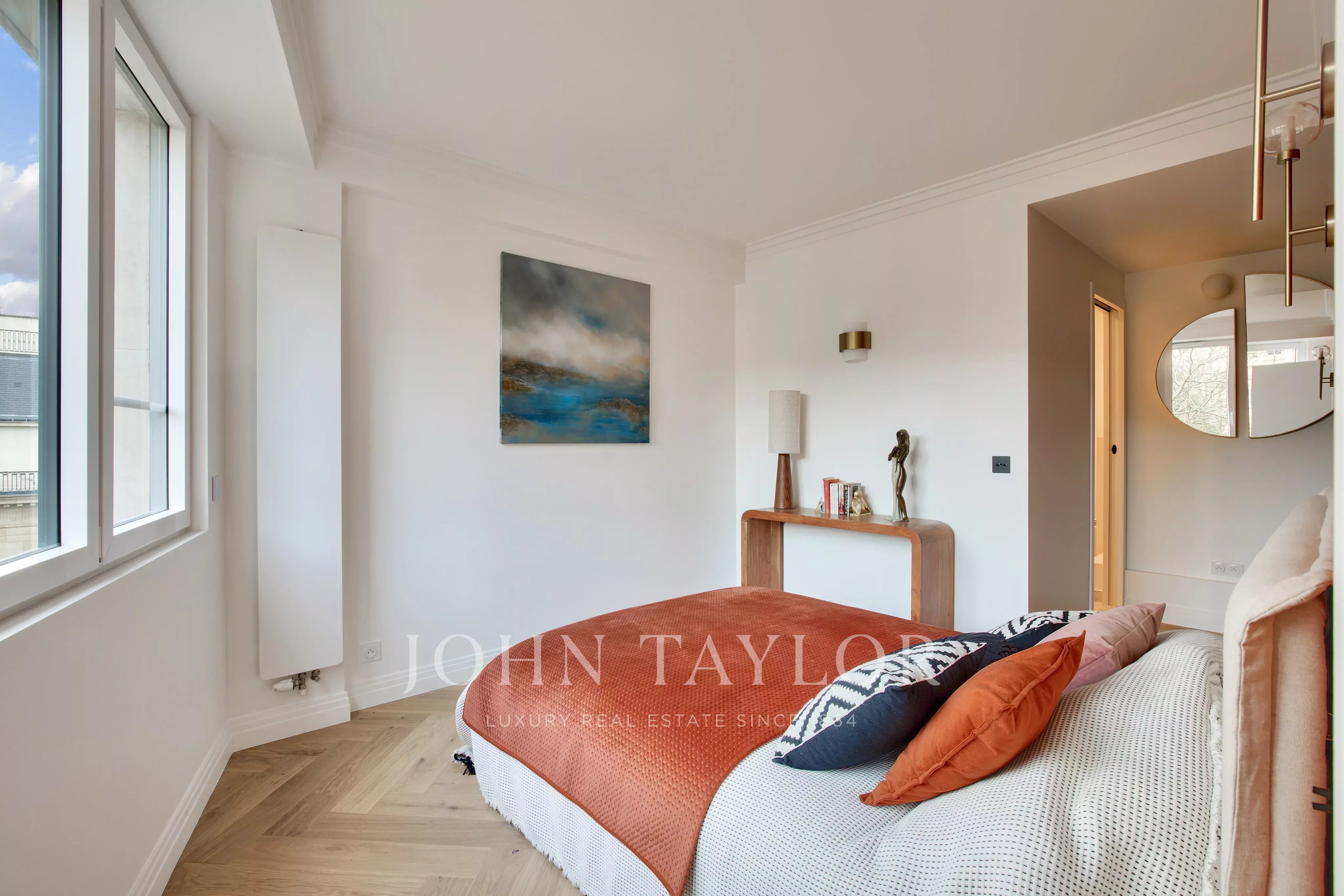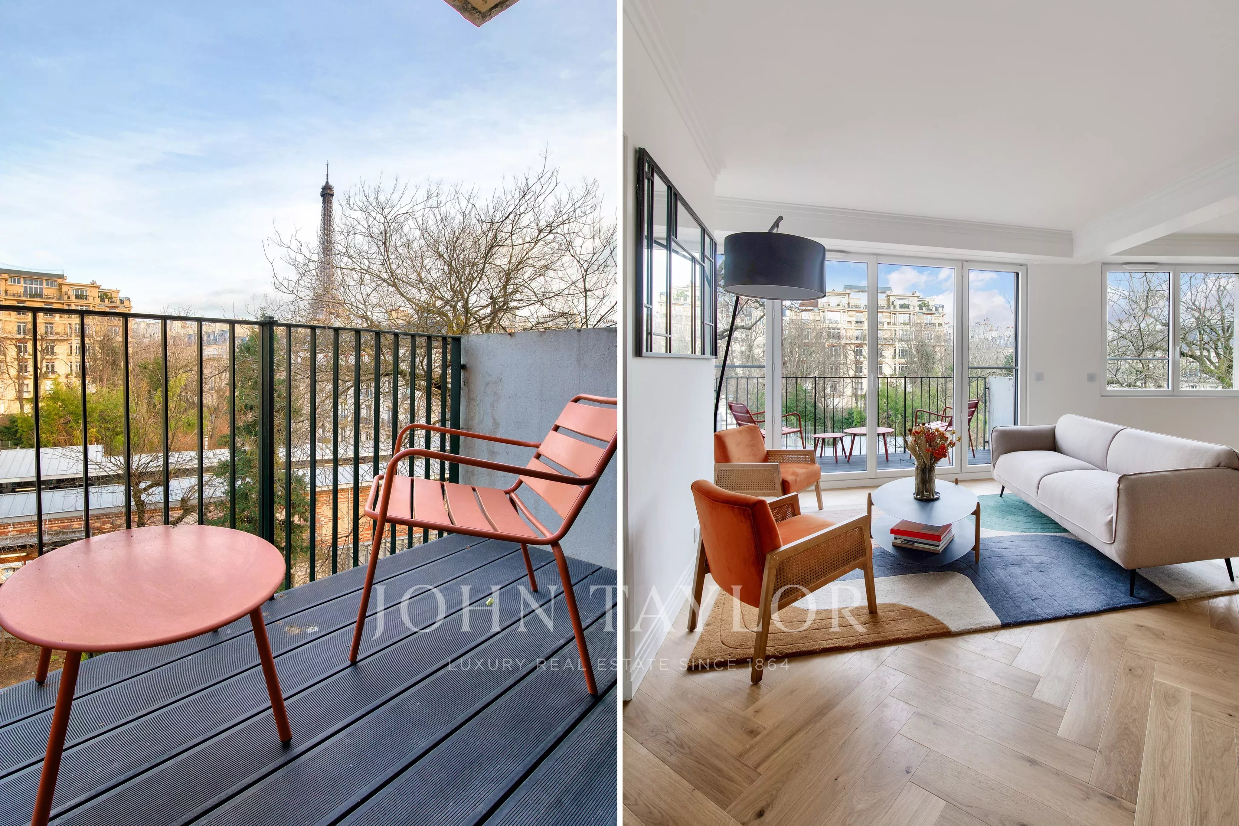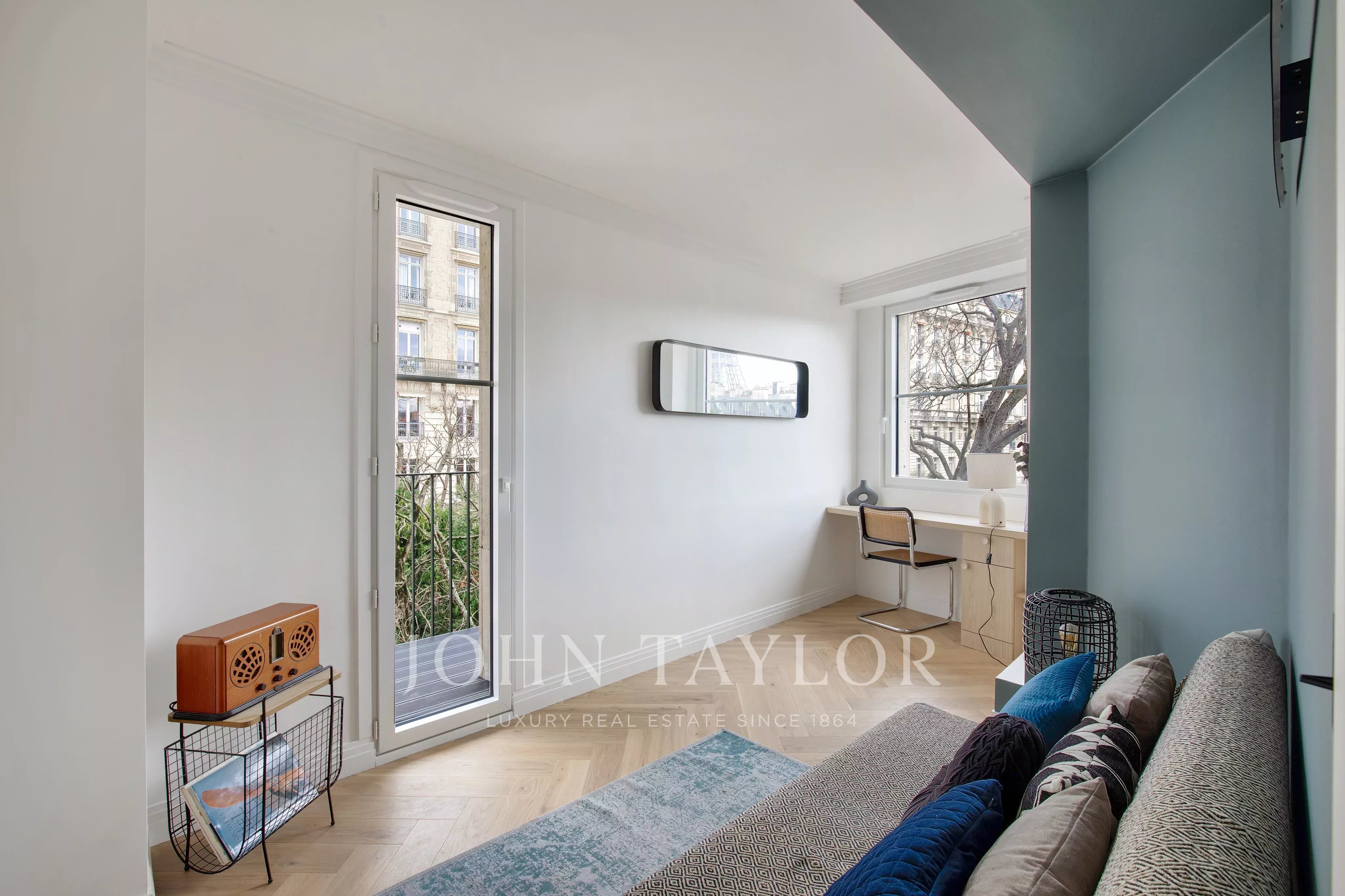Located on the 7th floor of a well-maintained building with an elevator and a concierge, set in a quiet environment overlooking a landscaped garden, we offer this beautiful 80 sqm apartment, fully renovated with high-quality materials. Bright and airy, it enjoys exceptional views of the Eiffel Tower and the rooftops of Paris.