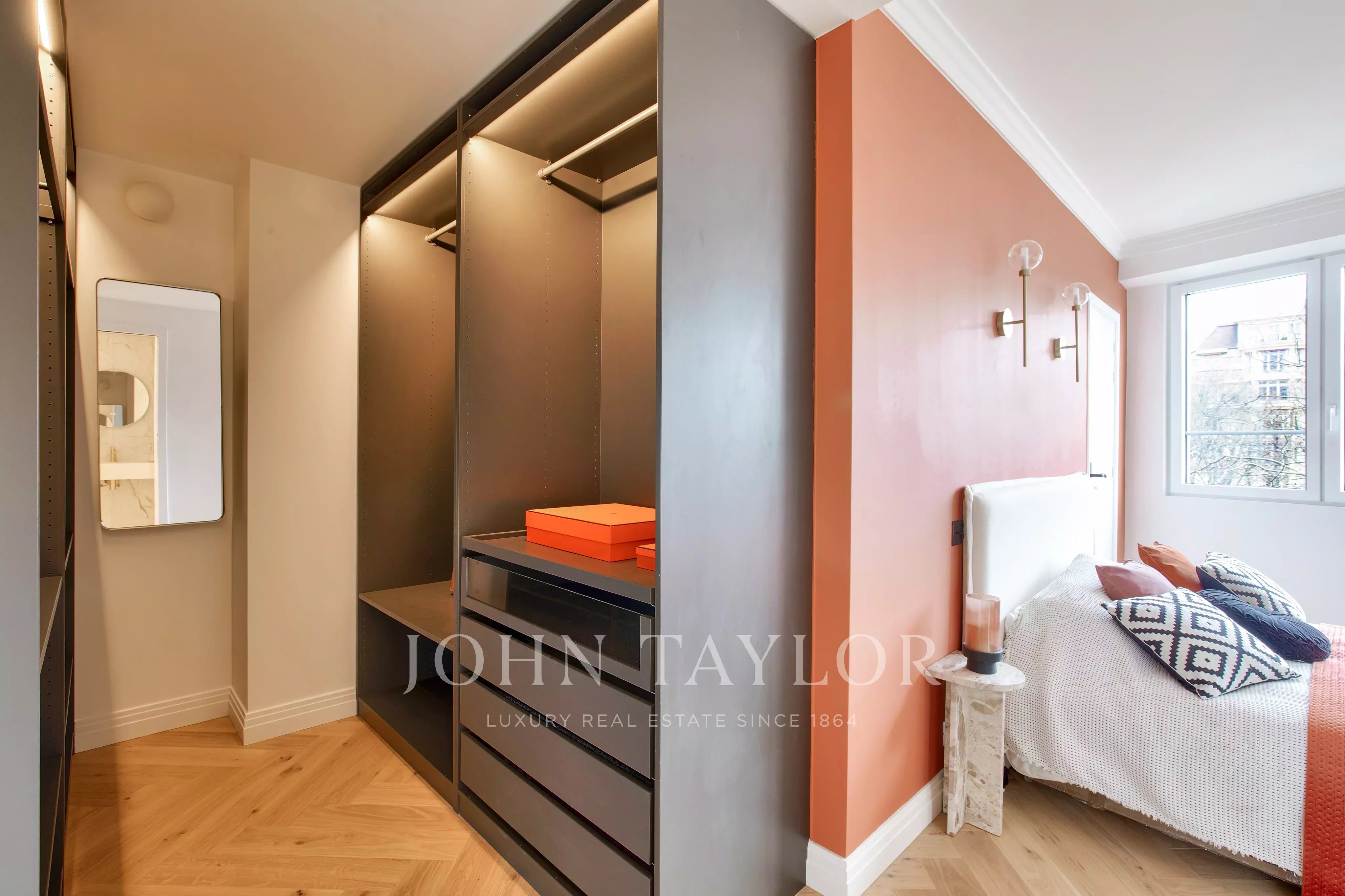 -a bedroom with a separate walk-in dressing room,