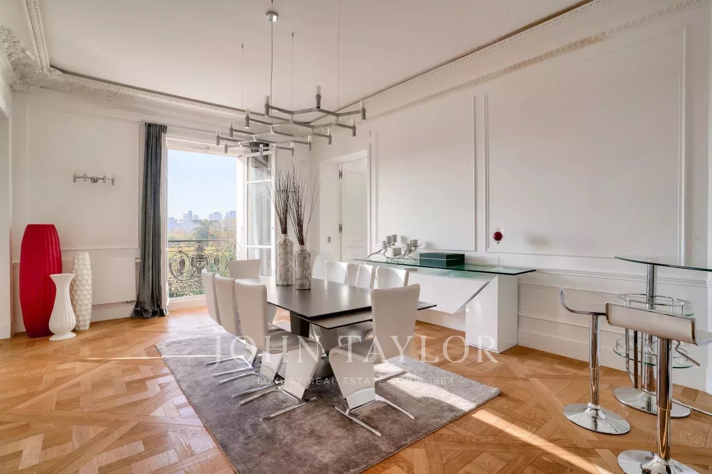 - Double living room providing an open view over the Bois de Boulogne, Louis Vuitton Foundation and La Défense.