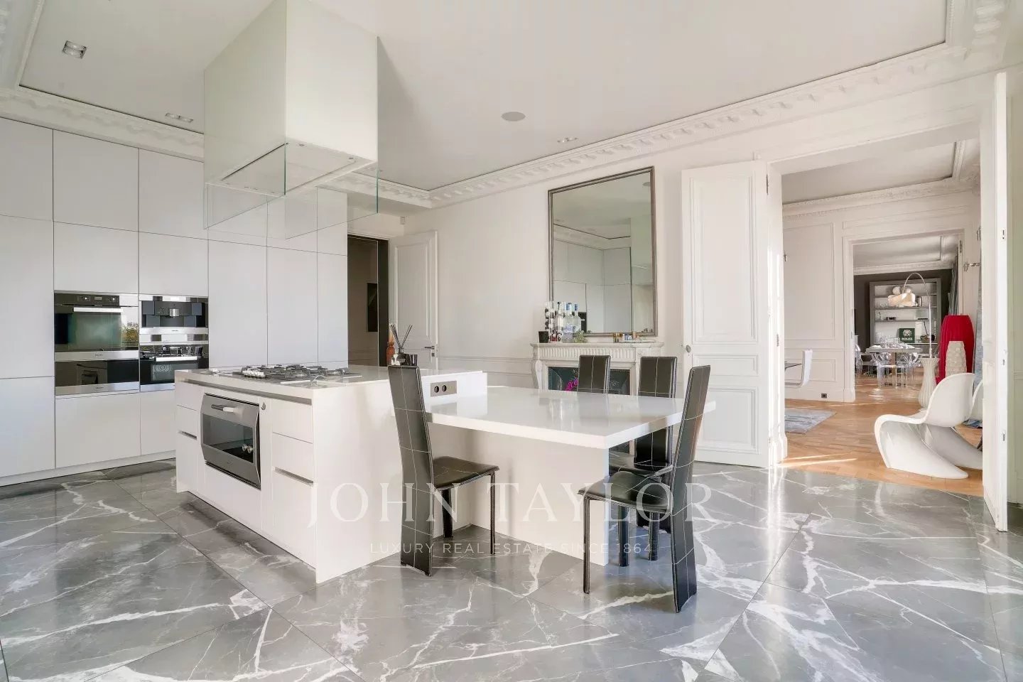 - Fully equipped state-of-the art eat-in kitchen with marble fireplace