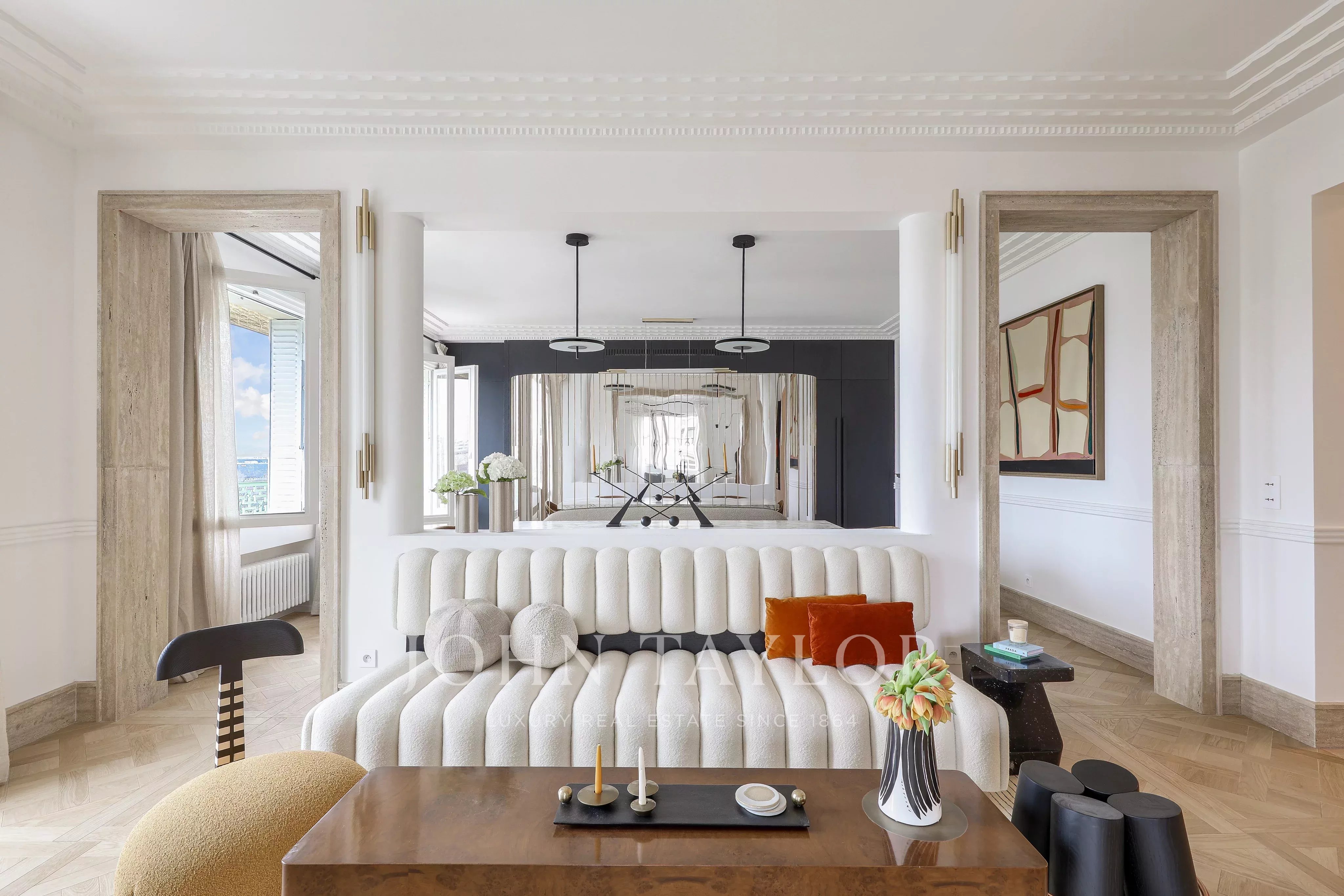 - A triple reception room comprising a vast living room, a lounge and a dining room opening onto a 13.7 m² terrace with views of the River Seine and the Eiffel Tower,