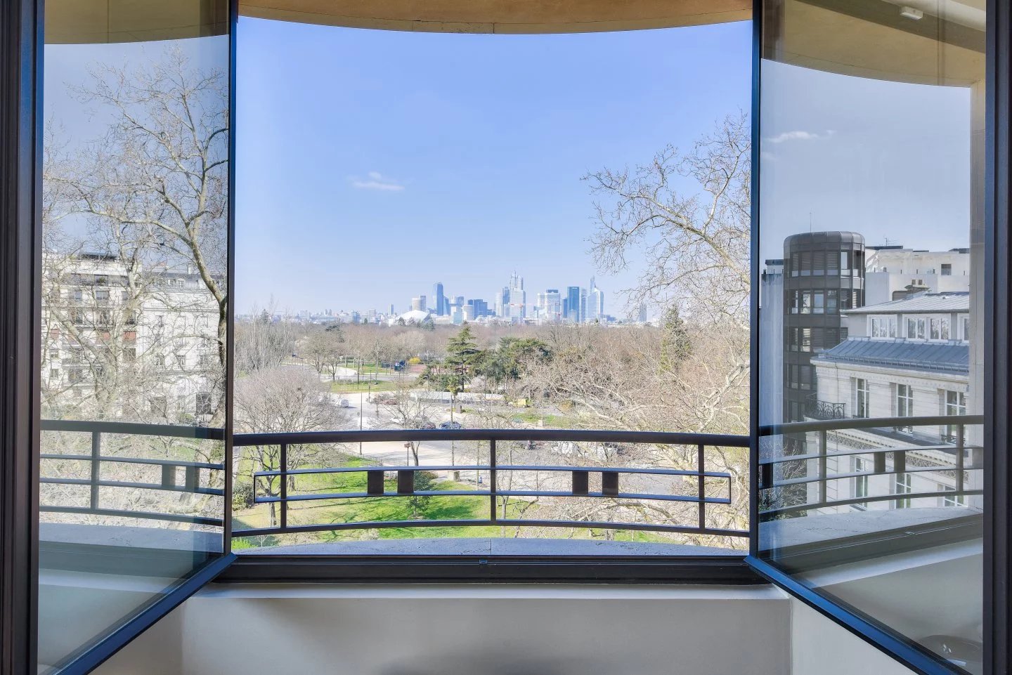The only one of its kind on the first floor, this light-filled apartment (triple exposure) offers spacious rooms and an unobstructed view of Avenue Foch and La Défense.