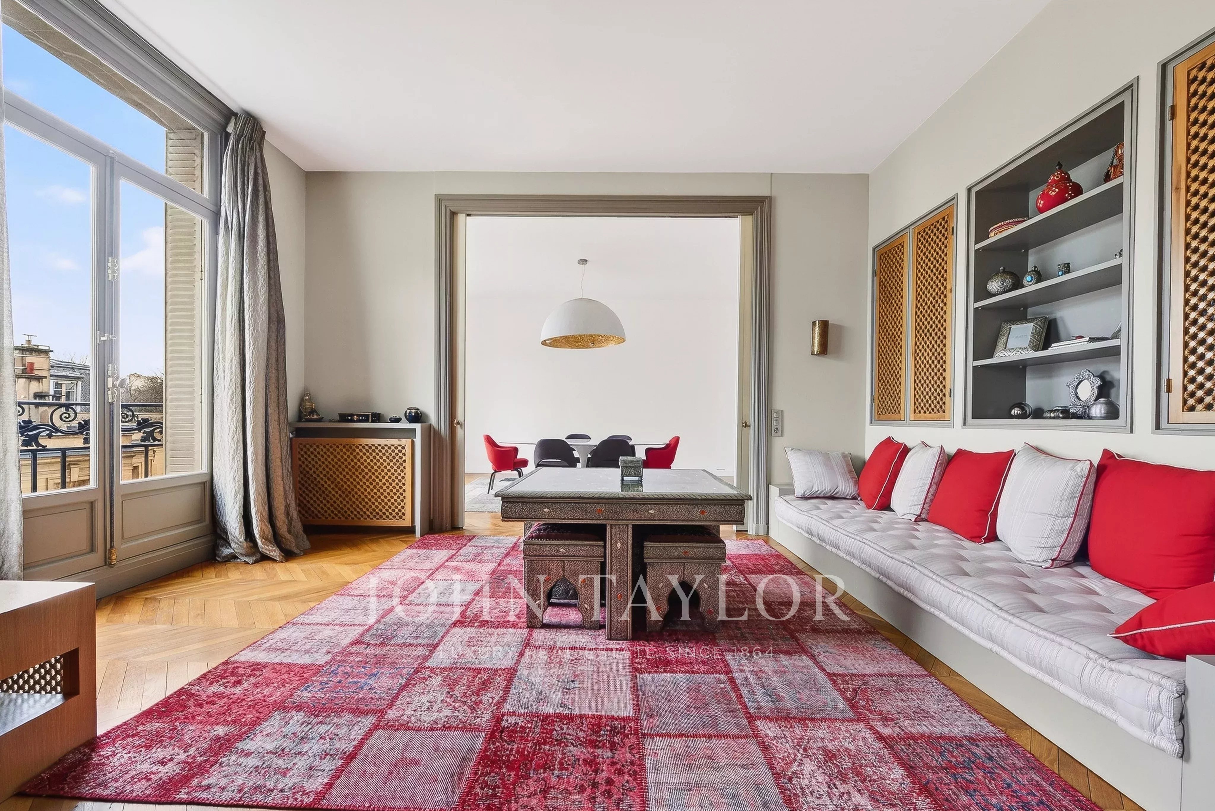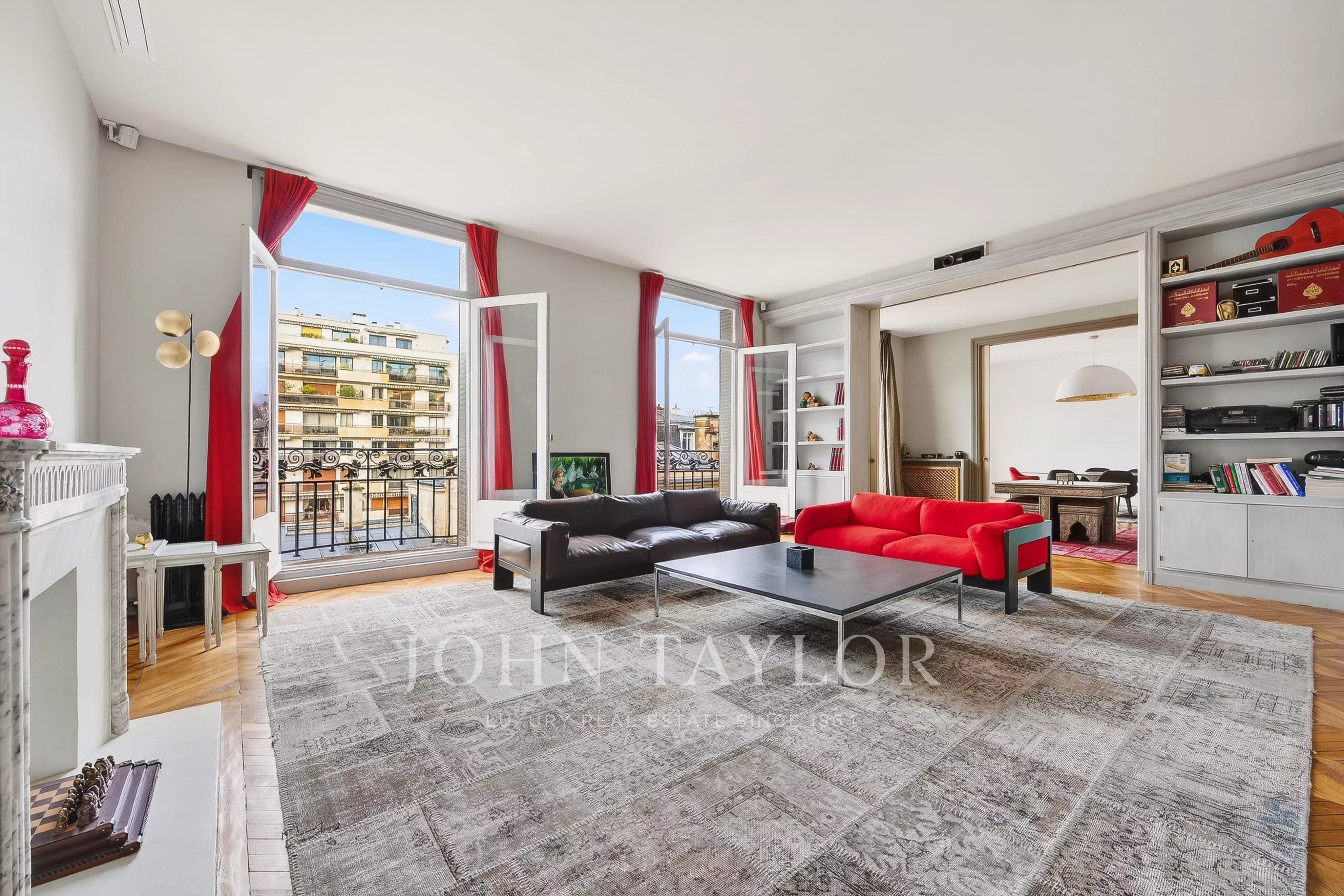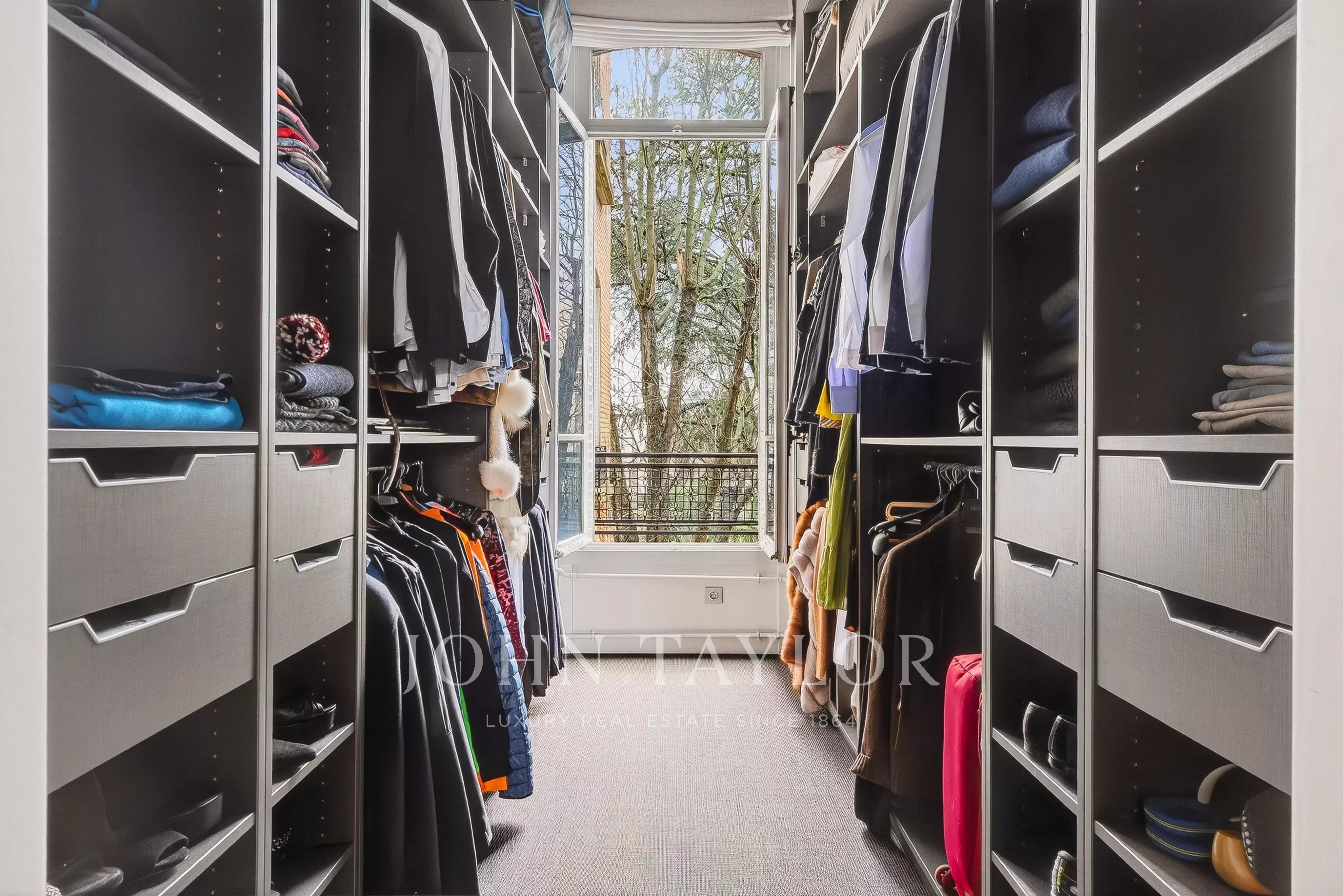 Opposite the elegant gardens of Ranelagh, we offer you a family and reception apartment of 238.21 m², located on the 3rd floor of a 1912 Haussmannian building of good standing, with elevator and caretaker.
