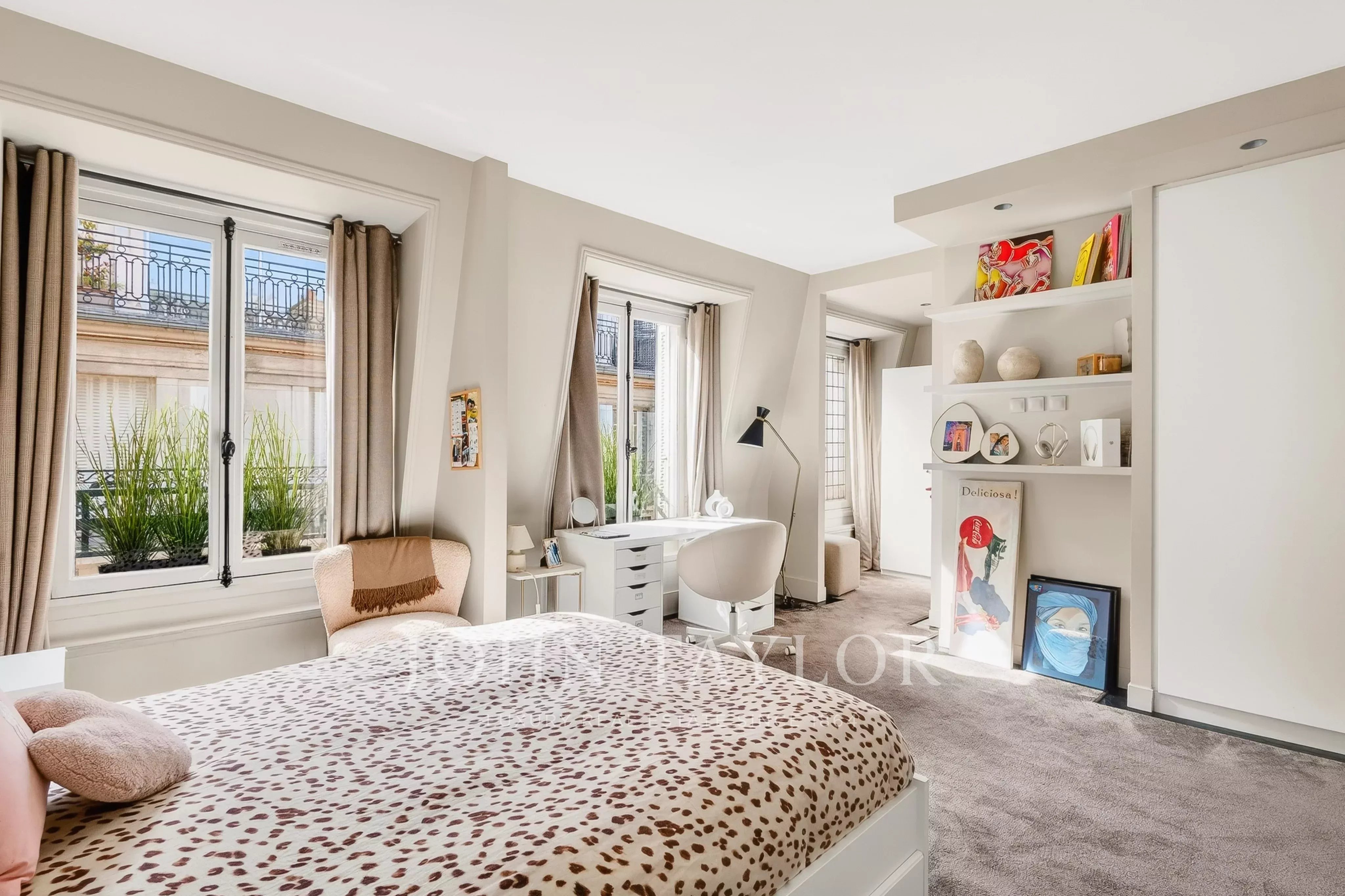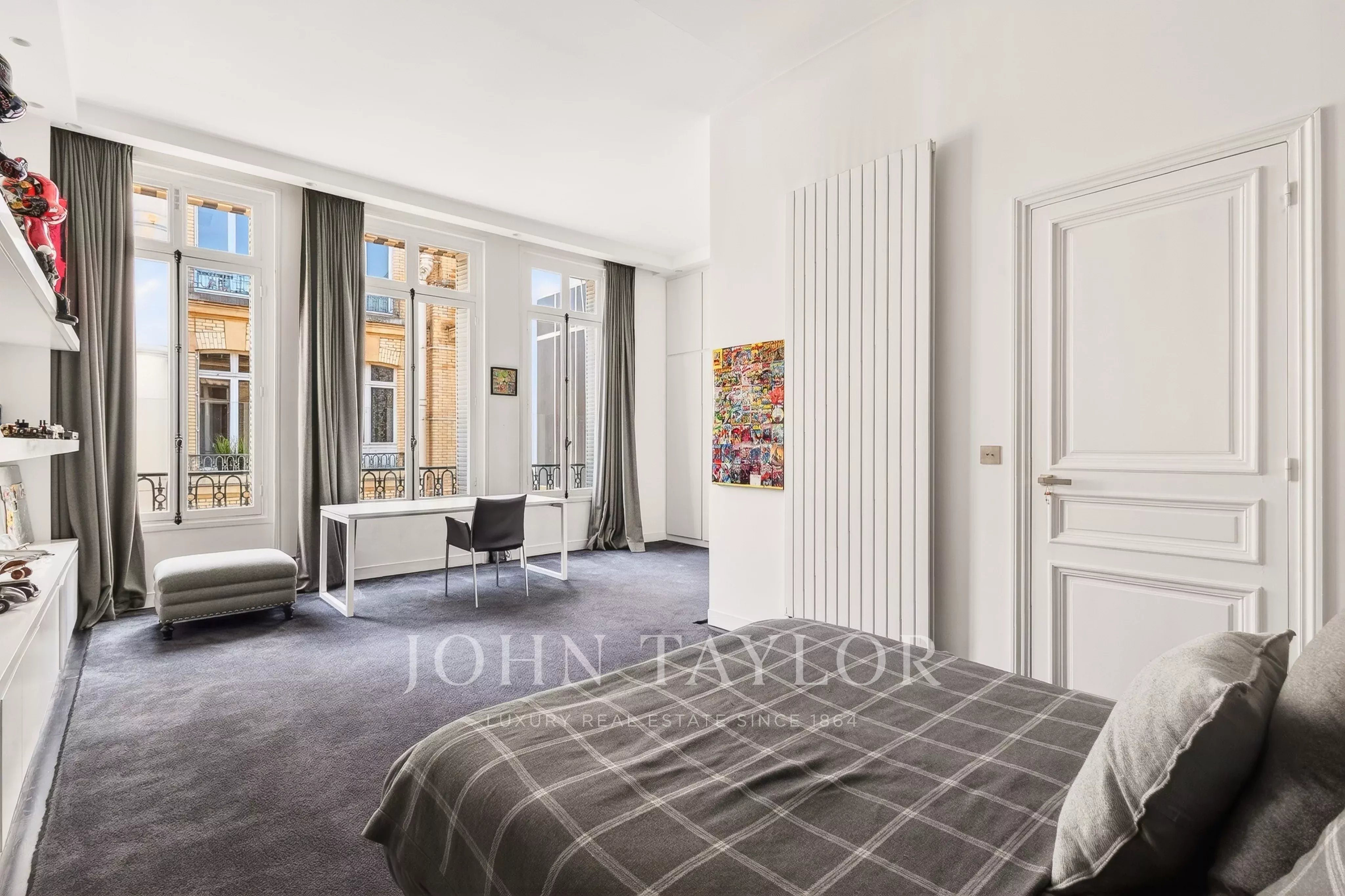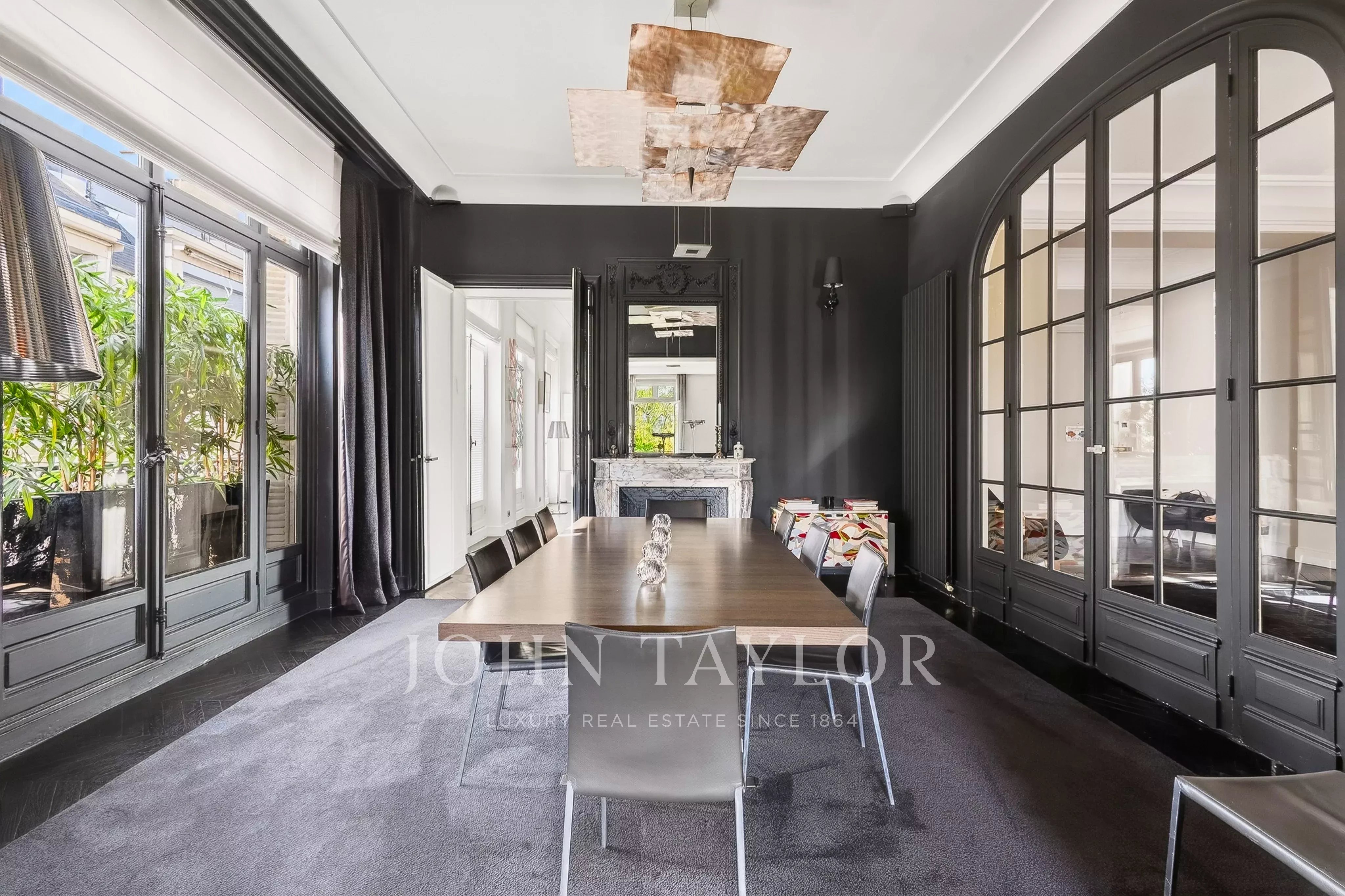 Located on the 3rd floor of a high-end building dating from 1910, with remarkable common areas, this exceptional property extends over 355.29 m² (343.25 m² Carrez law) and benefits from an impressive ceiling height of 3.70 m, offering rare volumes and brightness.