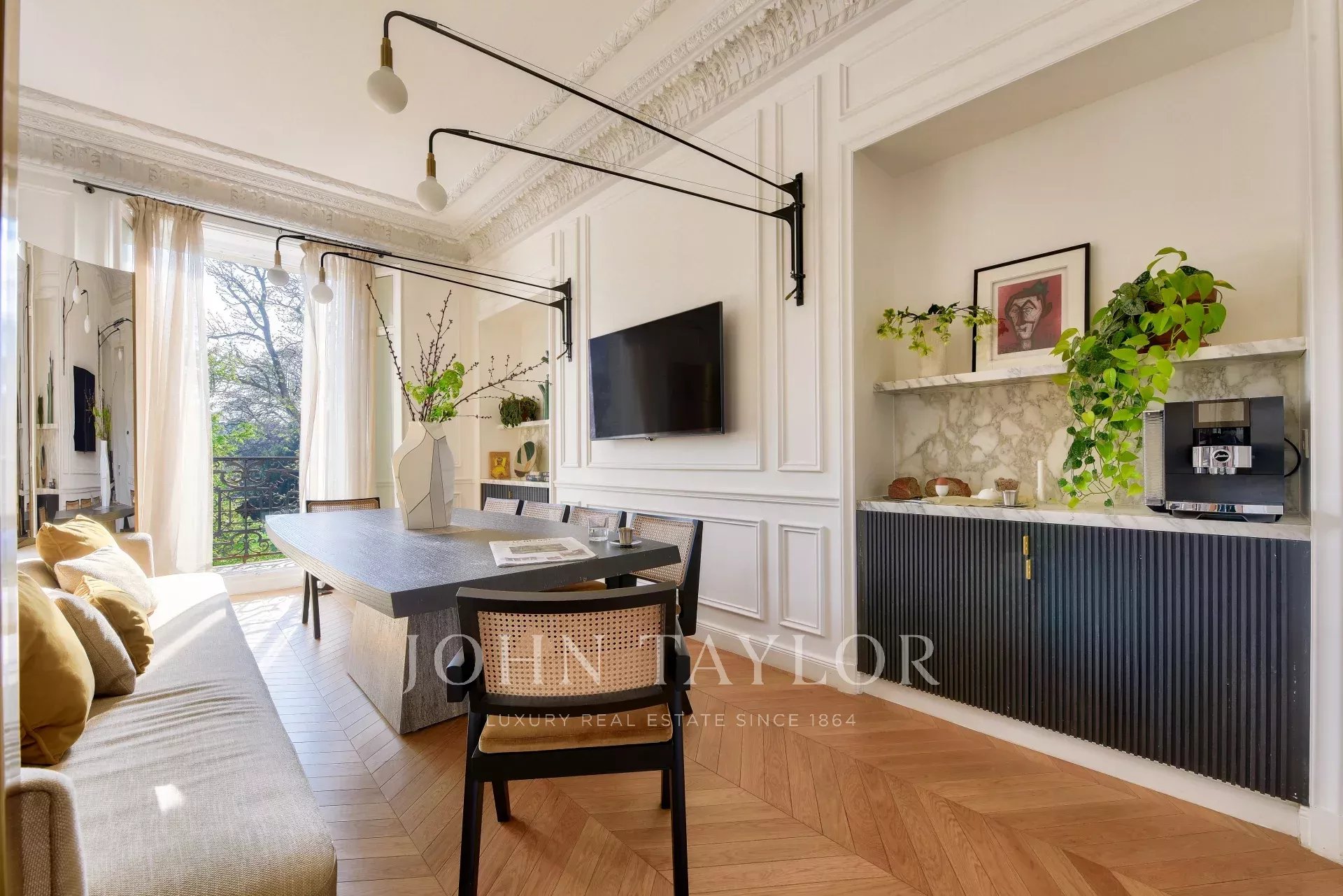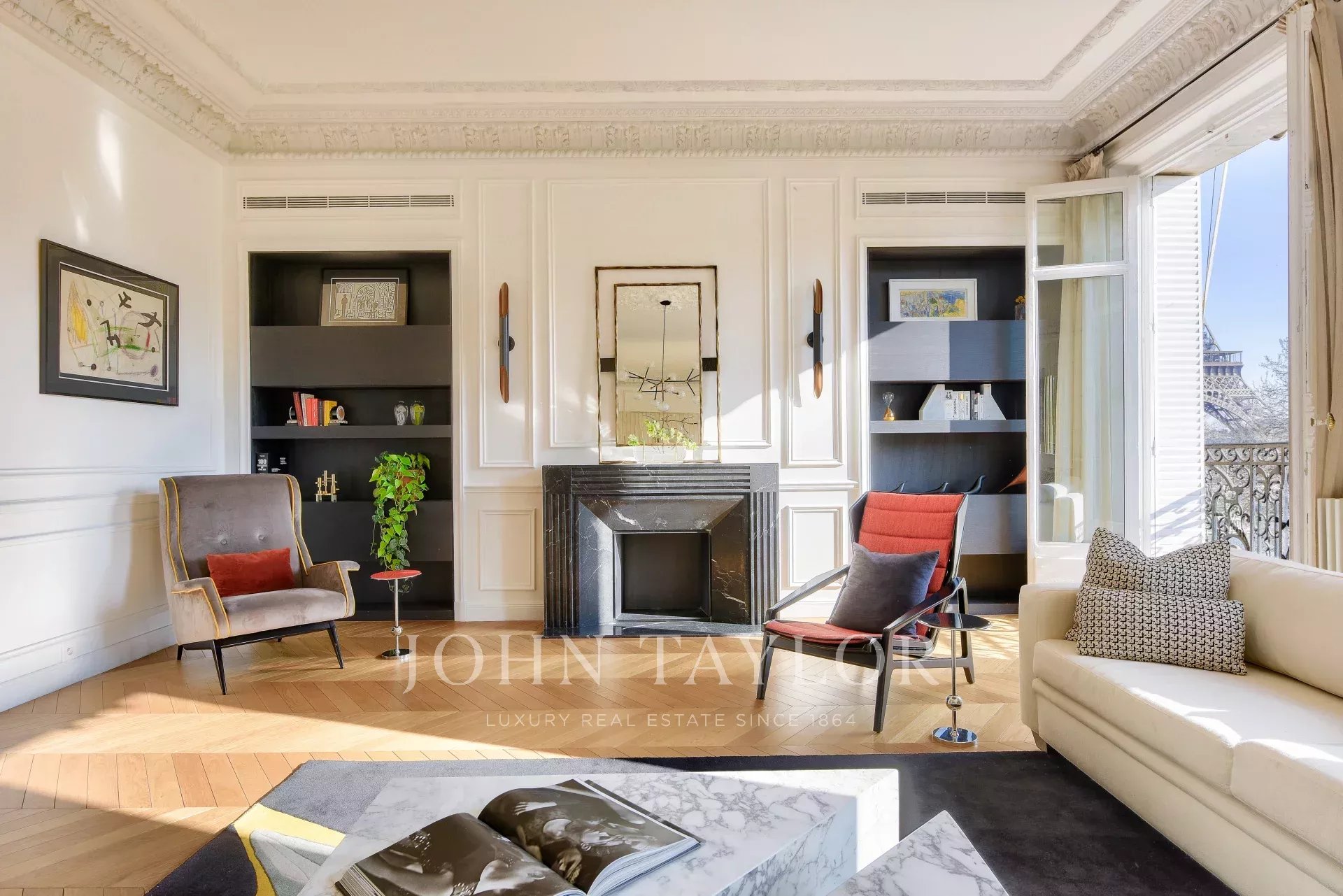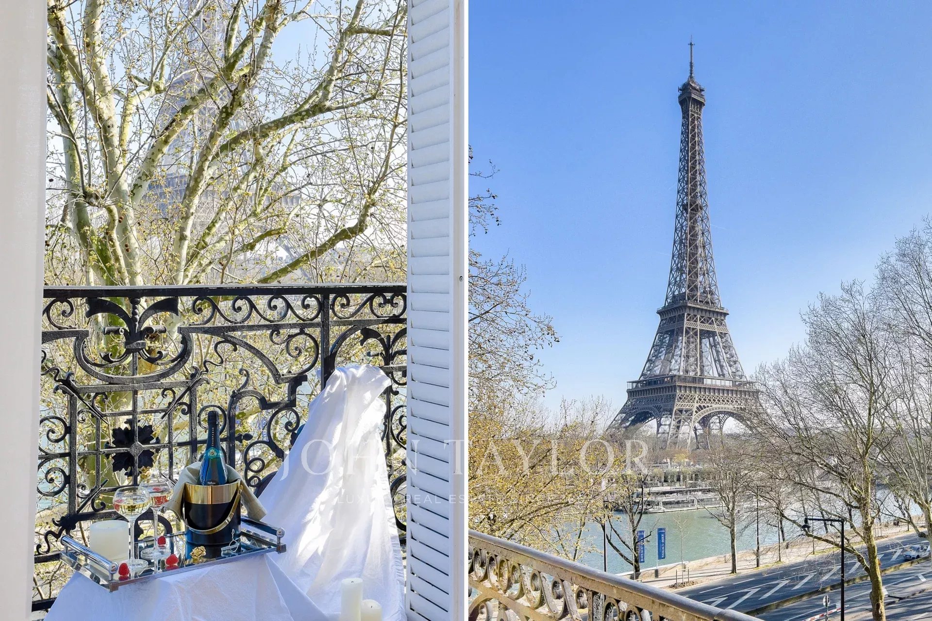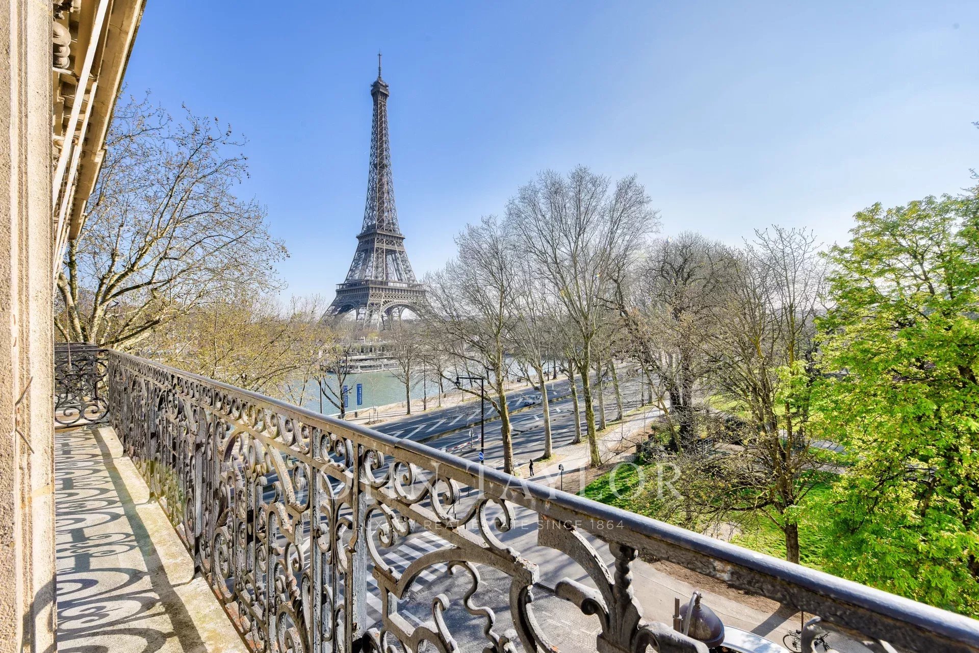 - a spacious living-dining room opening onto a balcony with views of the Trocadero Gardens, the Seine and the Eiffel Tower
