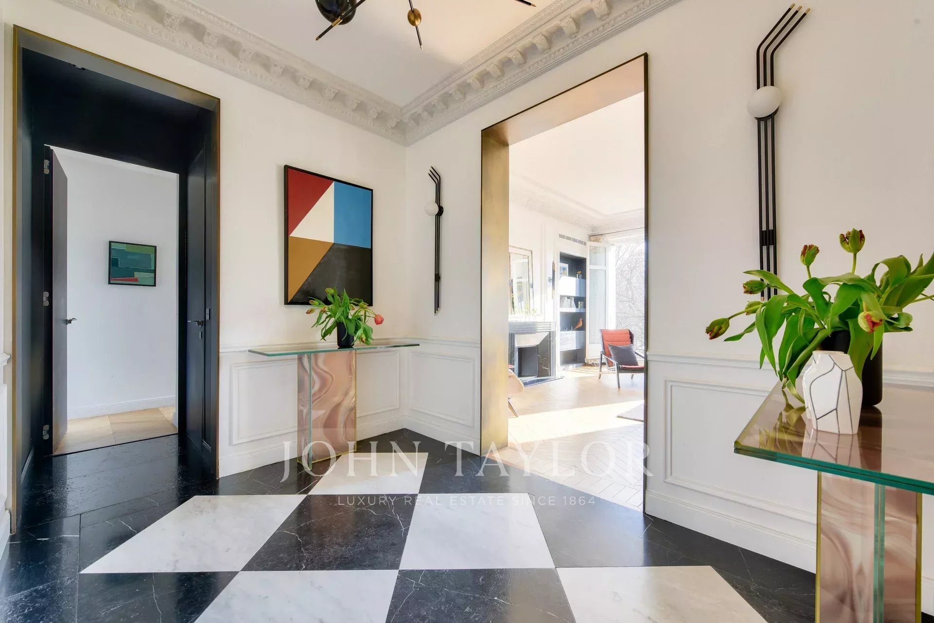 On the 3rd floor with elevator of a magnificent old stone building, refurbished 160.57 m² apartment with a balcony, enjoying outstanding views of the Seine, the Eiffel Tower and the Trocadéro Gardens.